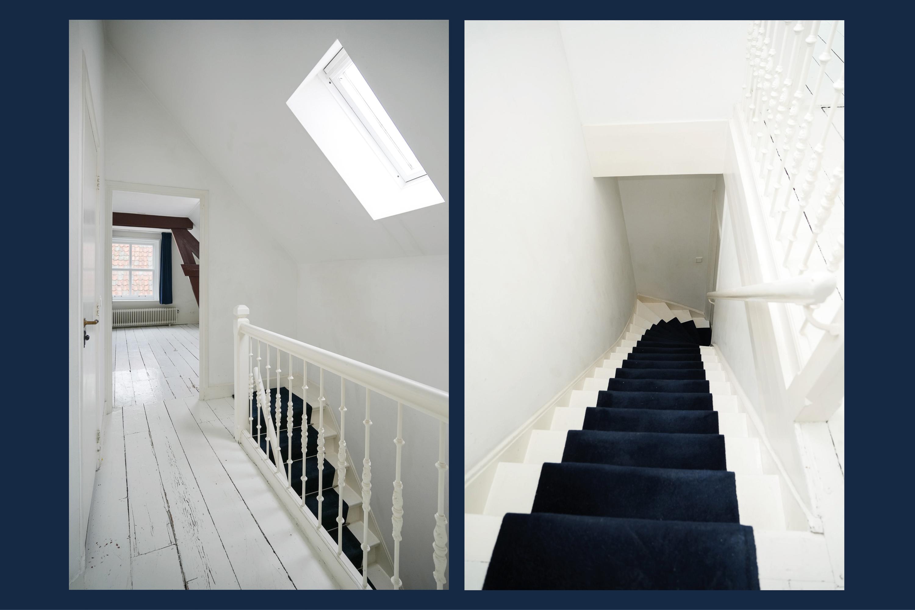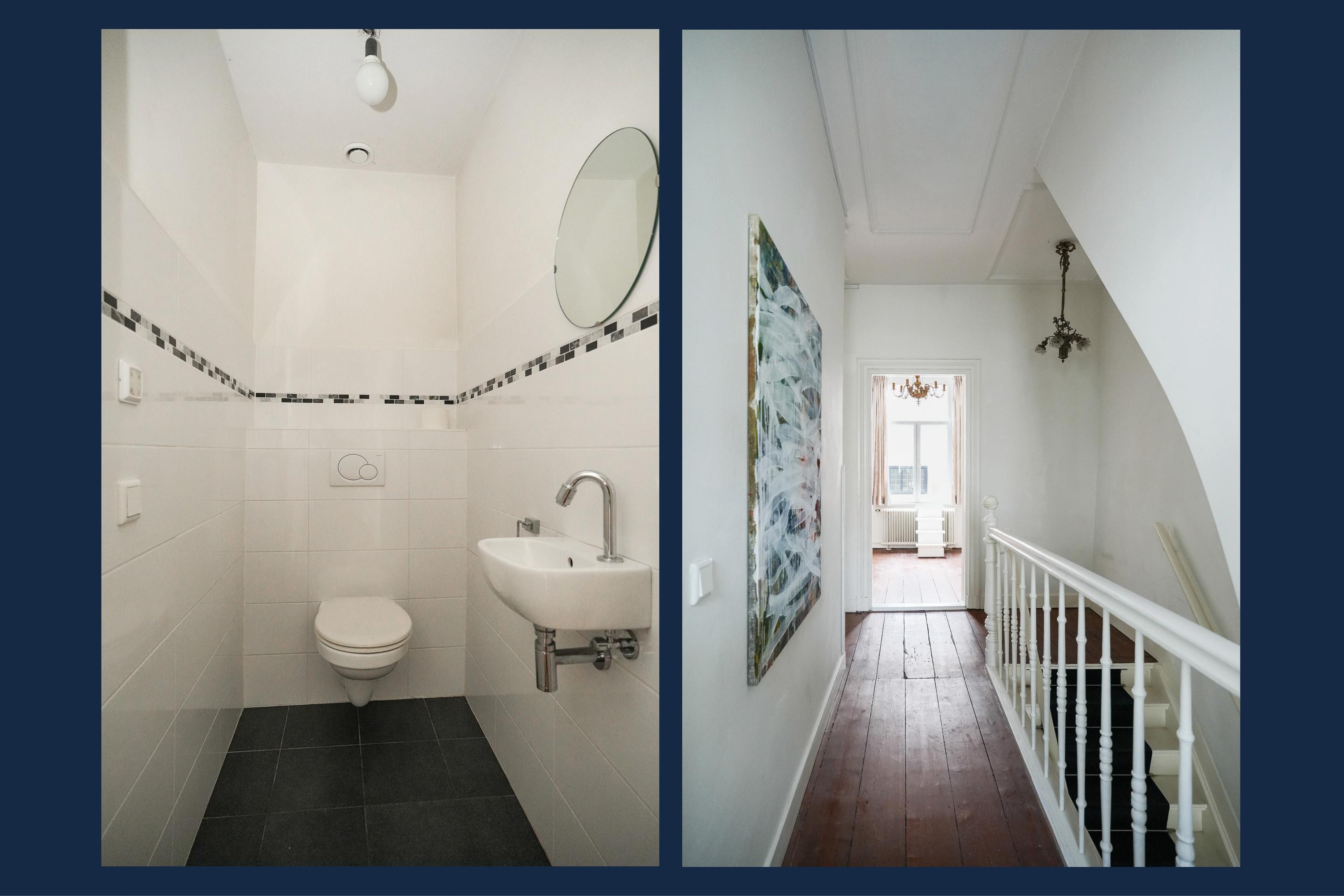 Upstairs, you'll find three bedrooms, including a particularly spacious master bedroom of exceptional size. The bathroom is practically laid out and equipped with a bathtub, shower, second toilet, and double sink. The sheltered roof terrace has recently been renovated and offers plenty of afternoon and evening sun. Additional storage space is available in the spacious attic. A characterful city apartment in a prime location between the train station and the 's-Hertogenbosch Market.