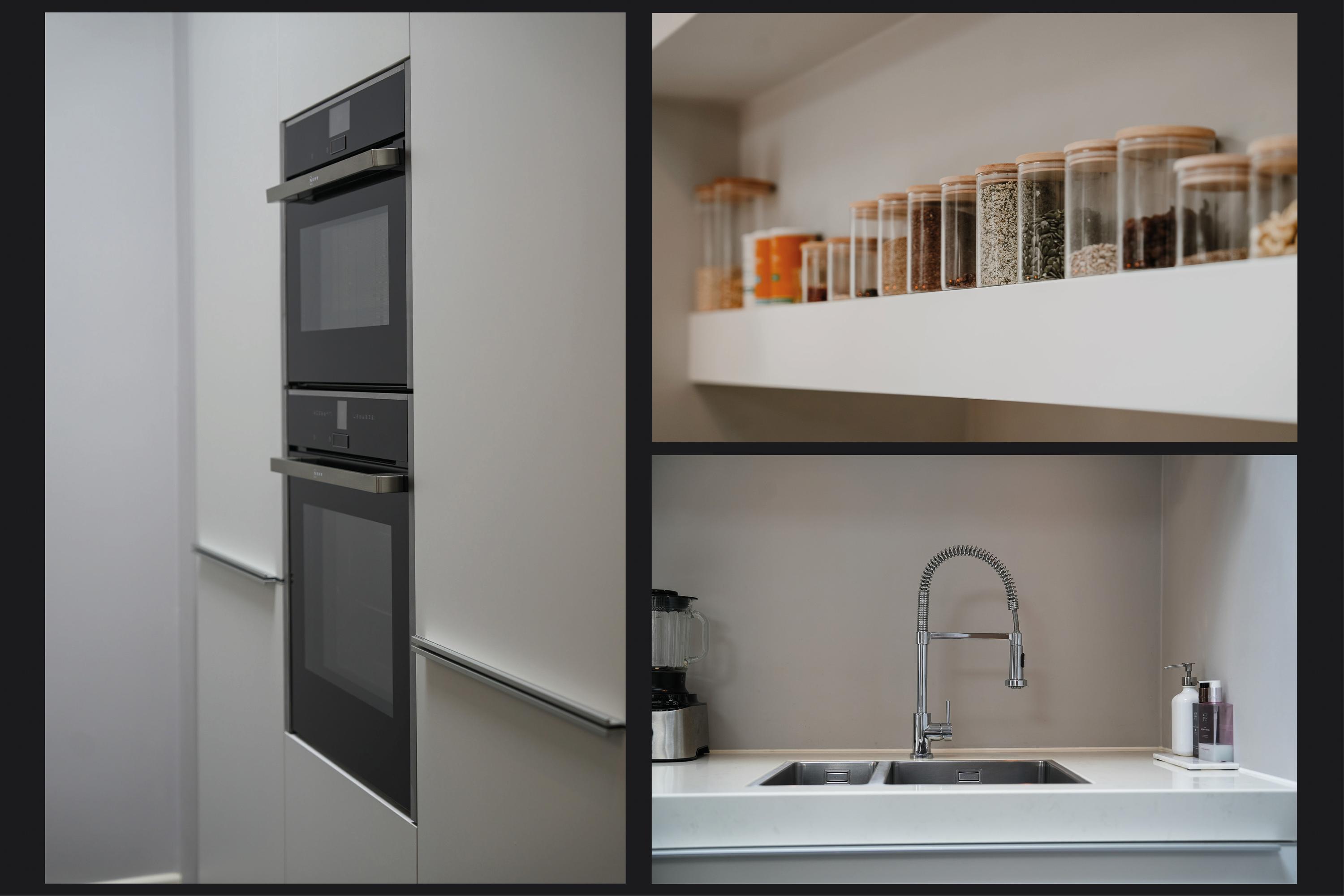 The ground floor offers a living room, a mezzanine, a dining room, and a luxurious kitchen/diner.