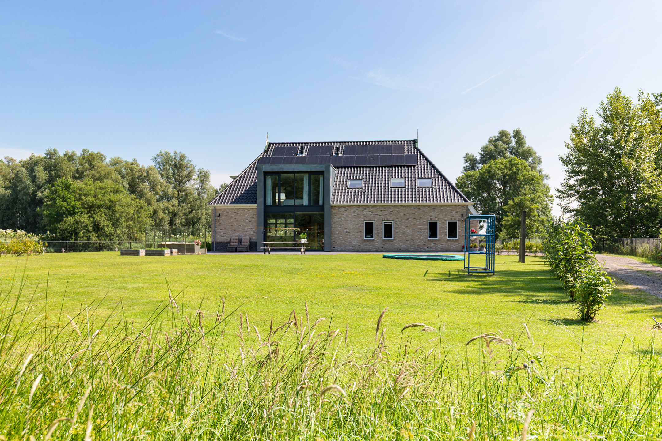 Designed in the style of a traditional Frisian farmstead but with a contemporary twist, this home blends rustic charm with modern efficiency. Its zinc-clad *risaliet* at the sun terrace hints at the refined architecture. Built to the highest energy standards, the property features full insulation, low-maintenance synthetic window frames, a geothermal heat pump with cooling module, heat recovery system (WTW), 38 solar panels and an A-level energy label. Inside, the ambience is open, light-filled and comfortable: a generous living area with a 107 m² kitchen-lounge, five bedrooms, four en-suite bathrooms, a spacious office, utility room and a spectacular fully insulated 75 m² barn with double stable doors.