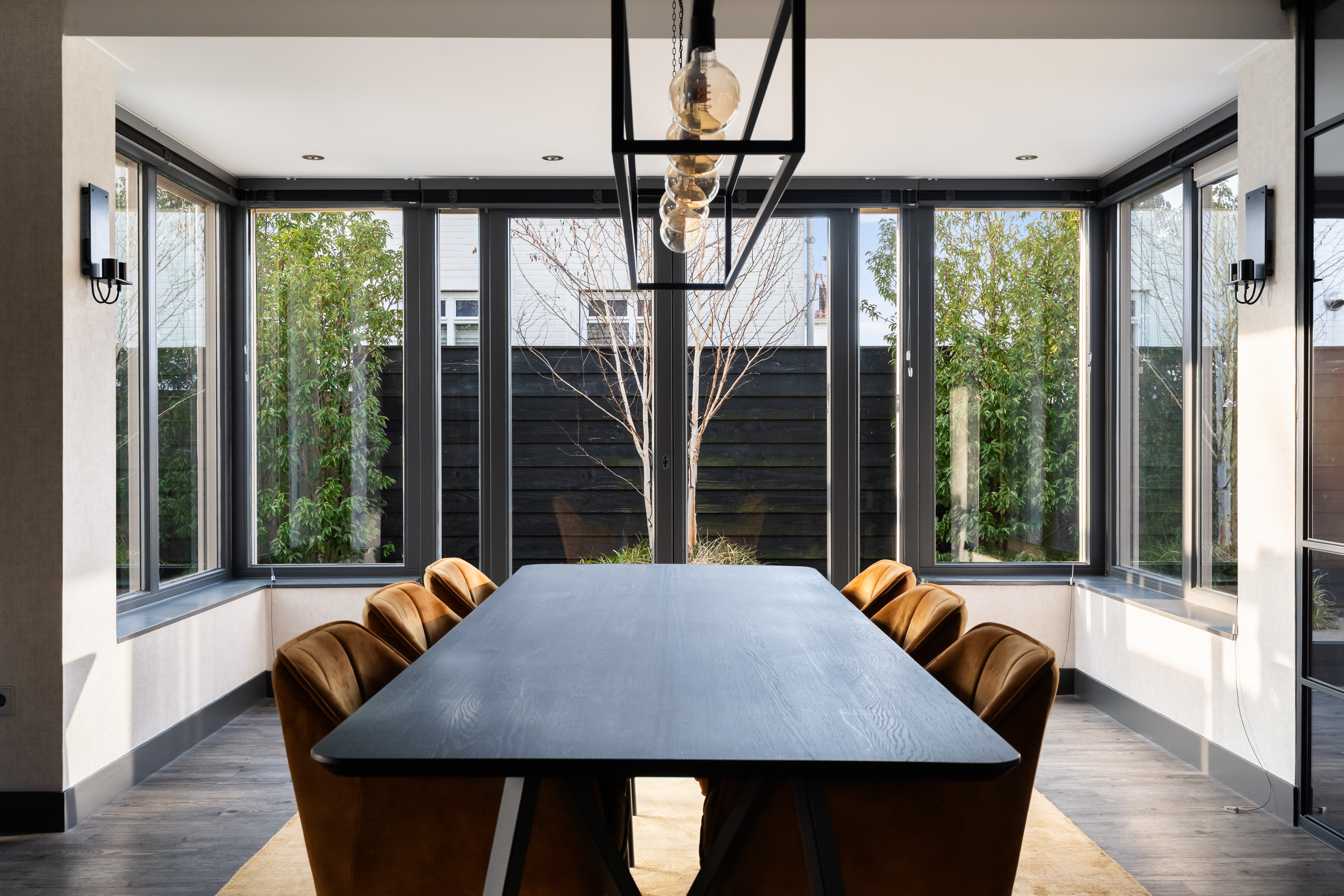 The generous driveway leads you to the entrance of this detached villa. Upon entering the hall, you immediately experience the sense of space, natural light and high-quality finish that characterise the property. The staircase to the first floor is also located here. From the hall, you have access to the various living areas on the ground floor.