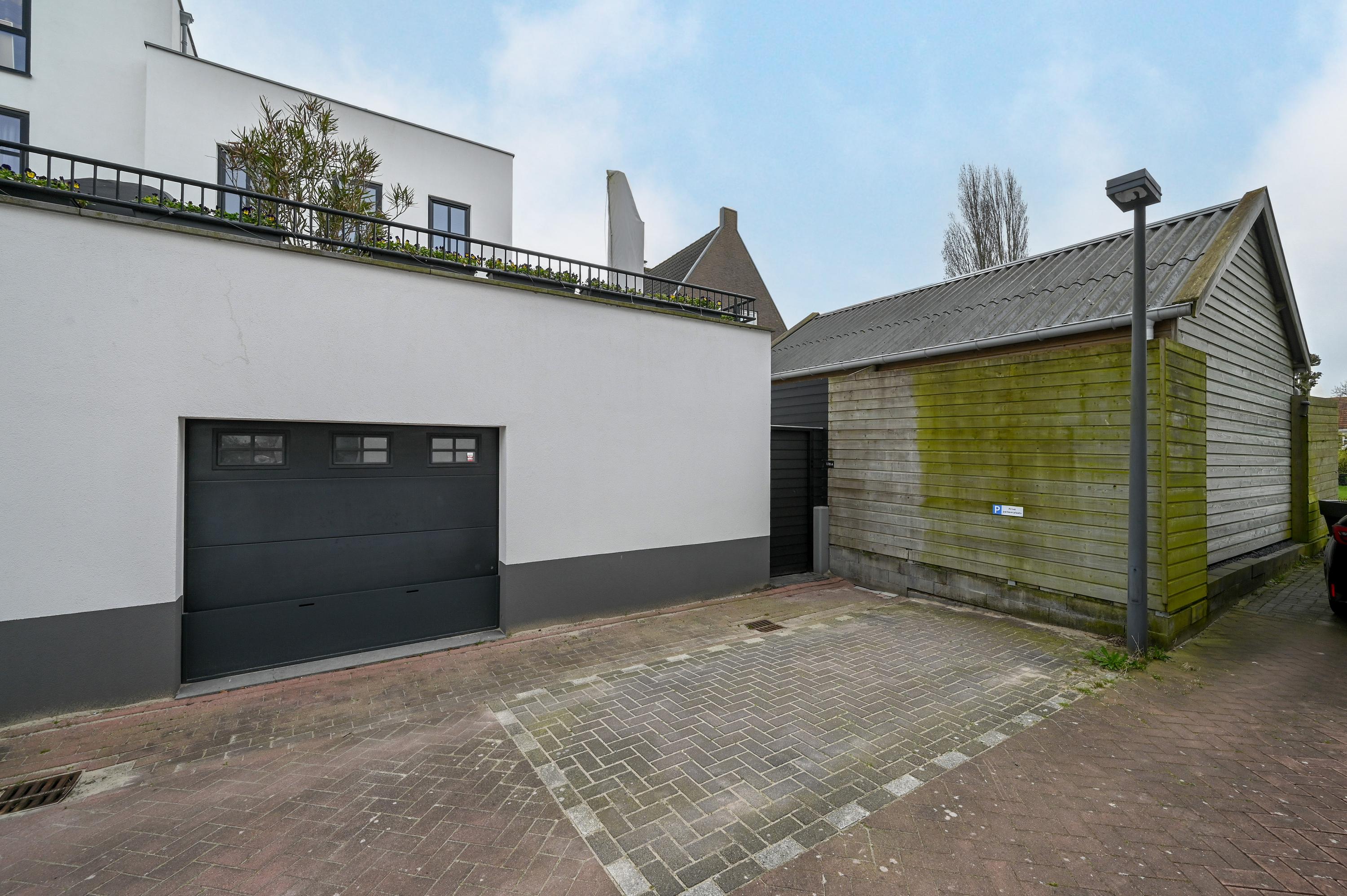 The second floor reveals a rooftop terrace with unobstructed views over the Amstel and polder, enriched by a pergola, integrated lighting, and water connection, creating an inviting setting for quiet reflection or hosting guests. Beneath the house, the garage is configured as a versatile studio, complete with kitchen, toilet, underfloor heating, and air conditioning, accessible via both the terrace and an electric entry.