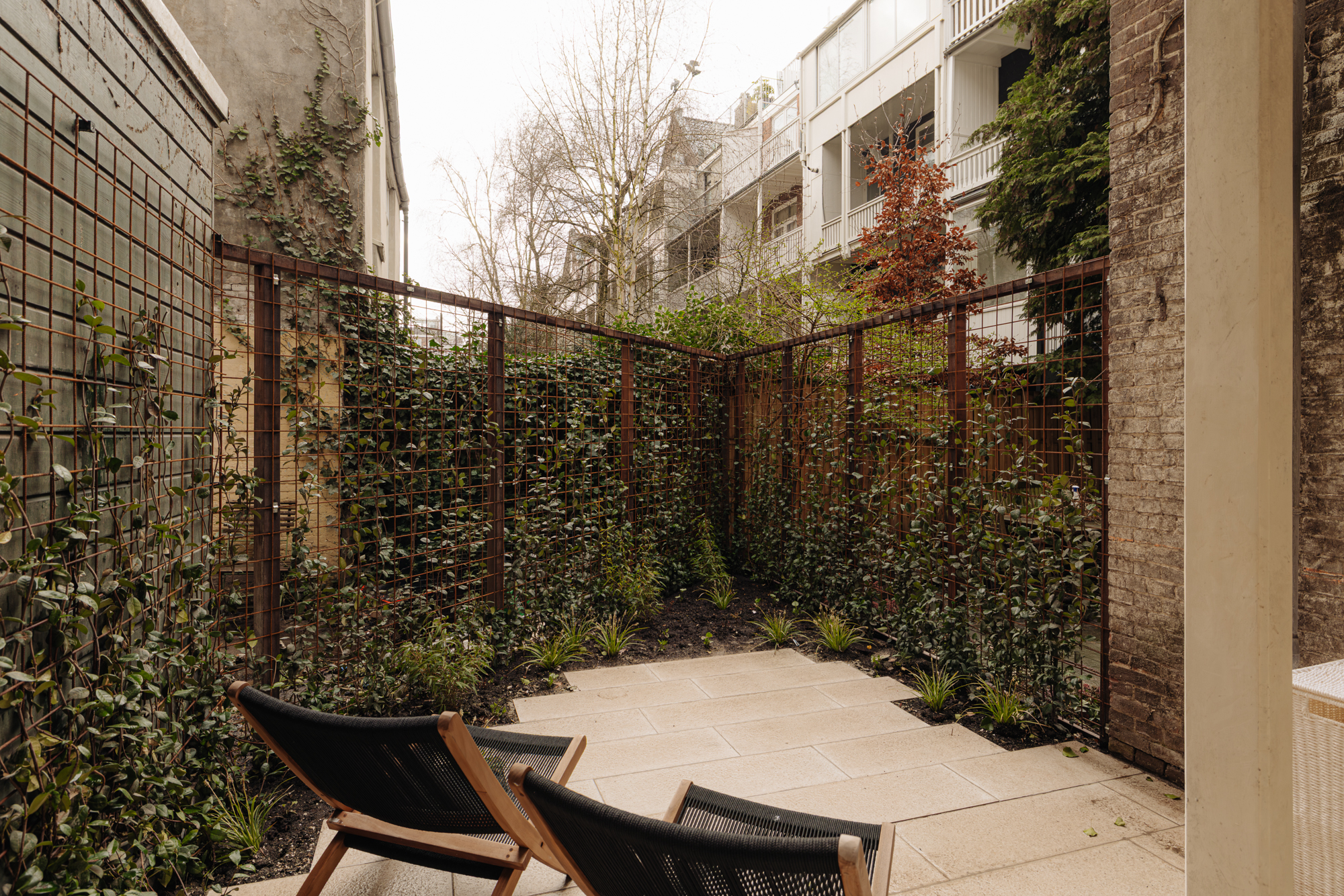 Through the private entrance, you enter the vestibule, leading into a spacious and elegant hallway that provides access to the various rooms. At the front is the generous living room, spanning the full width of the property and featuring three large windows that provide abundant natural light. At the rear is the first spacious bedroom with an en-suite bathroom equipped with a walk-in shower and washbasin. From this room, there is access to the first internal balcony, offering beautiful and unobstructed views over the green inner gardens of Van Eeghenstraat. A guest toilet is accessible from the hallway.