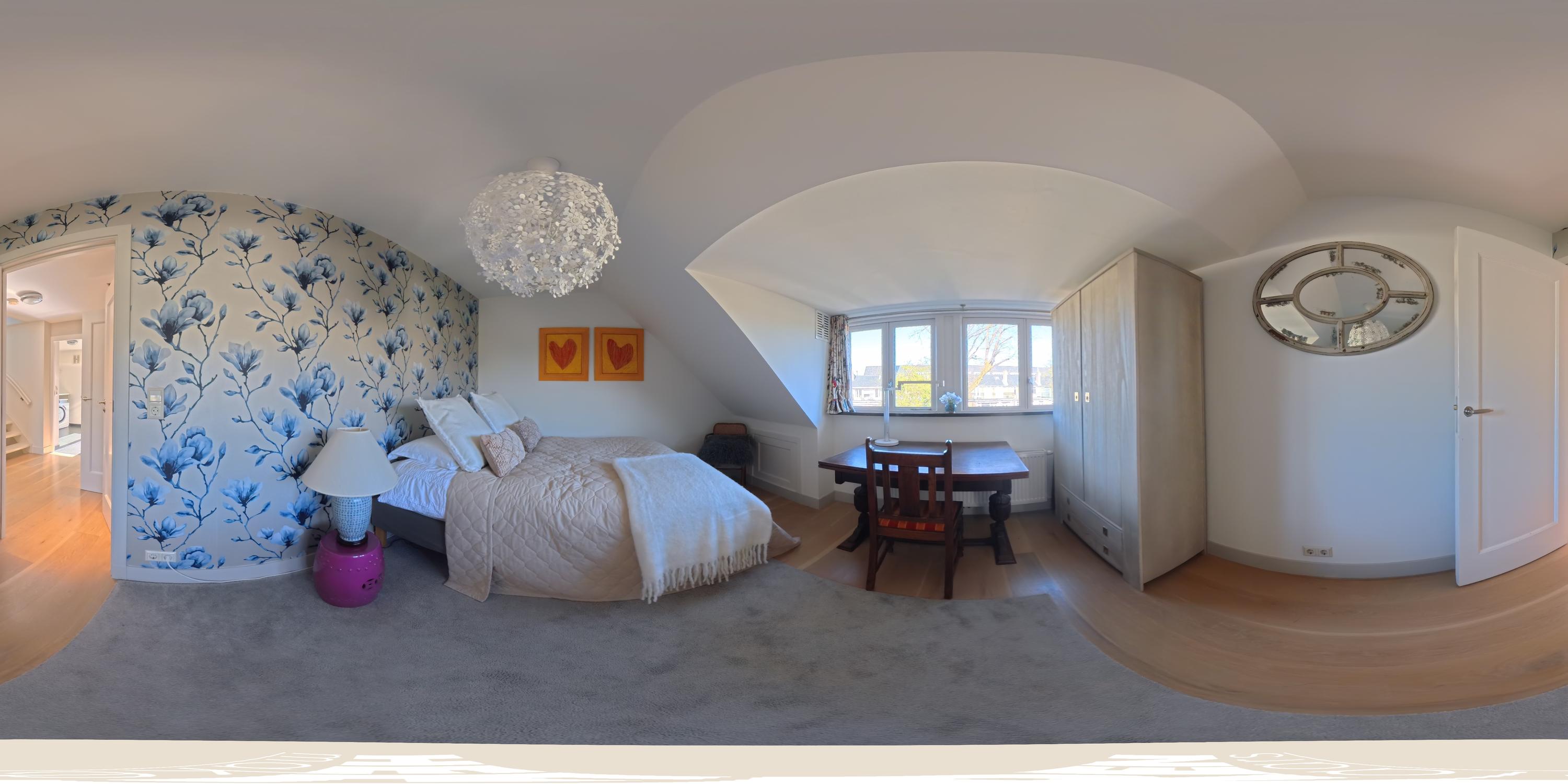 The upper levels host generous bedrooms, including a master suite with custom wardrobes and a secluded balcony. Multiple bathrooms ensure comfort and privacy. The top floor features ample natural light with impressive ceiling height, suitable for working or relaxing. High-quality finishes, dakraam for additional illumination, and insulation measures such as dakisolatie and double glazing contribute to its comfort.