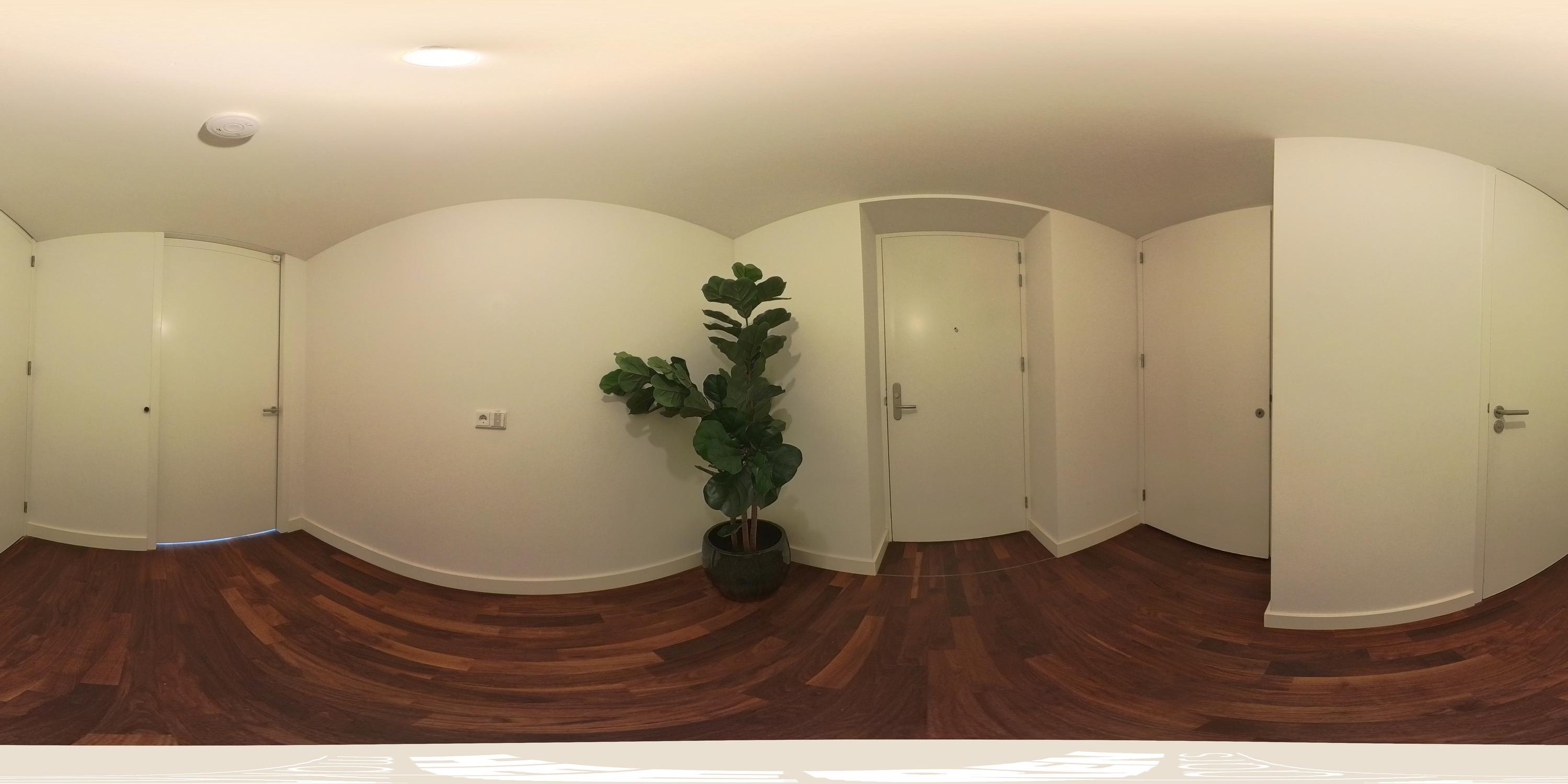 Upon entering the 8th floor, you step into a spacious hallway with a meter cupboard, separate toilet, and room for a wardrobe. From here, you enter the bright and airy living area, where the views immediately catch your eye, creating a sense of openness and calm. At the front, sliding glass doors give access to the generous balcony that spans the full width of the apartment — an ideal spot to relax, enjoy breakfast, or take in the view. The open-plan kitchen is situated at the rear and is equipped with modern built-in appliances, including a fridge, freezer, induction hob, Quooker, and dishwasher.