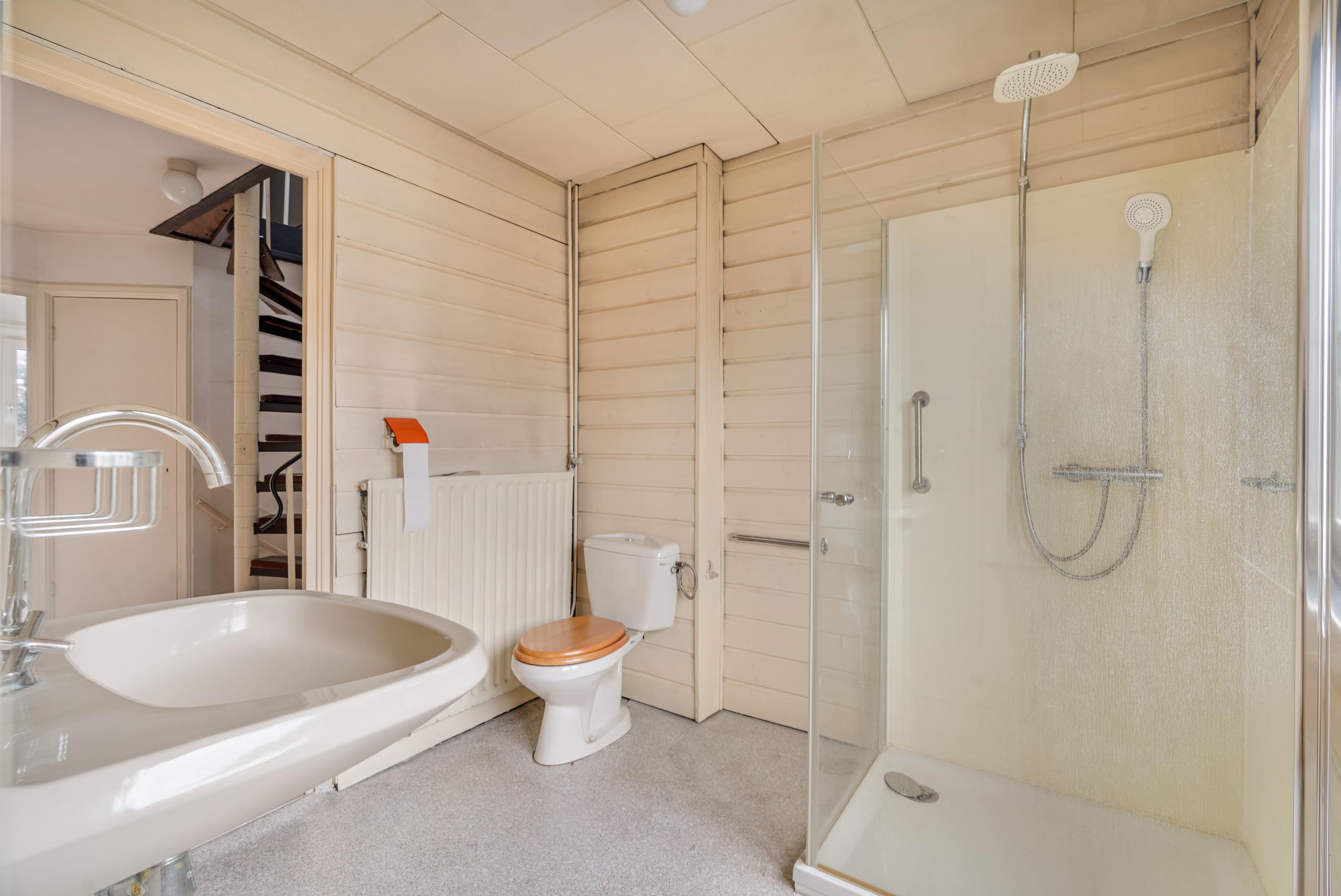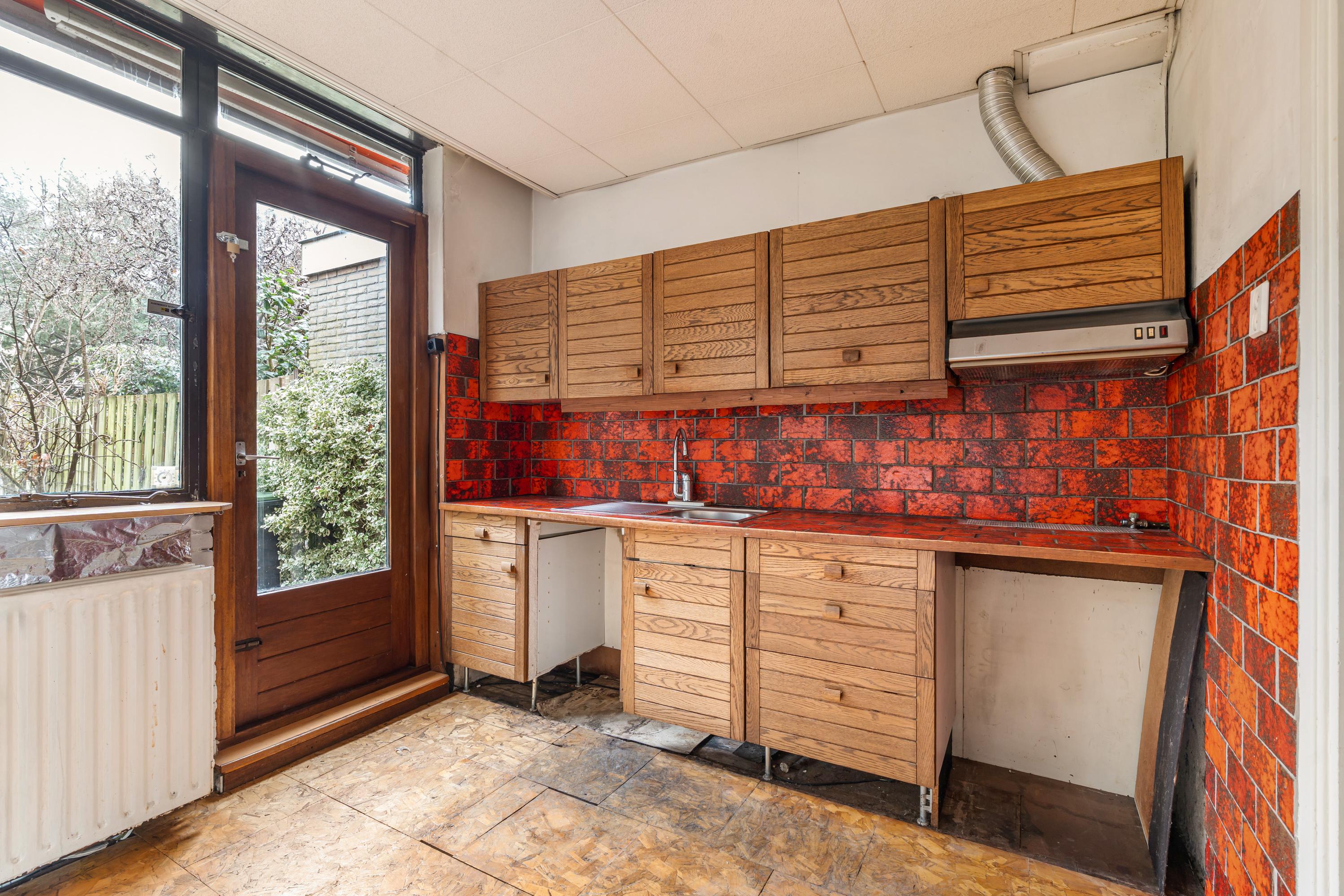 At the rear of the property is the kitchen, with direct access to the garden. The kitchen is basic and dated but offers excellent potential to create a modern (open-plan) kitchen. The ground floor also lends itself well to reconfiguration and/or extension at the rear, subject to obtaining the required permits.