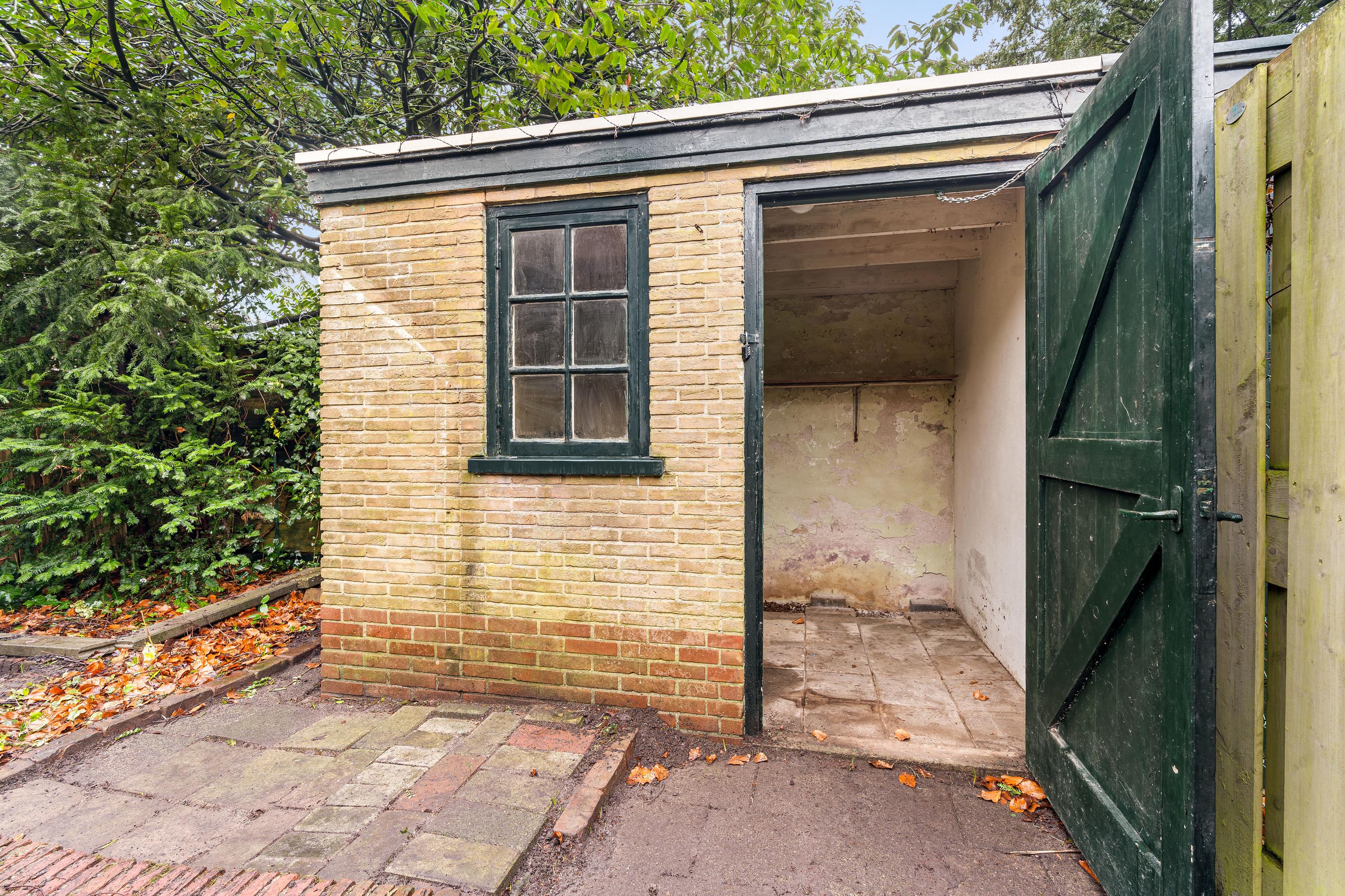 - Rear garden approx. 105 m² with a storage shed (approx. 5 m²), west-facing and with rear access;