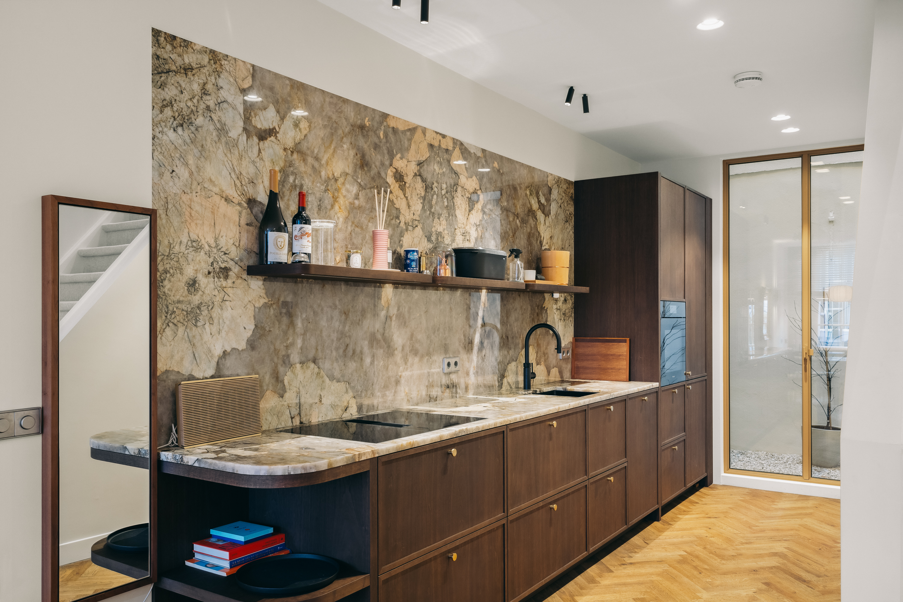 Canal House Amsterdam stands as a testament to timeless architecture, combining 17th-century heritage with a refined, architect-led renovation. The residence offers 134 m² of living space with a distinctive layout and a secluded mini-courtyard, all set along the illustrious Herengracht. Entering through the classic façade, one is welcomed into warmly lit interiors featuring high ceilings, oak herringbone parquet floors, and bespoke cabinetry. The living-dining kitchen is custom designed, seamlessly connecting to an intimate patio through double doors. A thoughtfully placed workspace enjoys views over the canal.