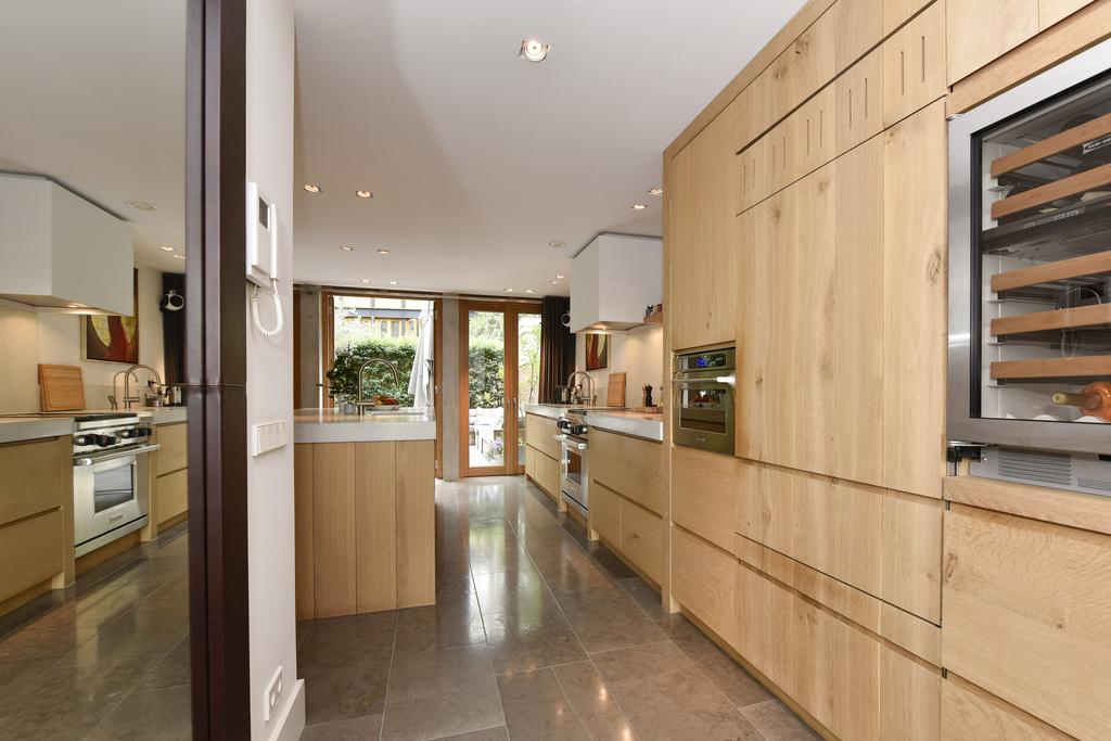 The generous entrance with a lift offers access to the apartment. Spacious hallway with separate toilet and cloakroom. You enter into the epicentre of the apartment - the open kitchen - which provides access to the spacious garden of 41 m2 through French windows. The luxurious and well-equipped kitchen is fitted with all the conveniences you can imagine. From the professional dishwasher to the several fridges, which make staying in this space an absolute joy. Here, you will also find a spacious cupboard under the stairs.