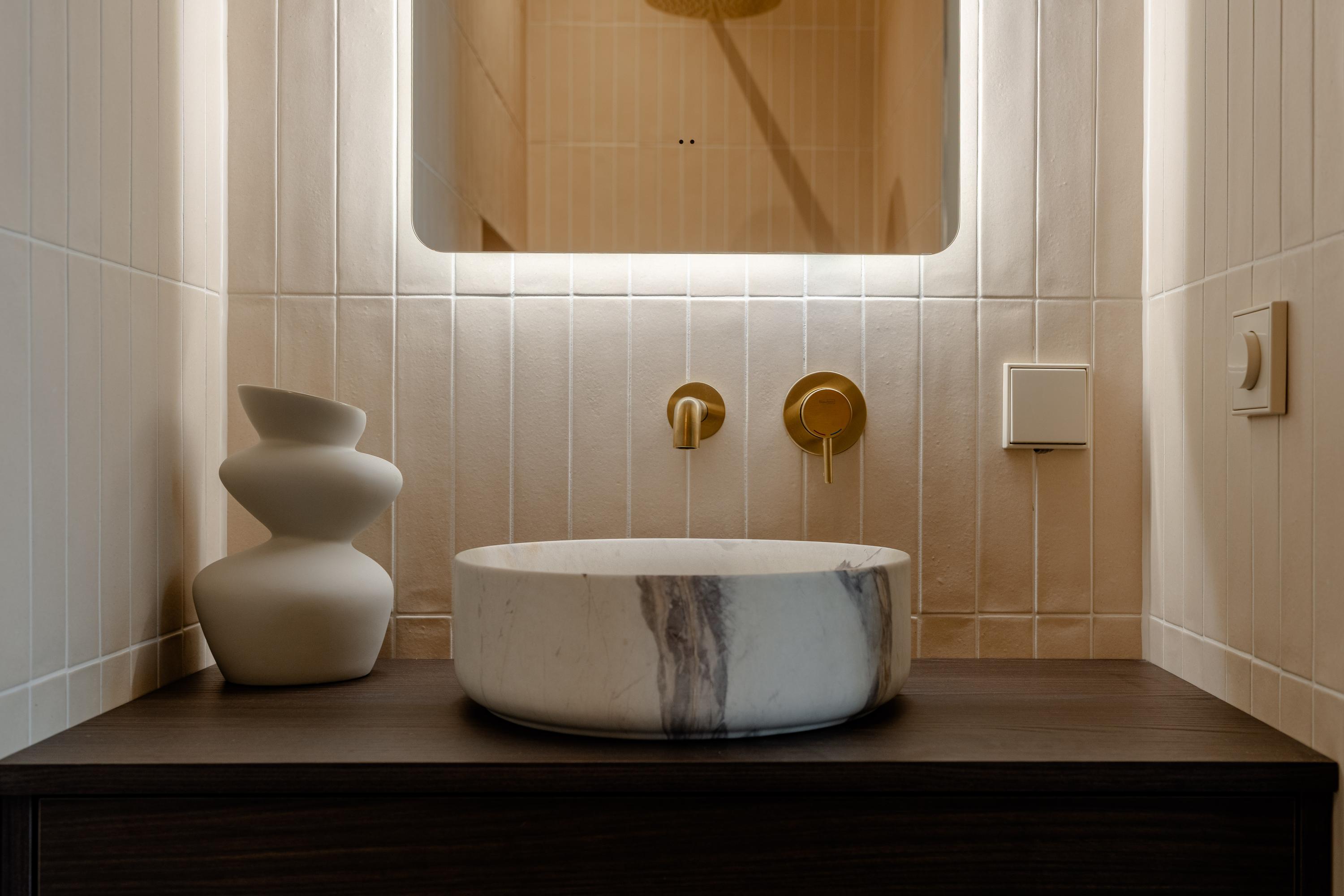 A luxurious and thoughtfully designed apartment with an open living area, high-quality finishes and a quietly situated balcony overlooking greenery.