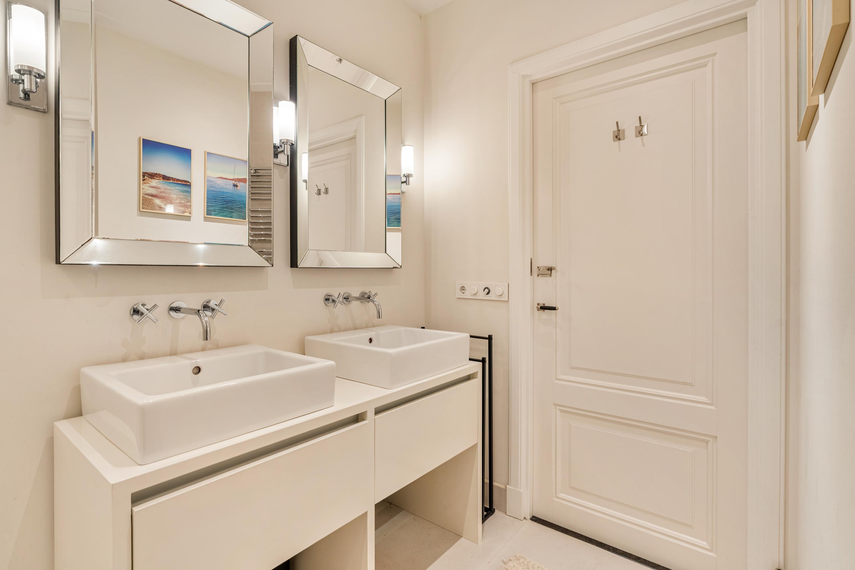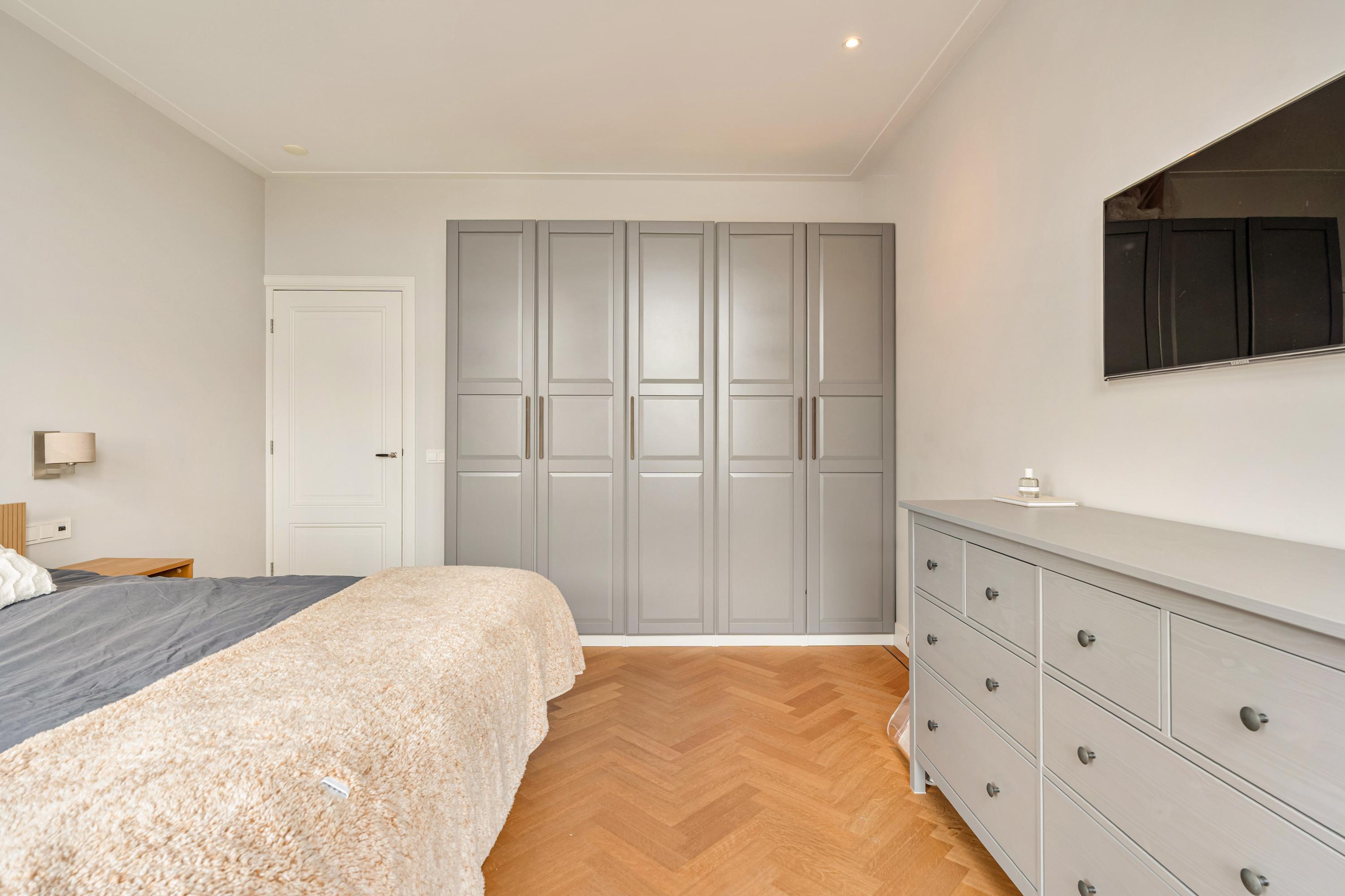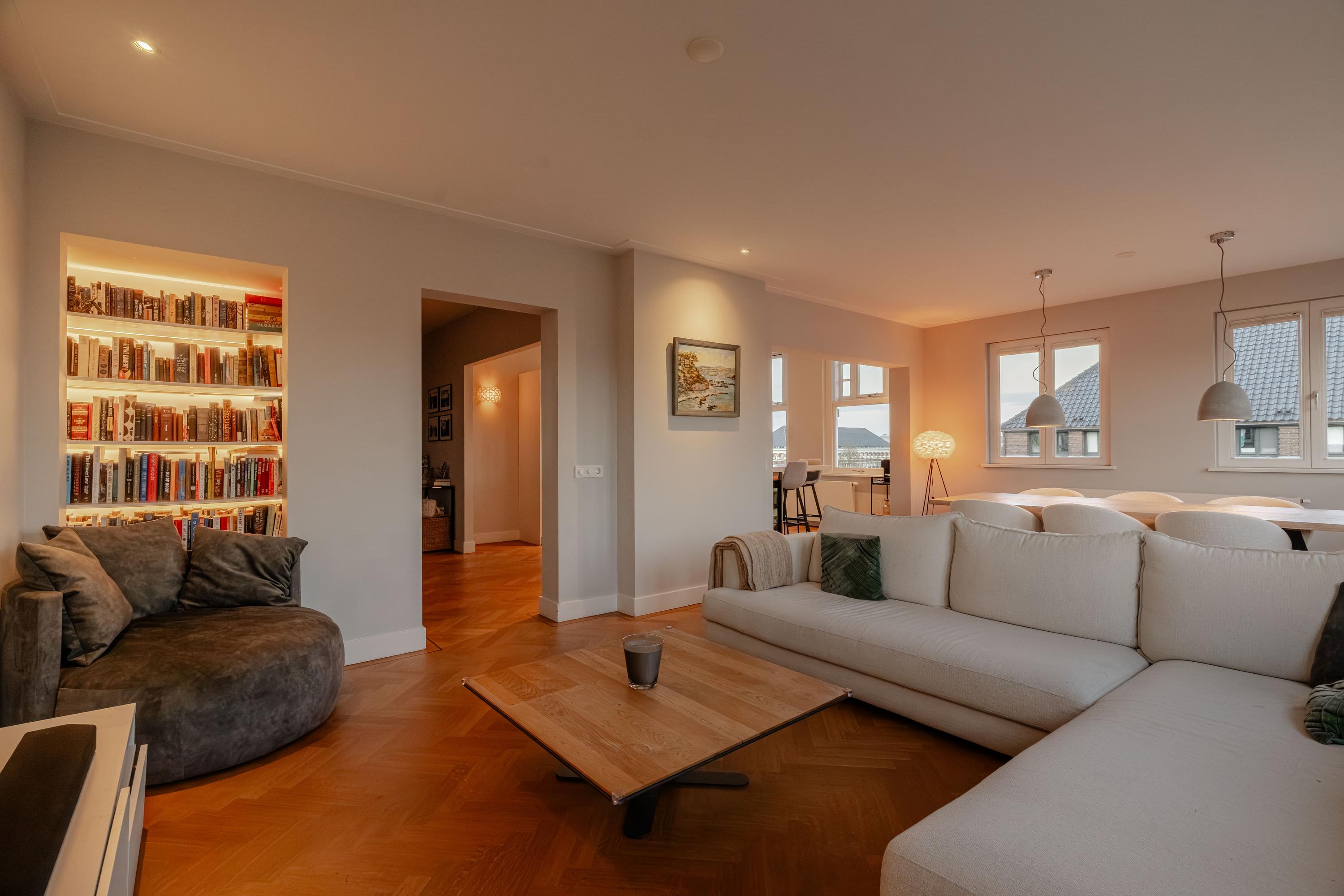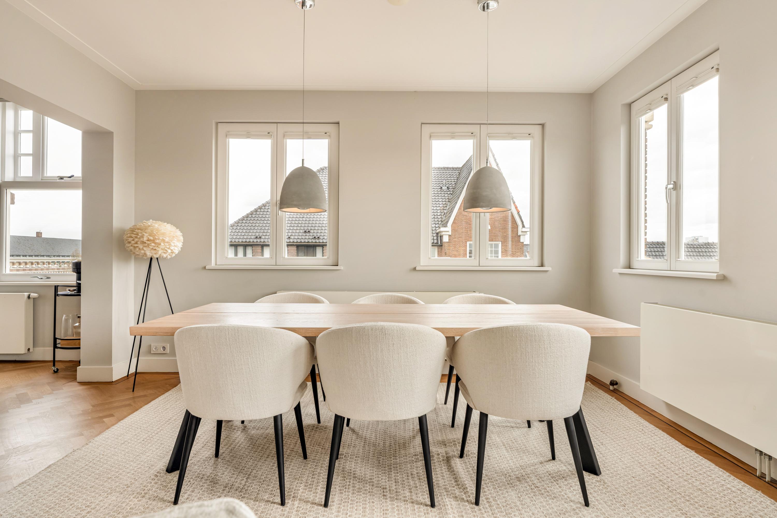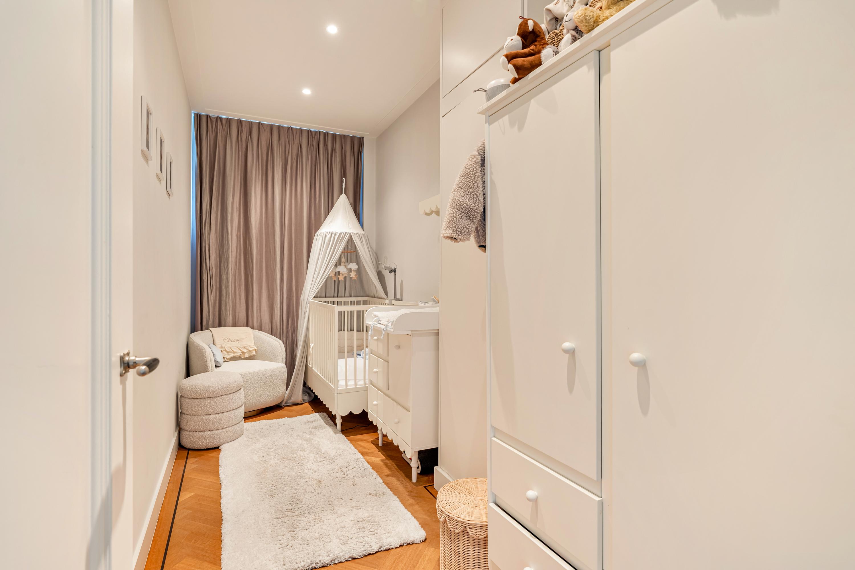 The apartment is finished with a beautiful wooden herringbone floor. All window frames have been renewed in hardwood with HR++ double glazing, while preserving and modernizing the characteristic sliding window system.