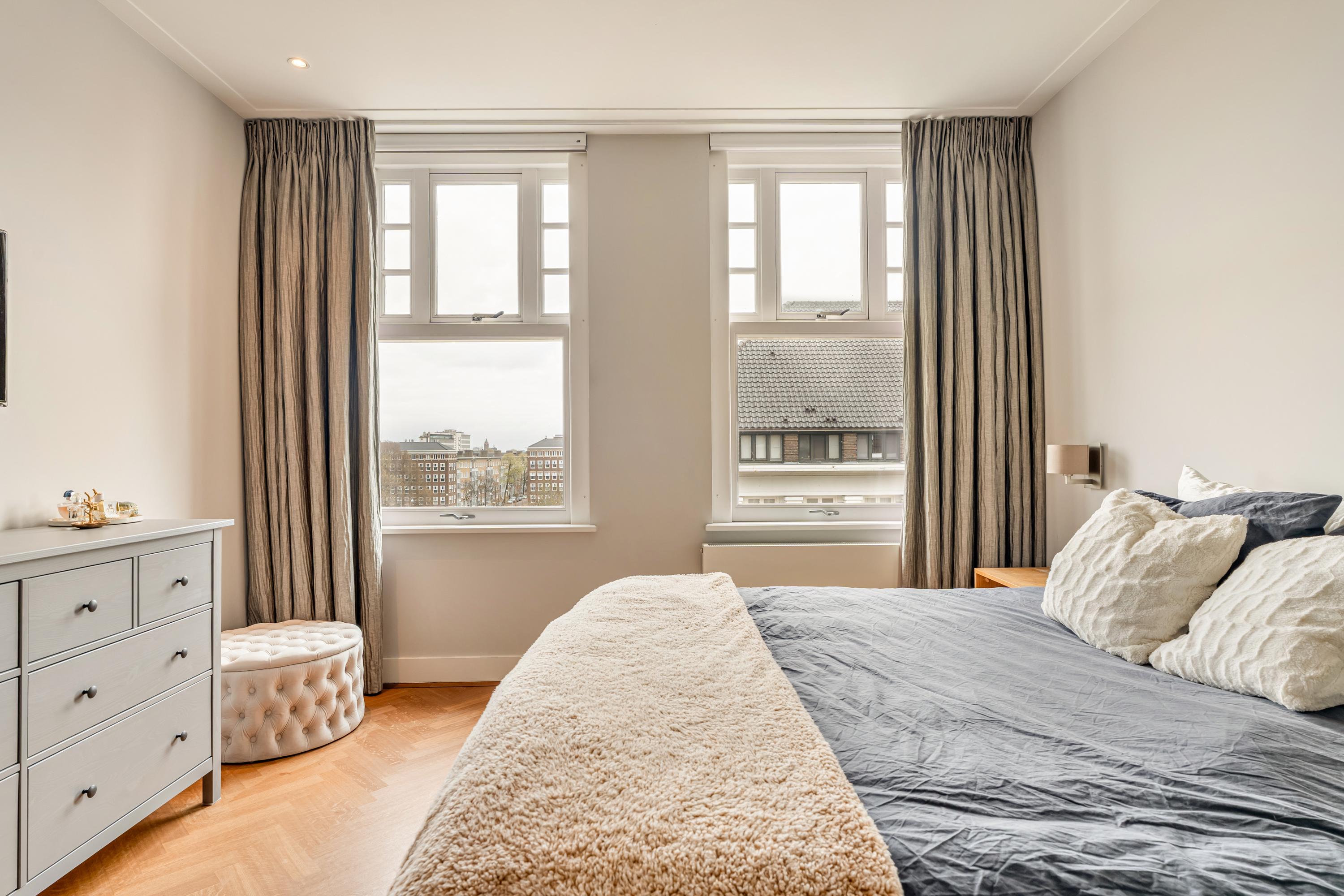 Bright and spacious corner apartment (over 110 m²) in a prime location on the stately Minervaplein, offering spectacular unobstructed views over the square and the Zuidas skyline. The property is situated on the fifth floor of a well-maintained building with elevator access and features two bedrooms, with the possibility to easily create a third.