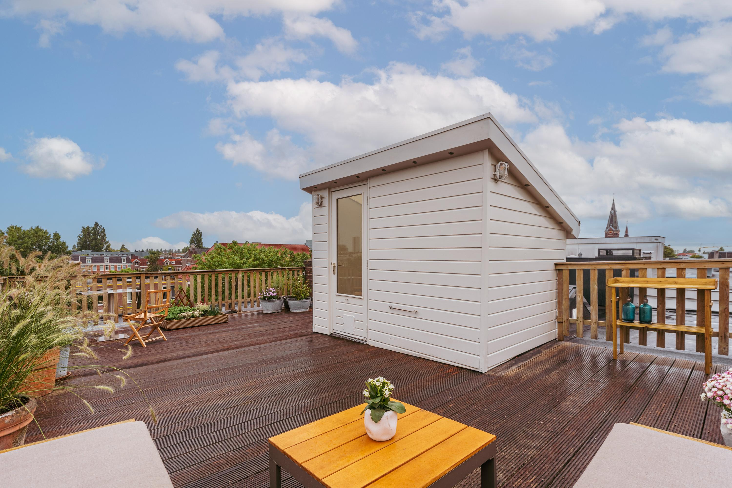 The true highlight of this property is the spacious roof terrace of approx. 38m². A fixed staircase leads to the top floor, providing direct access to this exceptional outdoor retreat. Extending across the entire width of the property, it offers unique, unobstructed views over the Sarphatipark and the city skyline.