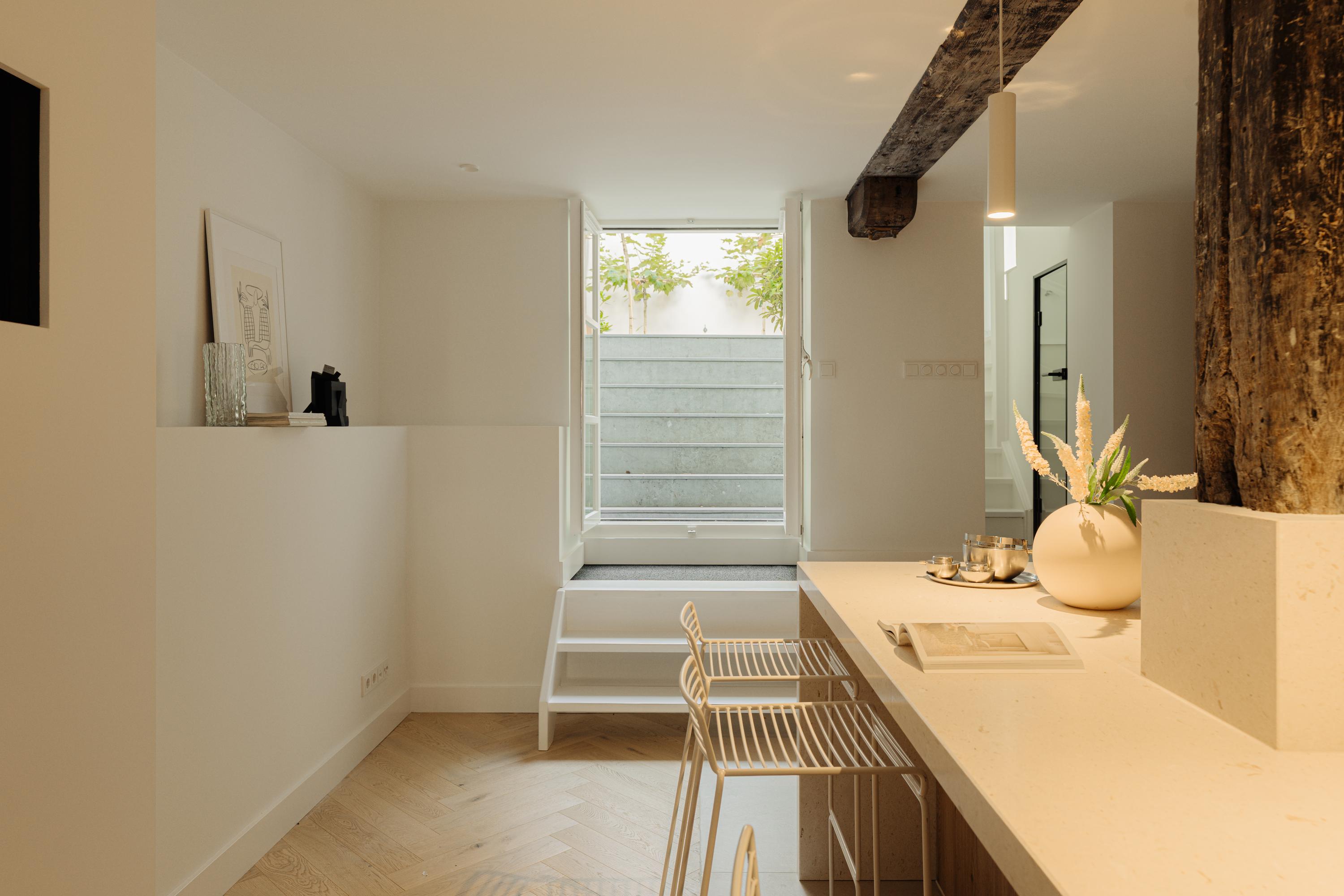 At the rear of the property lies a spacious and secluded city garden — a true oasis of calm in the heart of Amsterdam. The garden is beautifully landscaped with natural materials and lush greenery that reflect the serene character of the interior.