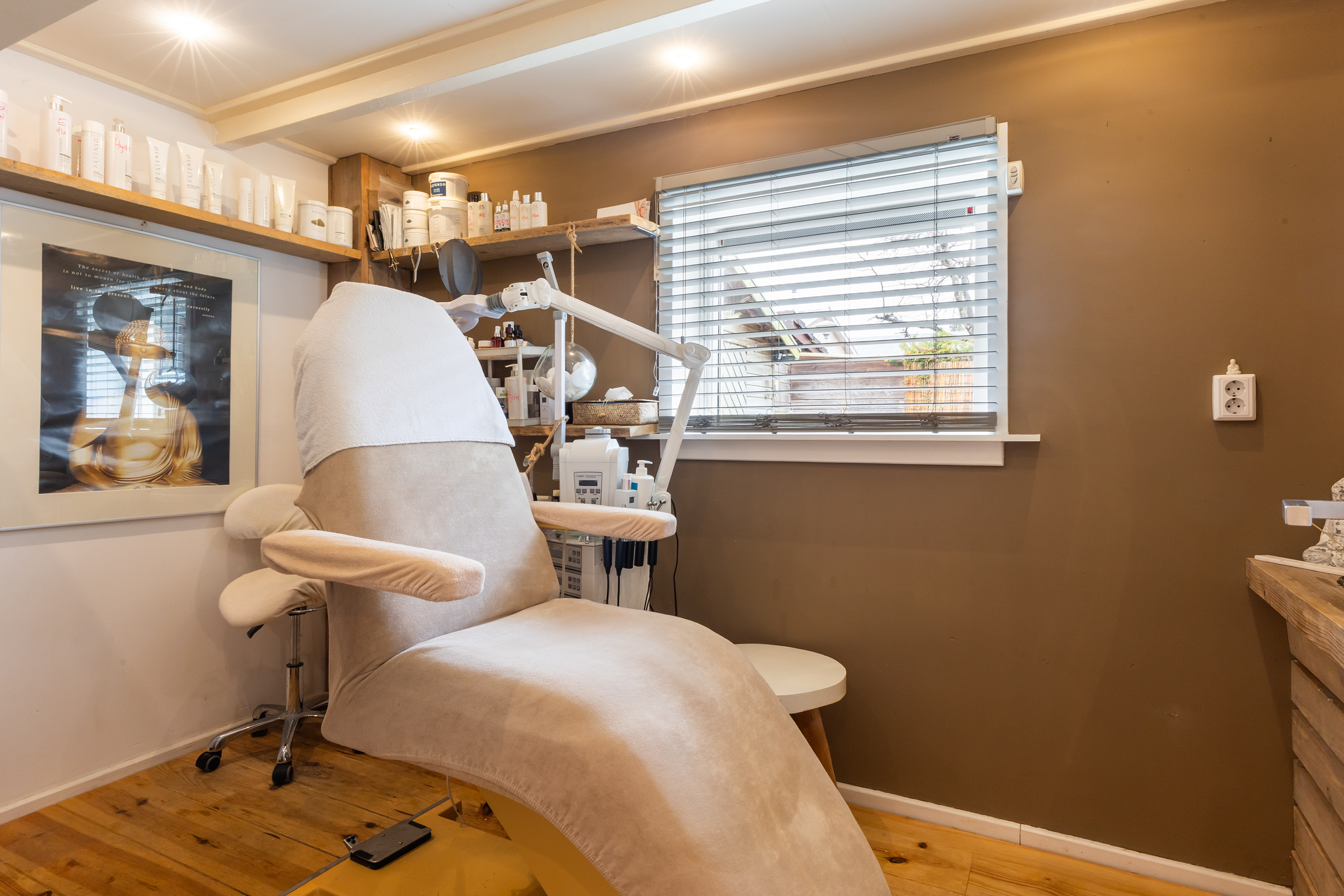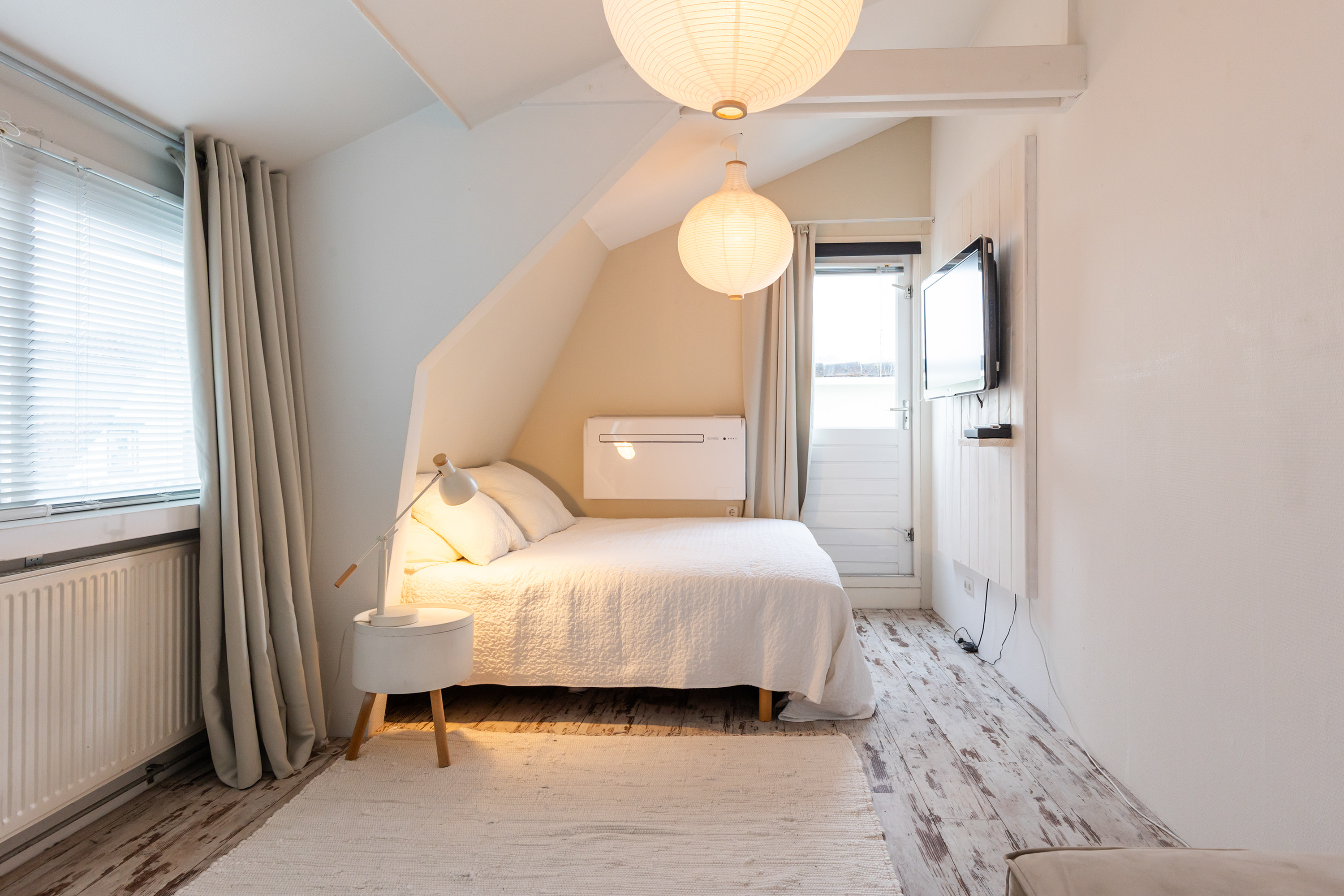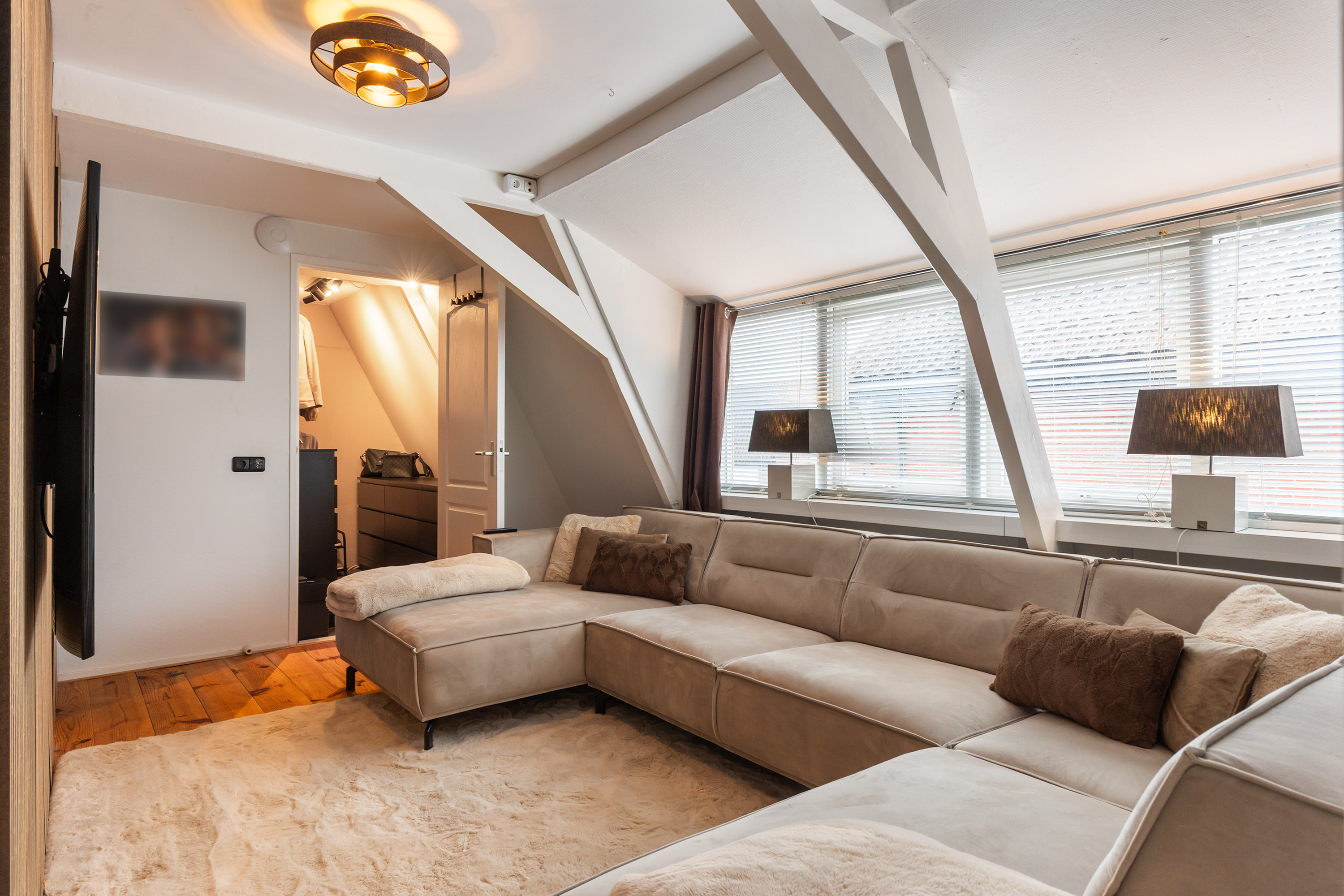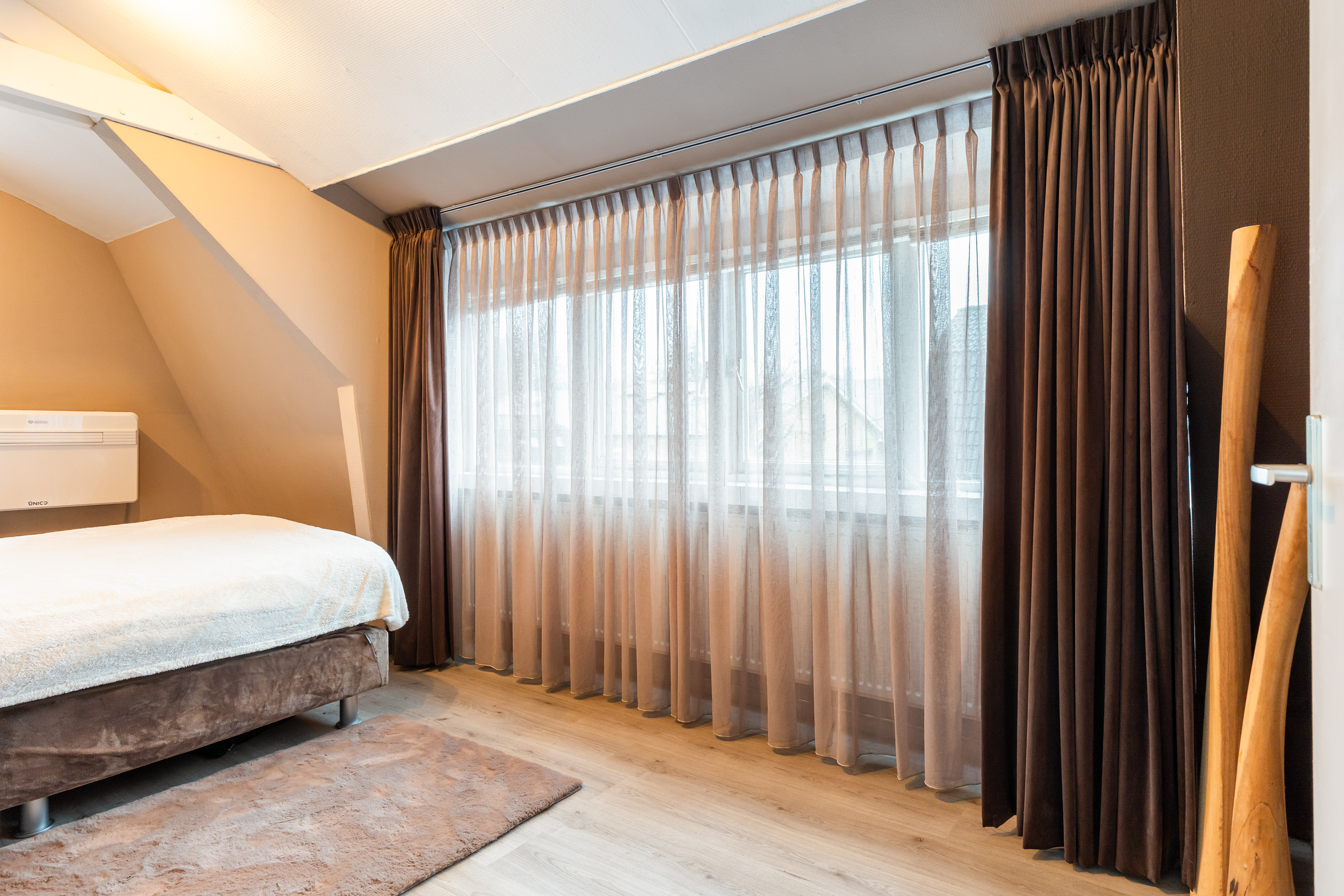 From the front of the property the full extent of the living space is hardly visible. Once inside, the space unfolds impressively, offering several living and sleeping areas, two bathrooms, two garages, two verandas and a sunny, fully private garden with swimming pool. The current finish is contemporary and inspired by a warm South-European Ibiza style. In 2026 the exterior was finished in a warm tone and fitted with characteristic louvre shutters. Combined with the sunny terraces and the pool, this creates a relaxed and almost Mediterranean atmosphere.