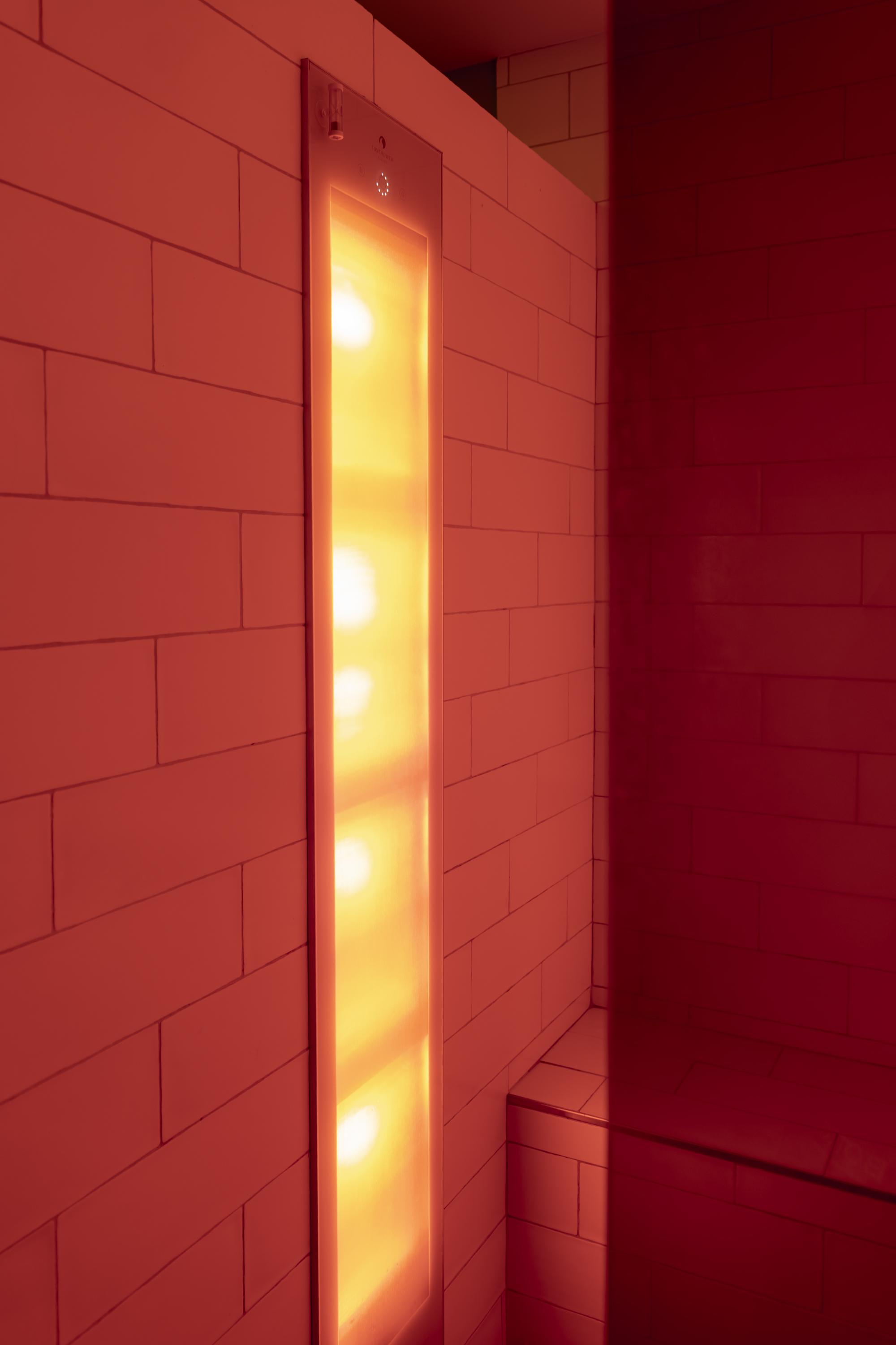 Landing with access to three spacious bedrooms, all suitable for double beds. The contemporary bathroom is stylishly appointed and fitted with a walk-in shower with rainfall and hand-held shower, an integrated infrared and sunbed function within the shower wall, a double vanity unit and a wall-hung toilet.