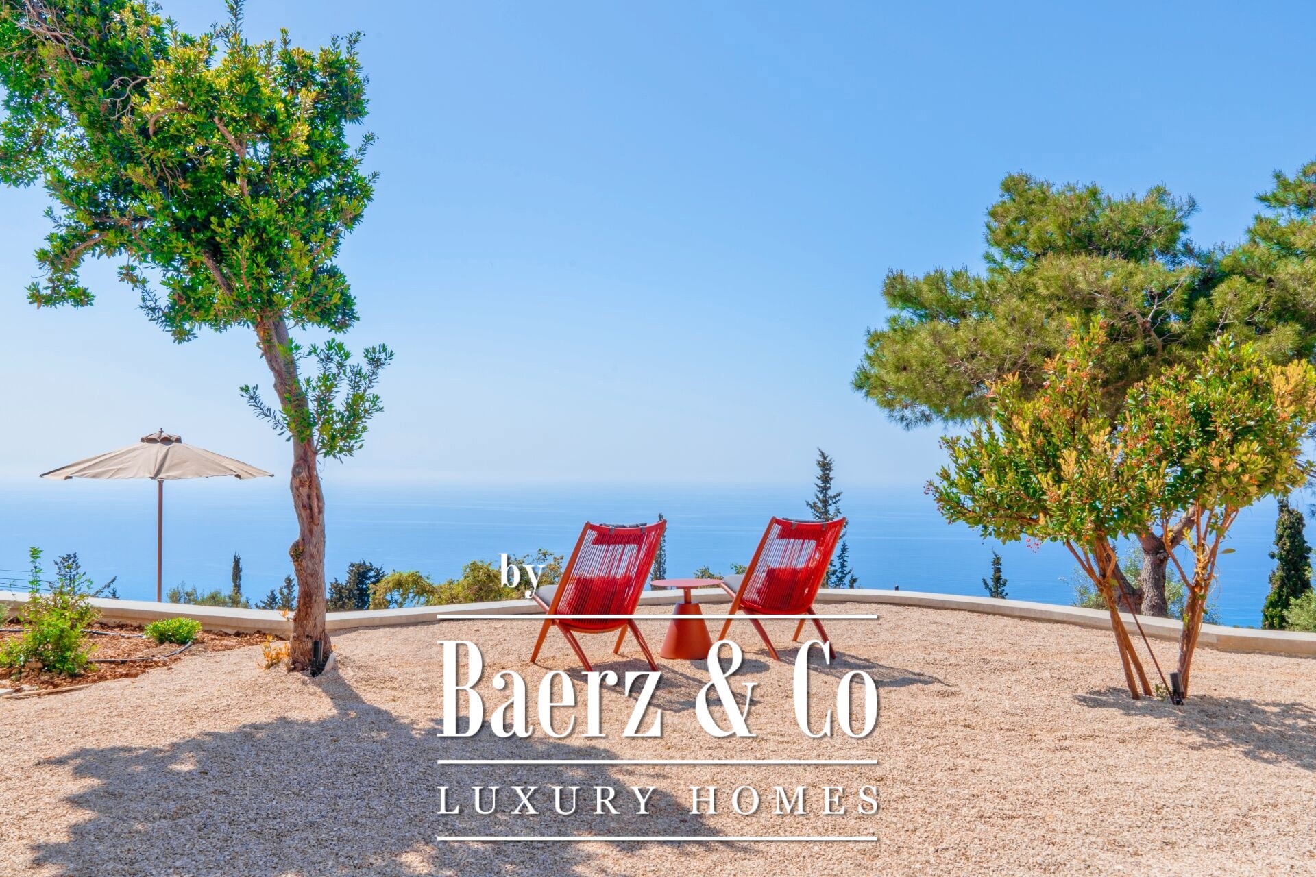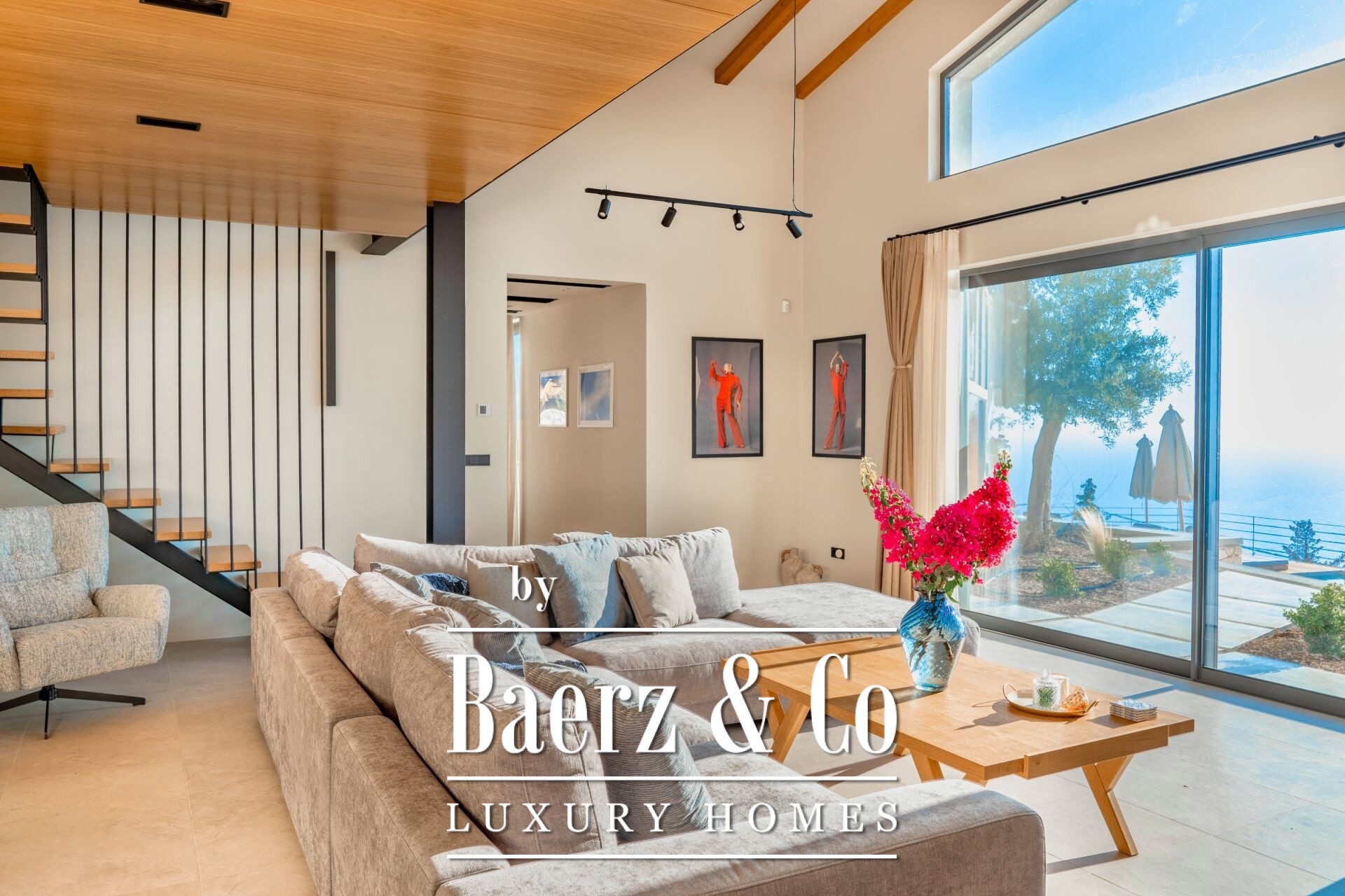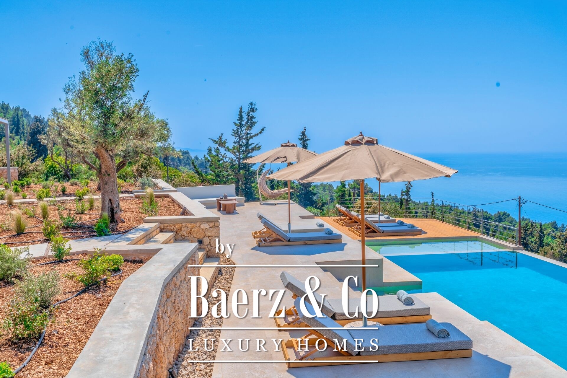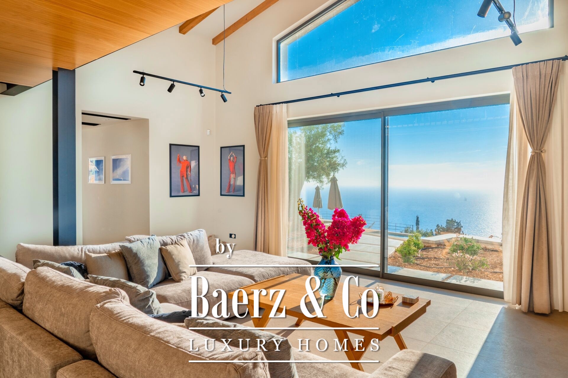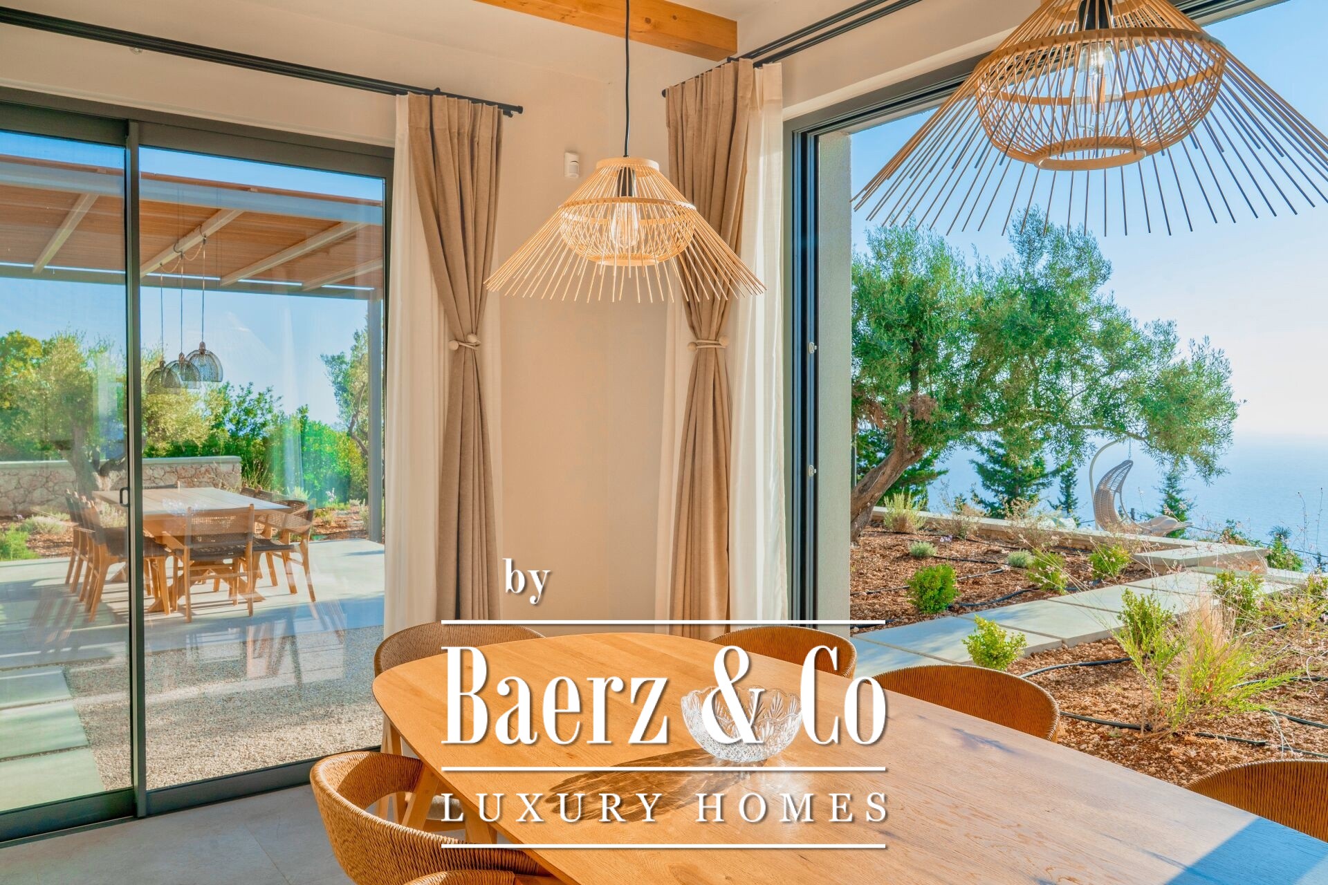 Set in a serene natural landscape, just 530 meters from the sea, this luxurious newly built villa with a total area of 237 sq.m. is situated on a private plot of 5,380 sq.m., offering unobstructed 180-degree panoramic views of the Ionian Sea, the surrounding mountains, and the lush greenery of Lefkada. Its location, close to the famous Egremni Beach, makes it one of the most privileged properties on the island.