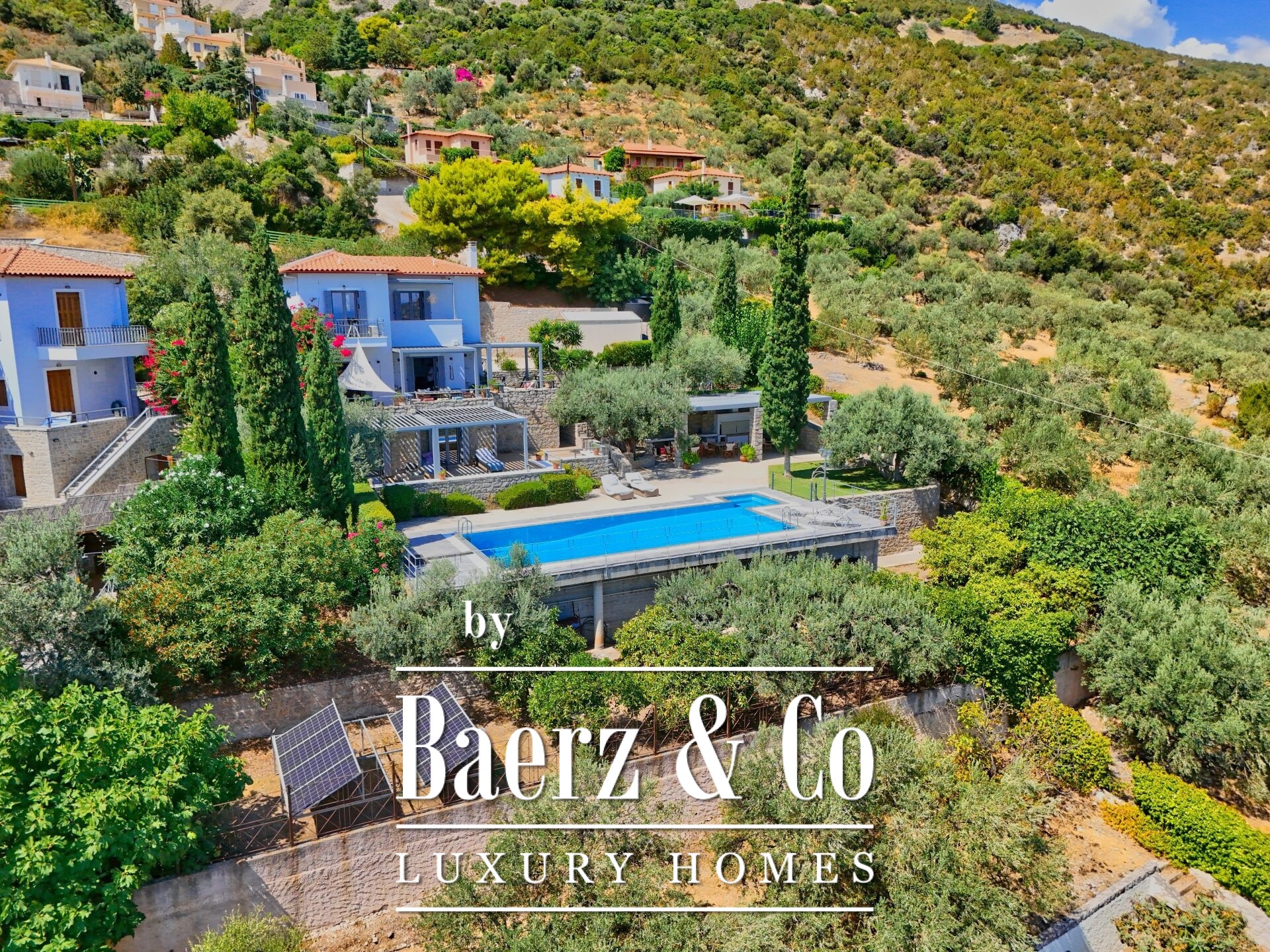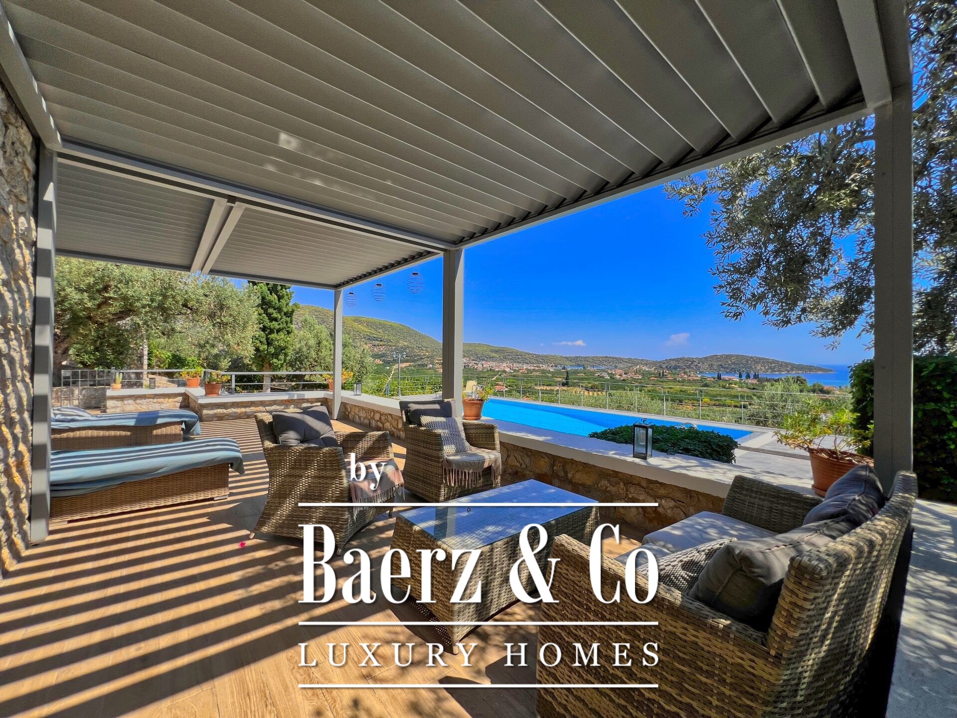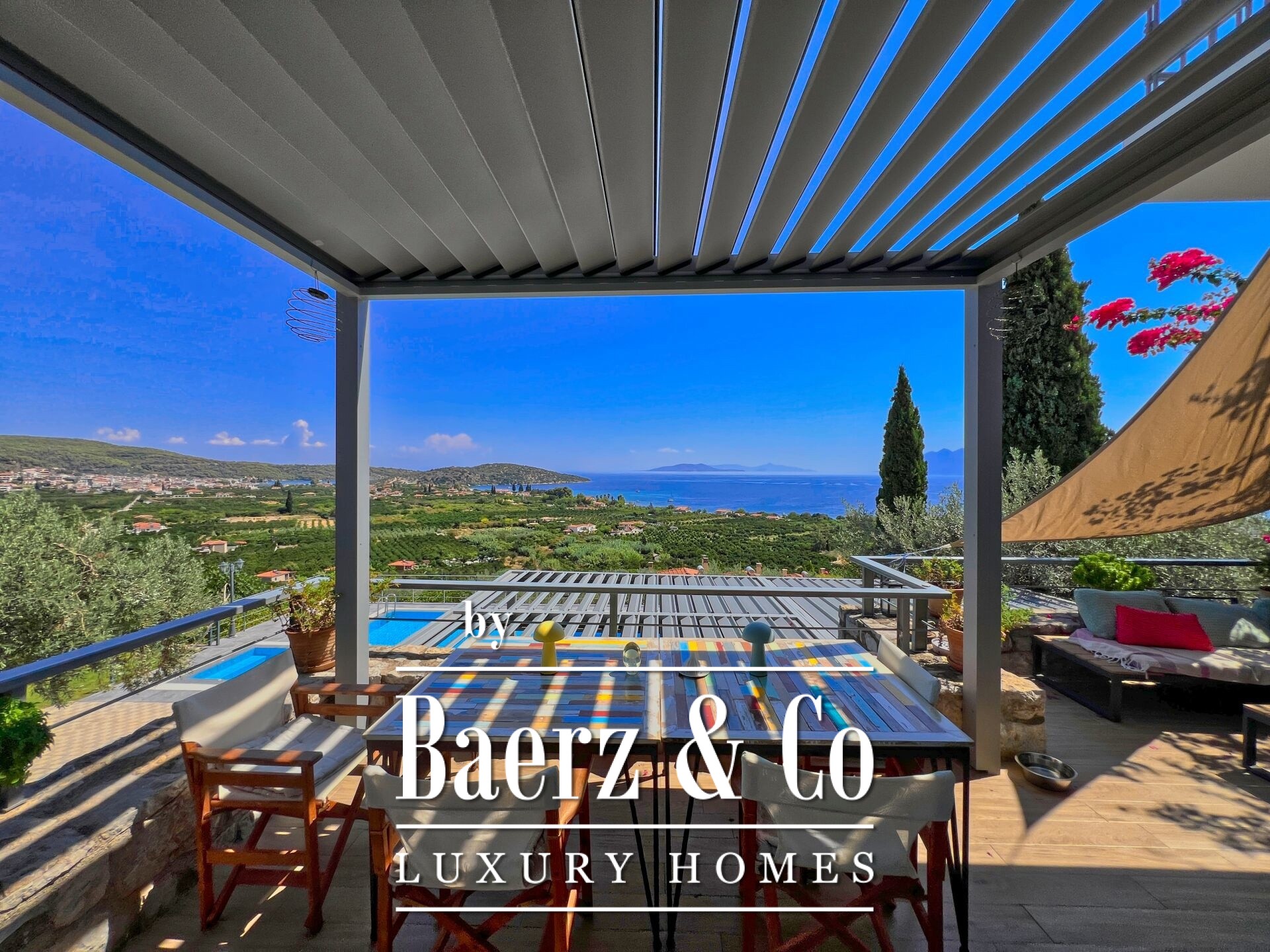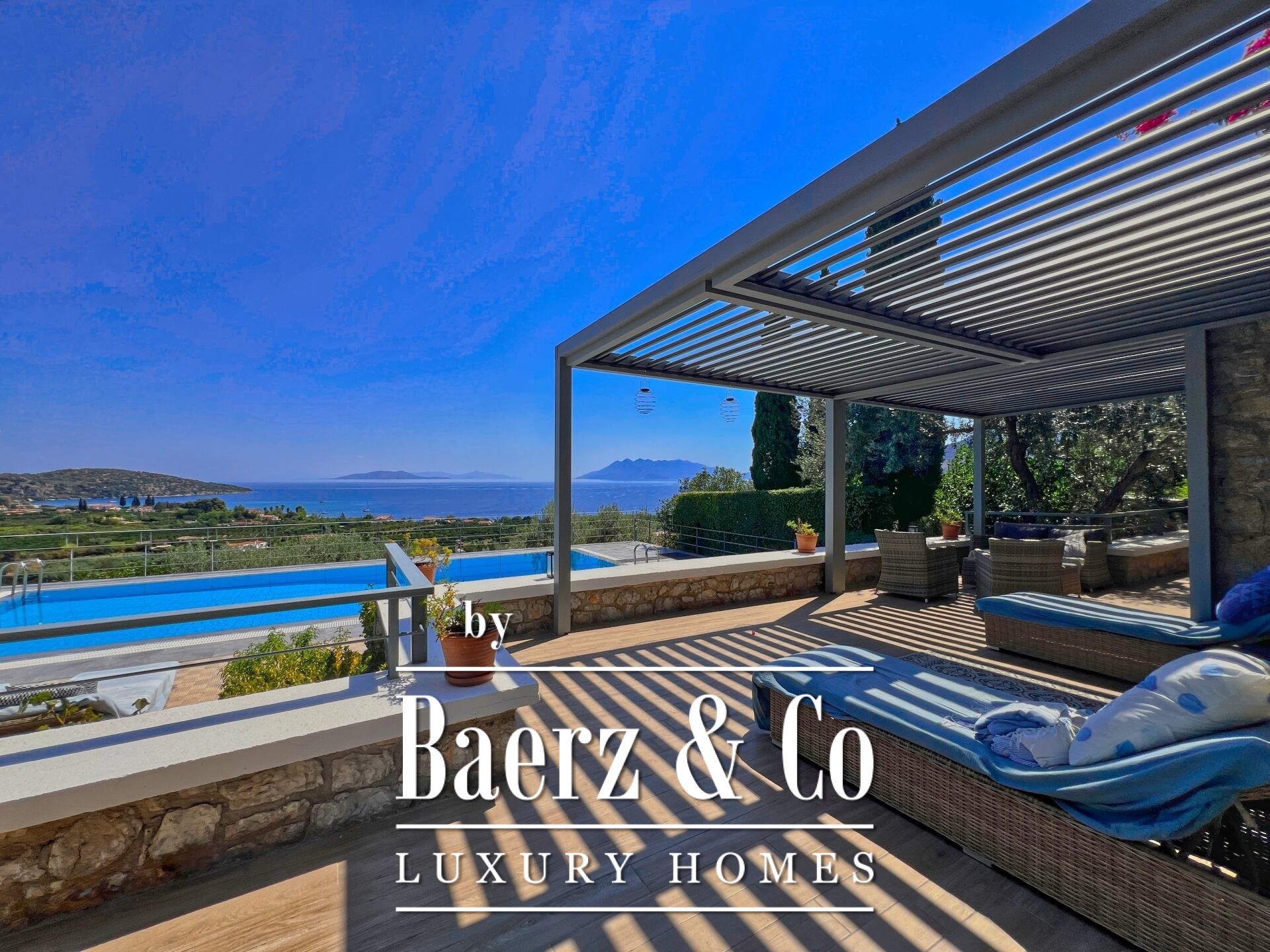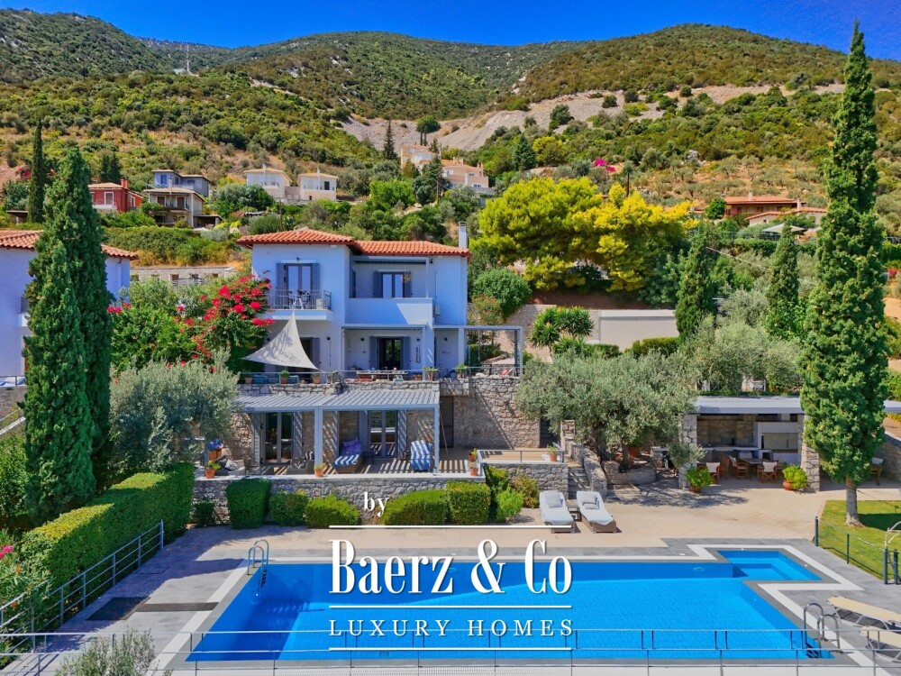 Detached house Archaia Epidavros presents a refined balance of timeless materials and contemporary design, set within a 1,500 m² privately owned garden overlooking the sea. This 198 m² residence underwent a full renovation beginning in 2018, highlighting quality of materials, bioclimatic pergolas, and smart living solutions that suit both permanent and holiday living.