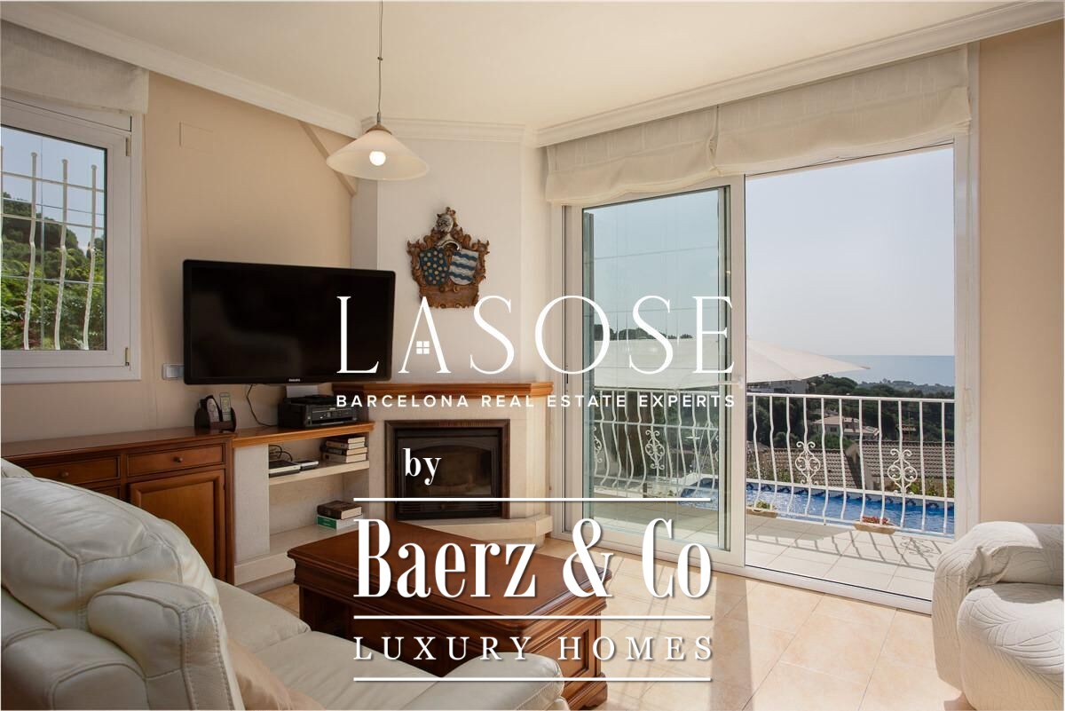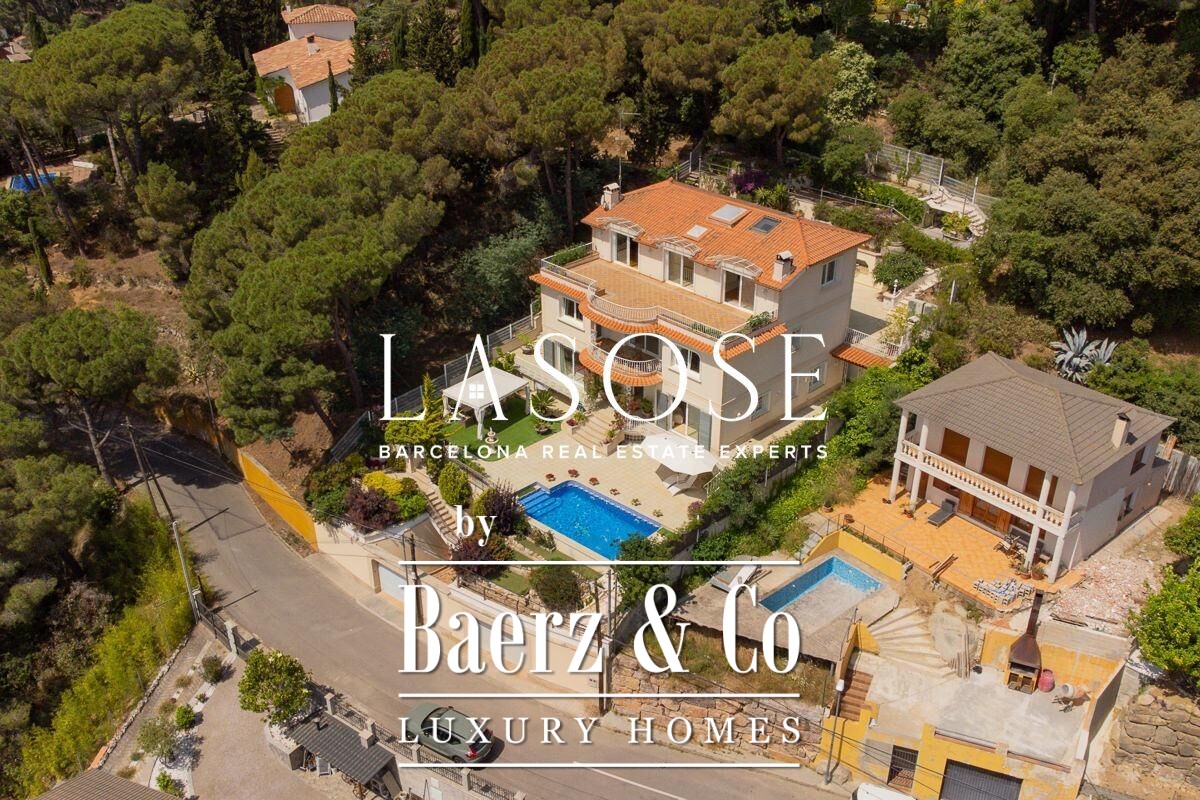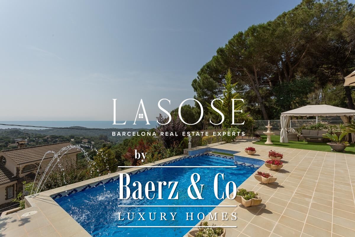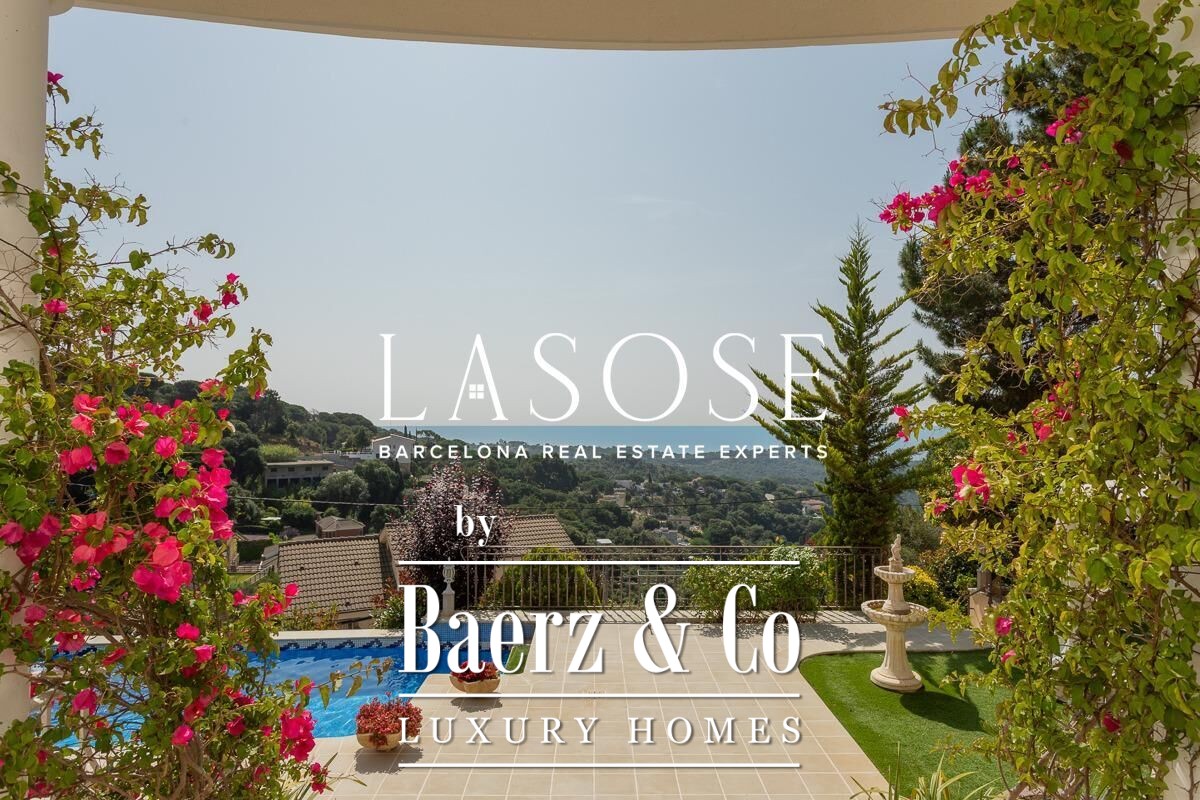 The home’s amenities are considered and complete: air conditioning, ducted heating and radiators, aluminum electric blinds, and a five-car garage. Outdoor spaces include a pool with pergola, barbecue, and garden, all oriented to maximize sea views and natural light. Located minutes from the beaches and vibrant marina of Arenys de Mar, with Barcelona accessible in forty minutes, this villa places quality of life and discretion at the forefront.
