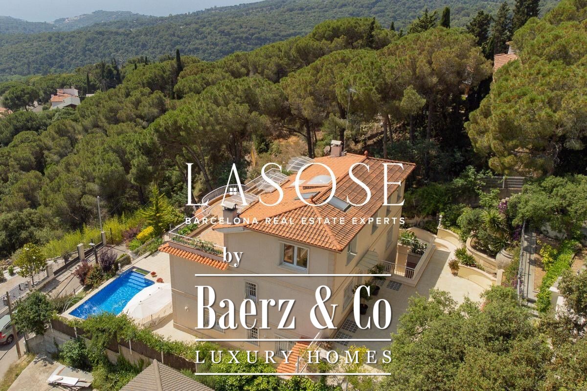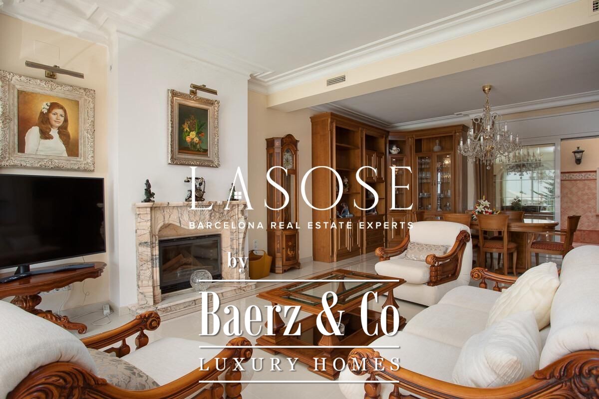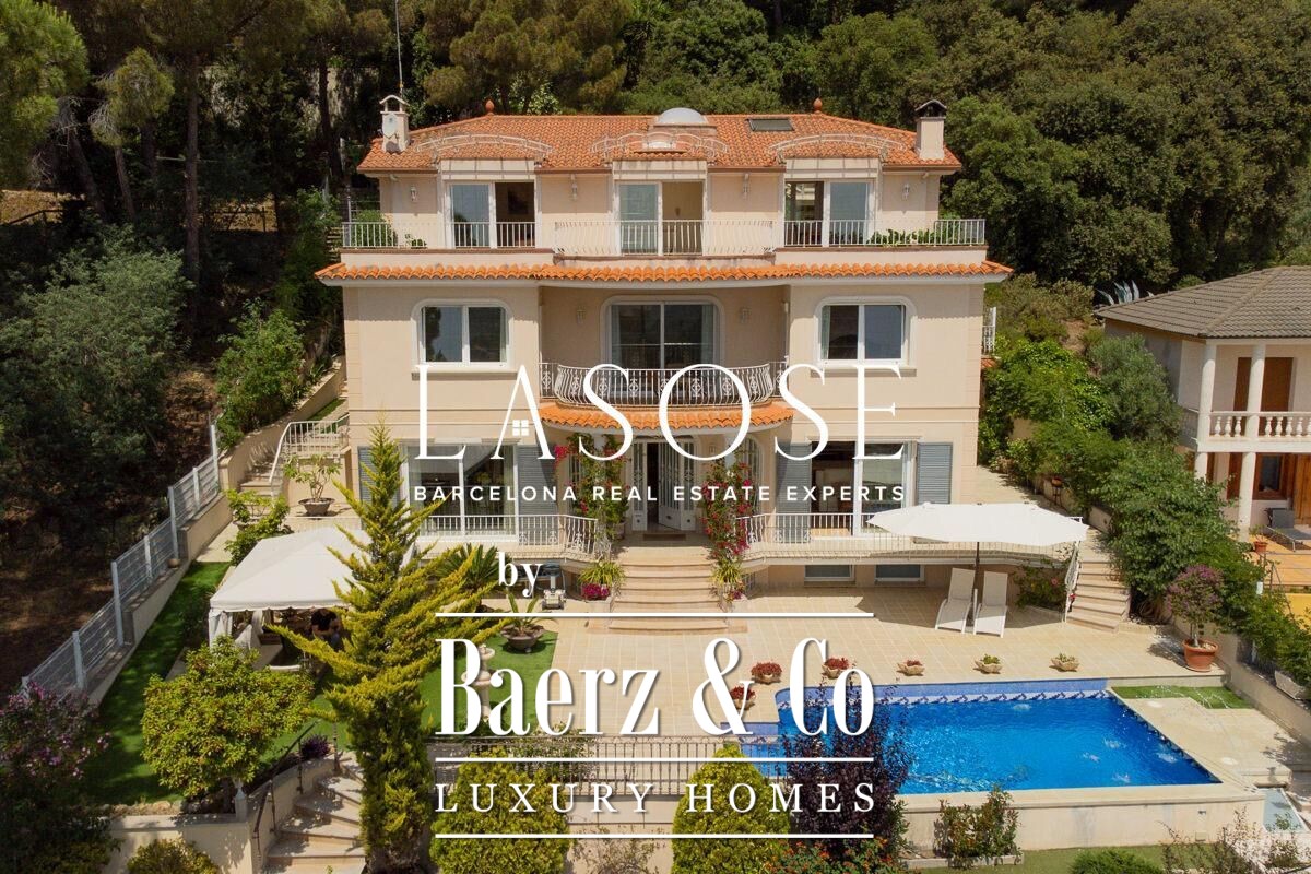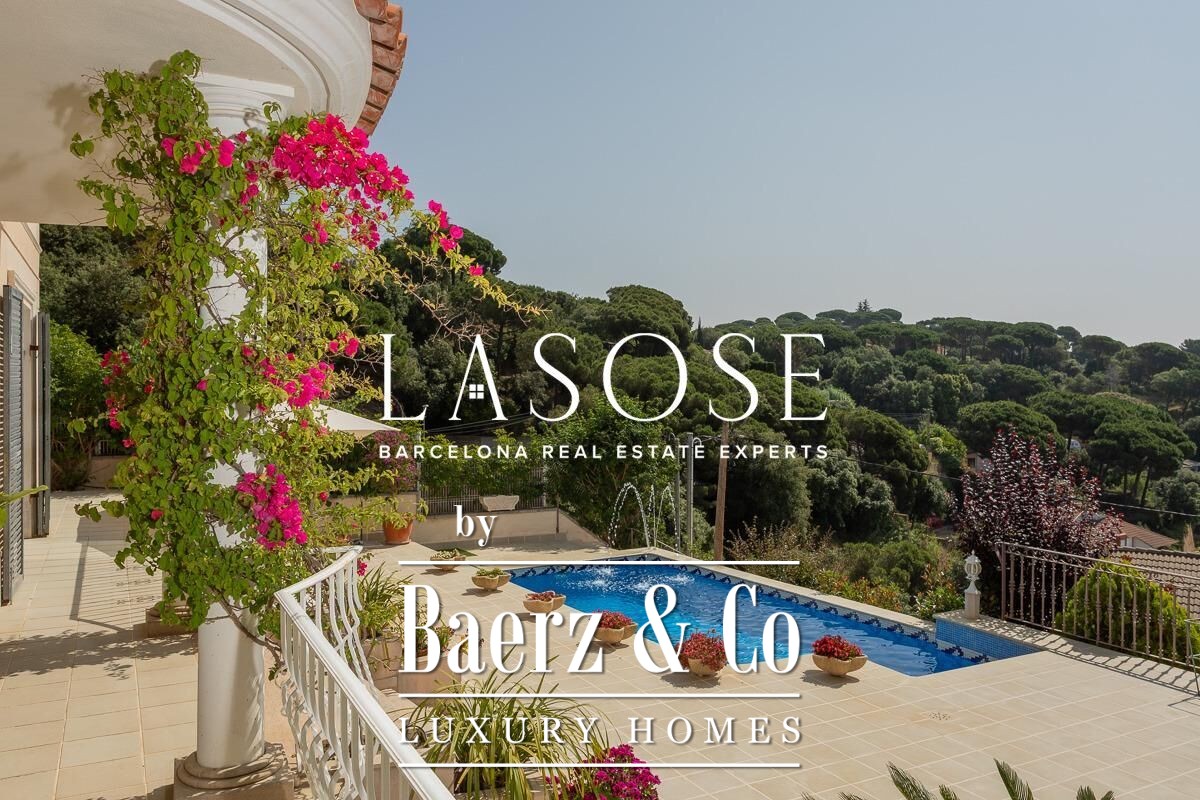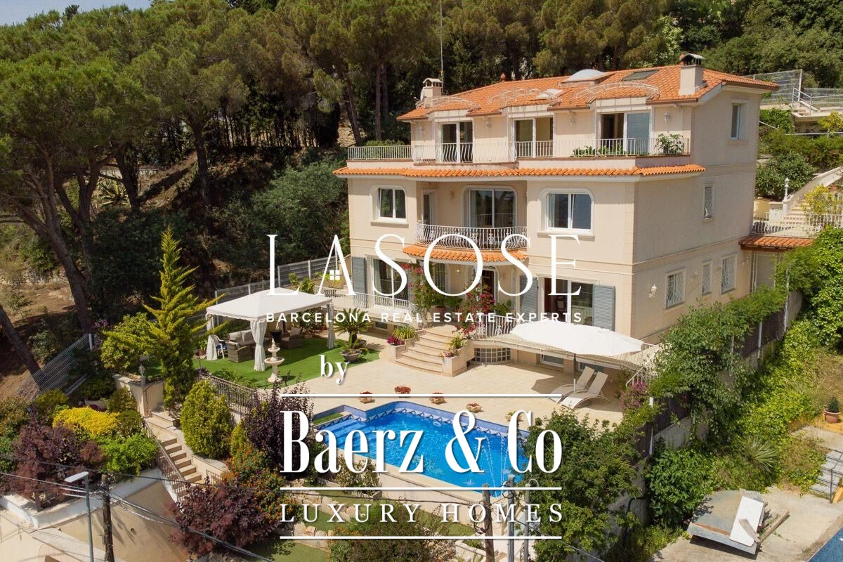Spread across four elevator-connected levels, the villa’s architecture is measured, light-filled, and designed for effortless indoor-outdoor flow. The living areas are anchored by elegant marble floors and a fireplace, opening to generous terraces and a level garden, all framing exceptional views that reach the Barcelona skyline on clear days. Five bedrooms and five bathrooms allow for private retreat, while two fully equipped kitchens enhance flexibility. The private library, large pantry, and dedicated storage spaces add utility without sacrificing poise.