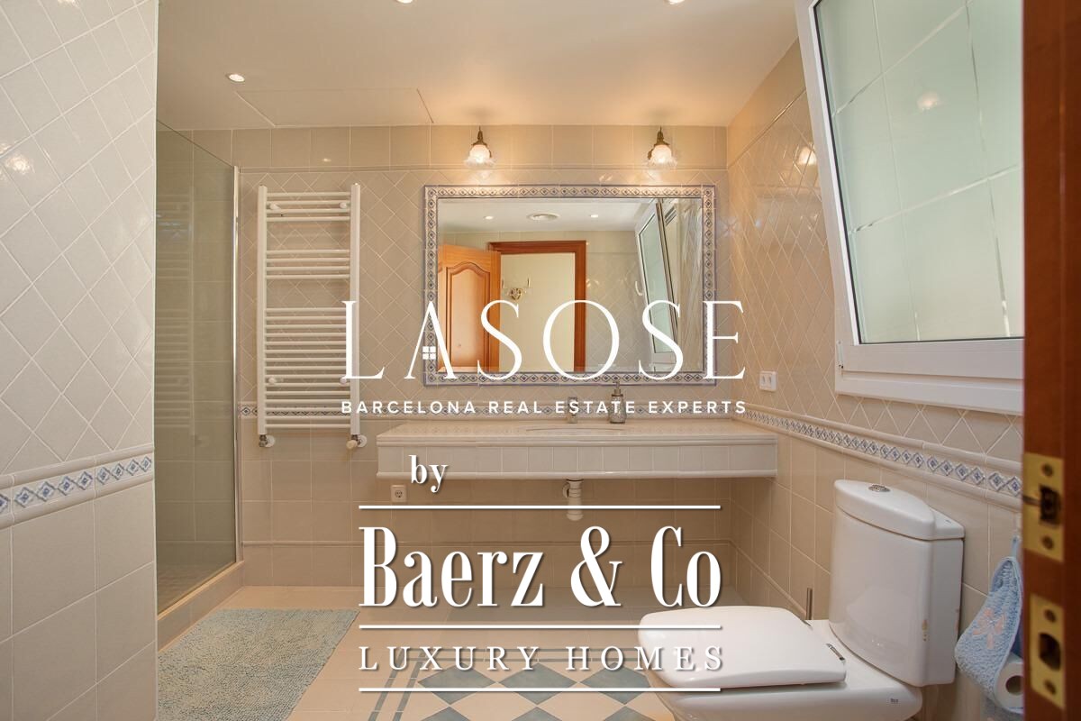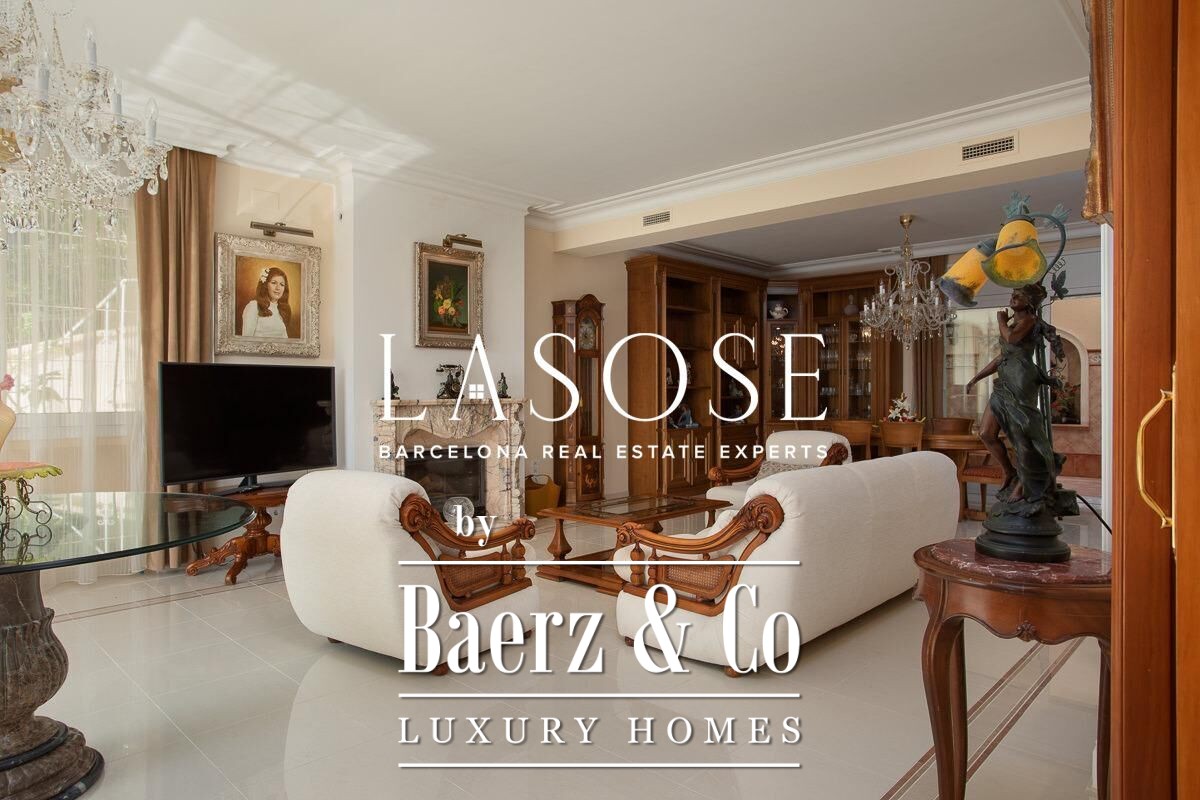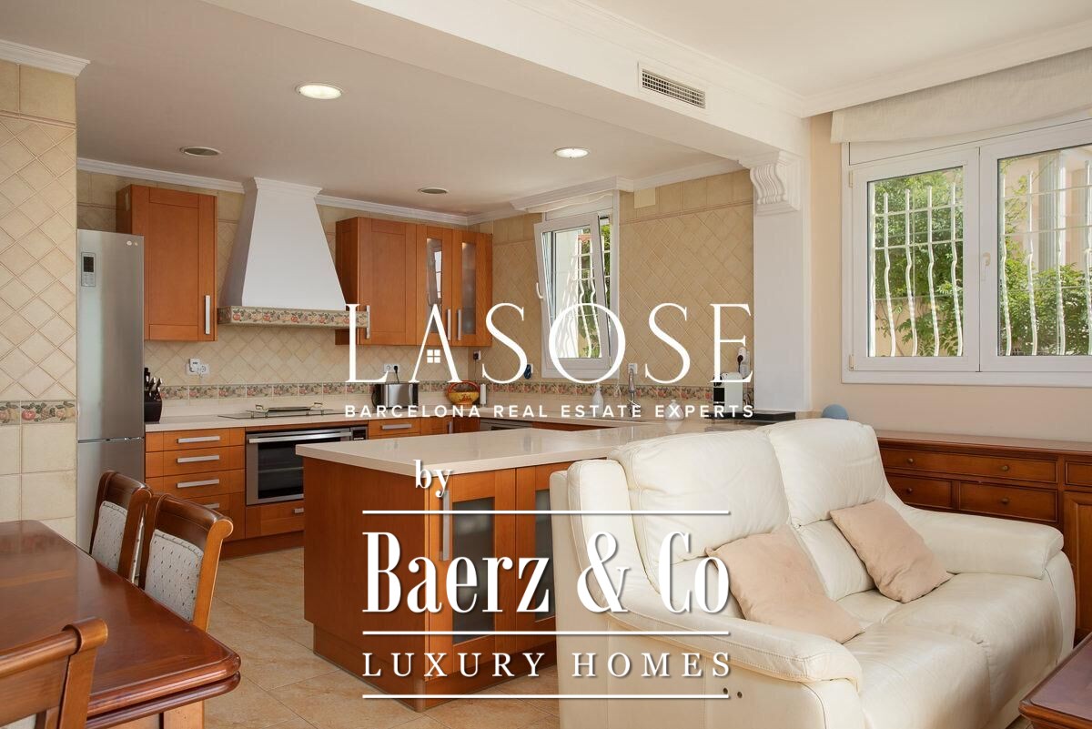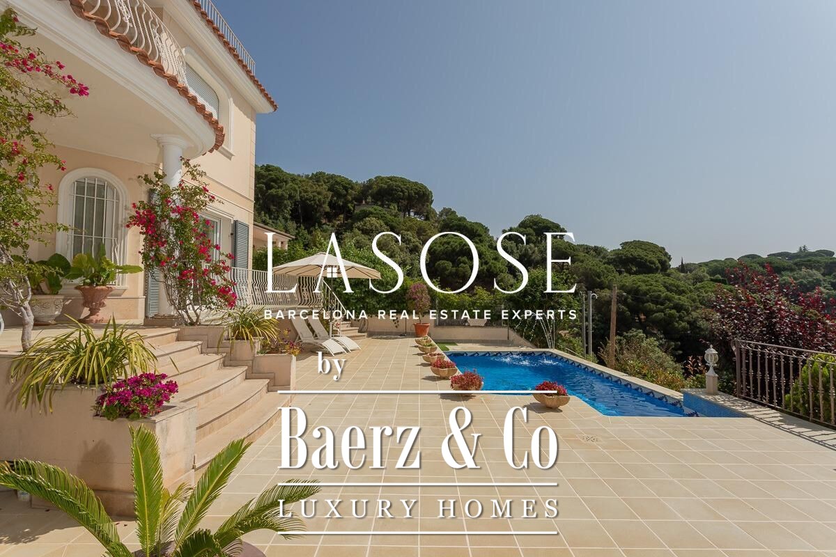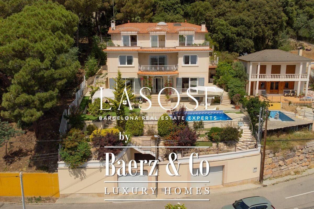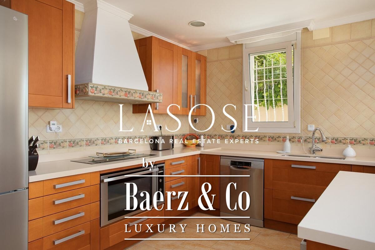 Spread across four elevator-connected levels, the villa’s architecture is measured, light-filled, and designed for effortless indoor-outdoor flow. The living areas are anchored by elegant marble floors and a fireplace, opening to generous terraces and a level garden, all framing exceptional views that reach the Barcelona skyline on clear days. Five bedrooms and five bathrooms allow for private retreat, while two fully equipped kitchens enhance flexibility. The private library, large pantry, and dedicated storage spaces add utility without sacrificing poise.