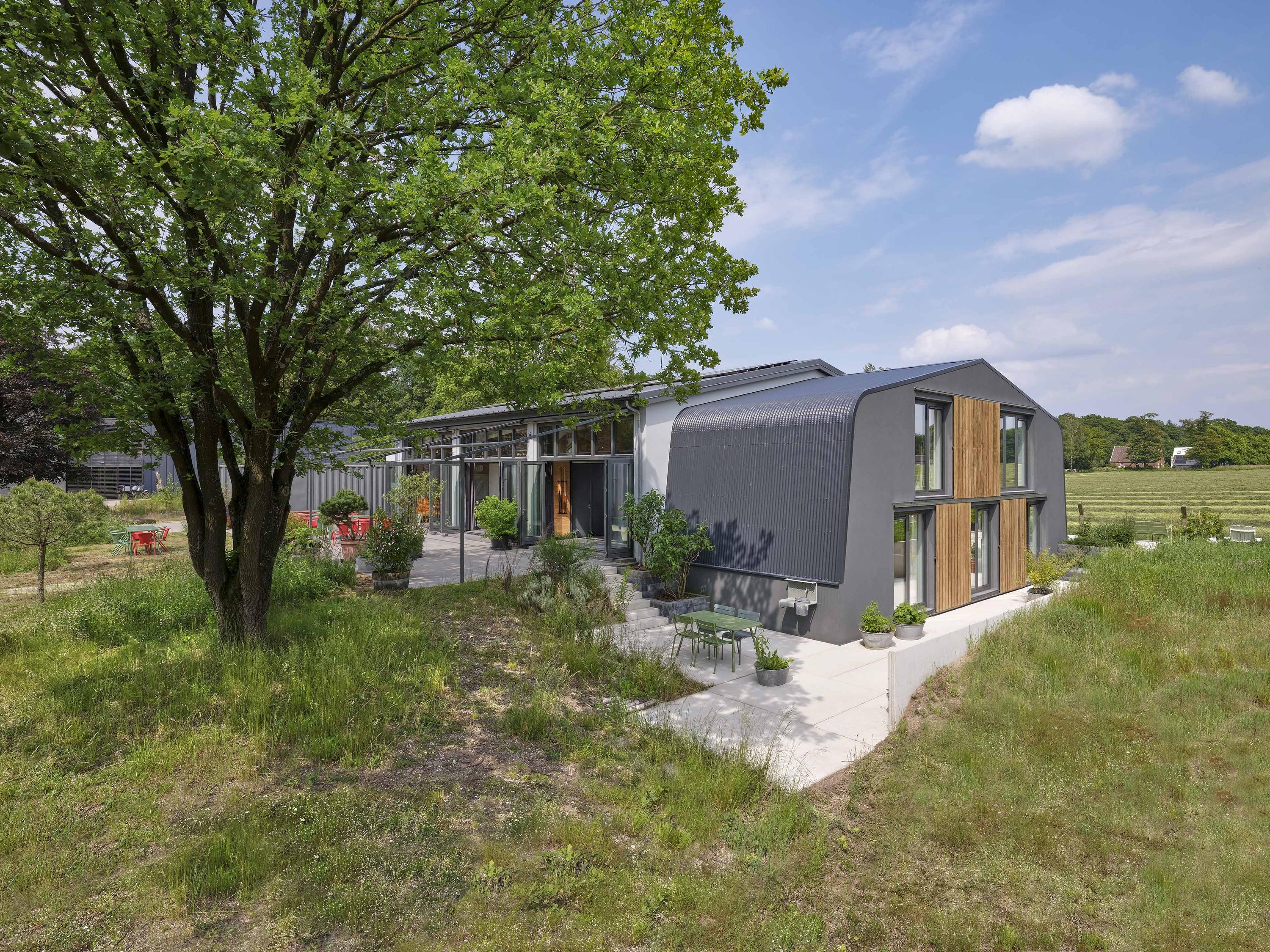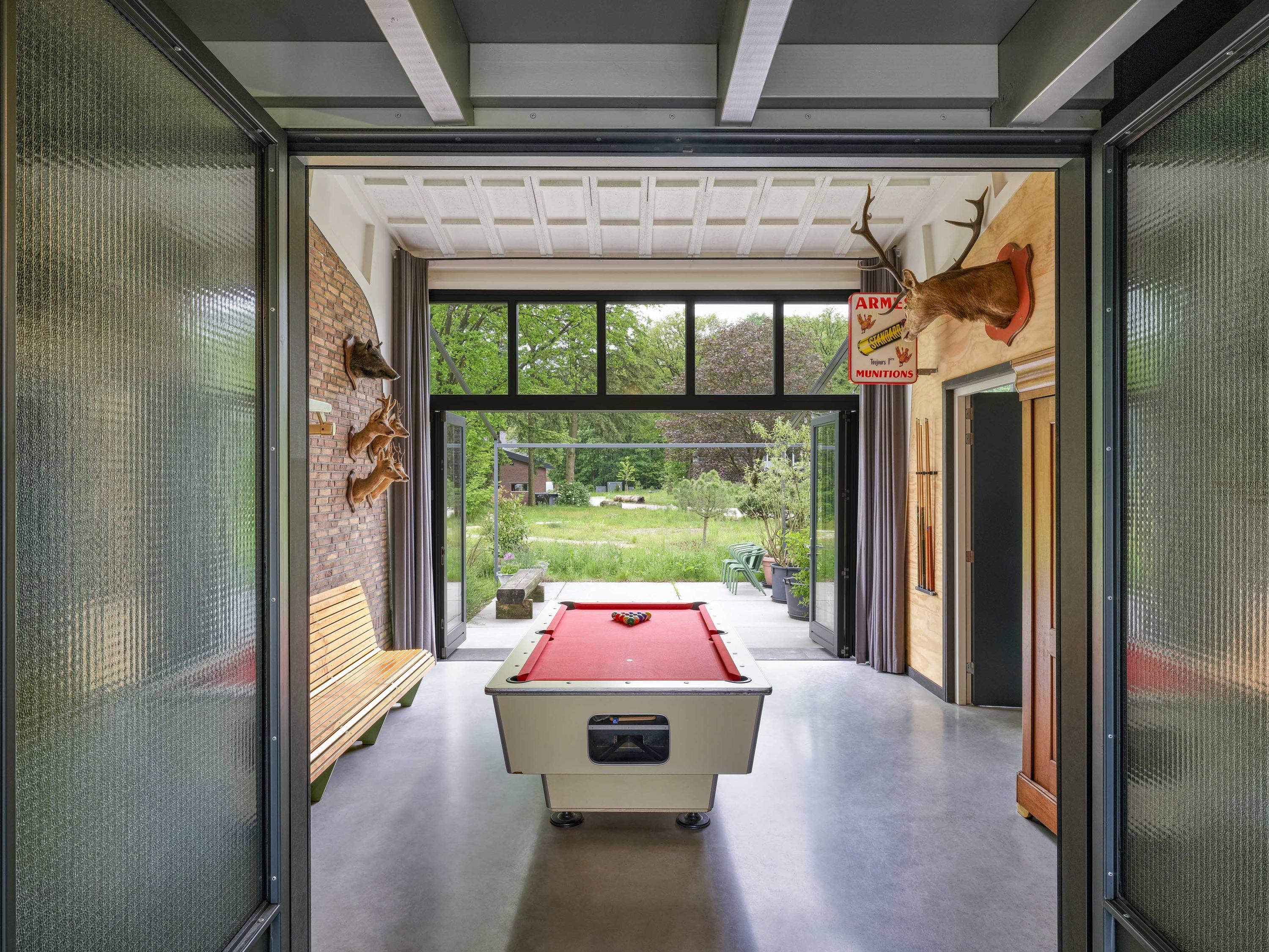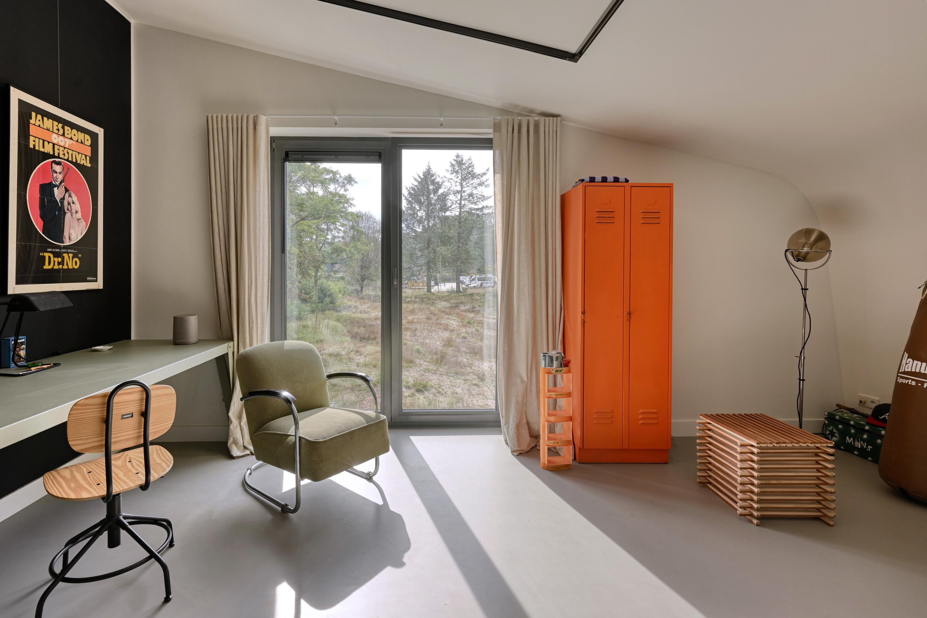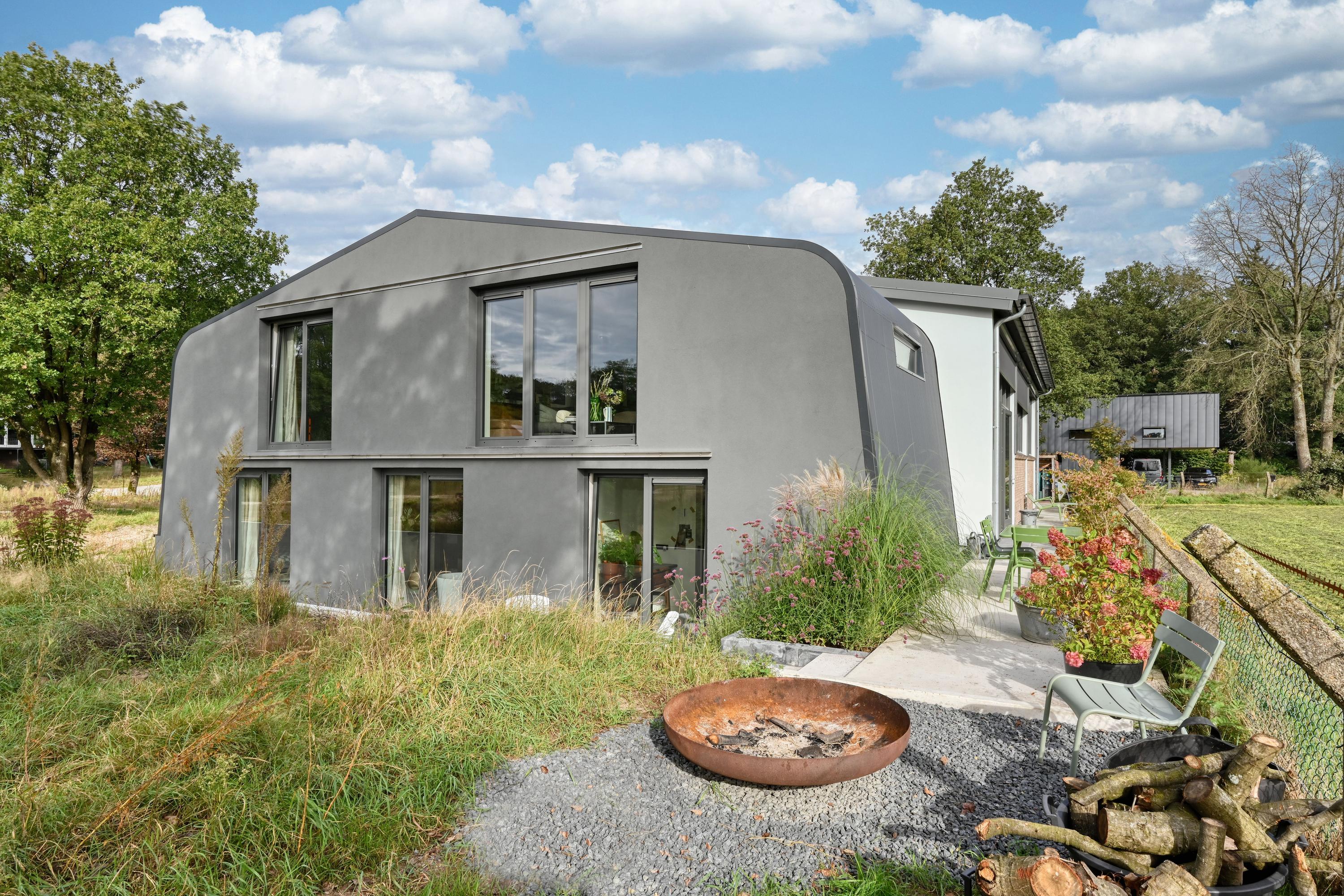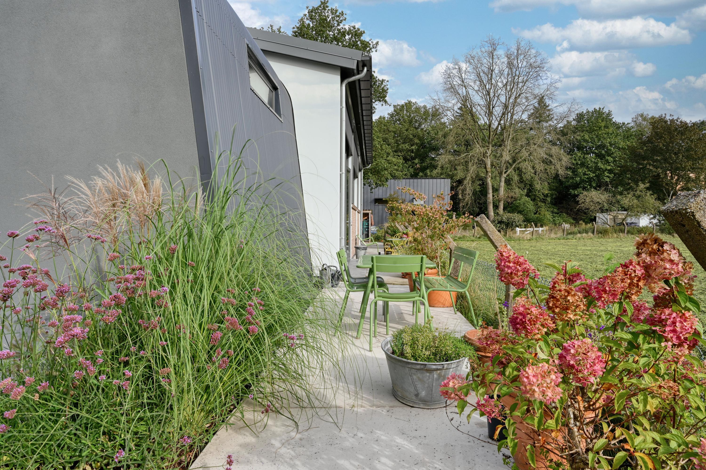 Industrial home with business space Arnhem offers an exceptional opportunity to live and work immersed in nature, only minutes from the vibrant city center. This remarkable property seamlessly fuses a modern living environment with an expansive business space, set against protected woodlands and fields. The original military hangar, now fully renovated in 2021, features a striking contemporary residence with 439 m² of living area on a plot of 774 m², meeting the highest standards of sustainability with energy class A+++.