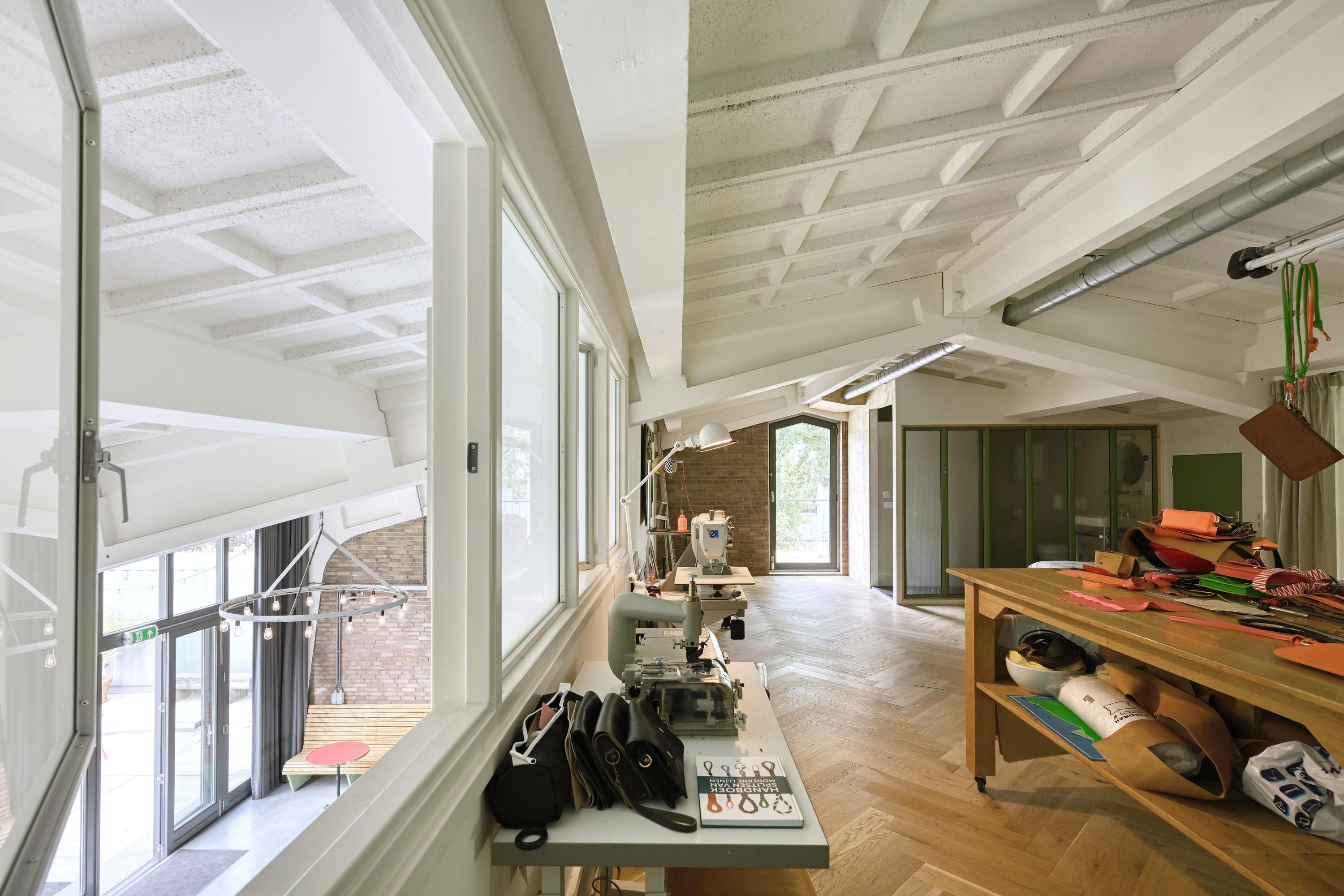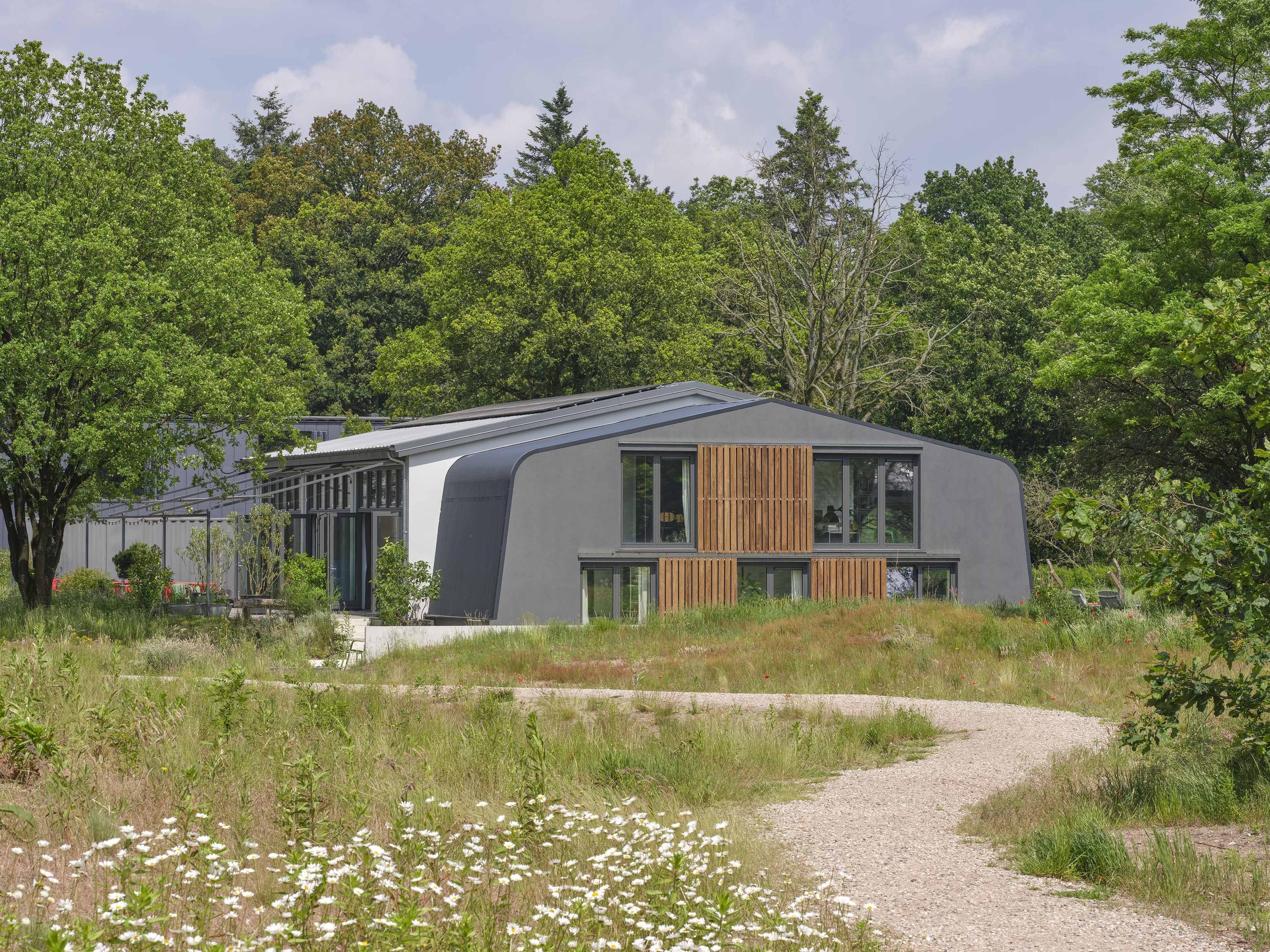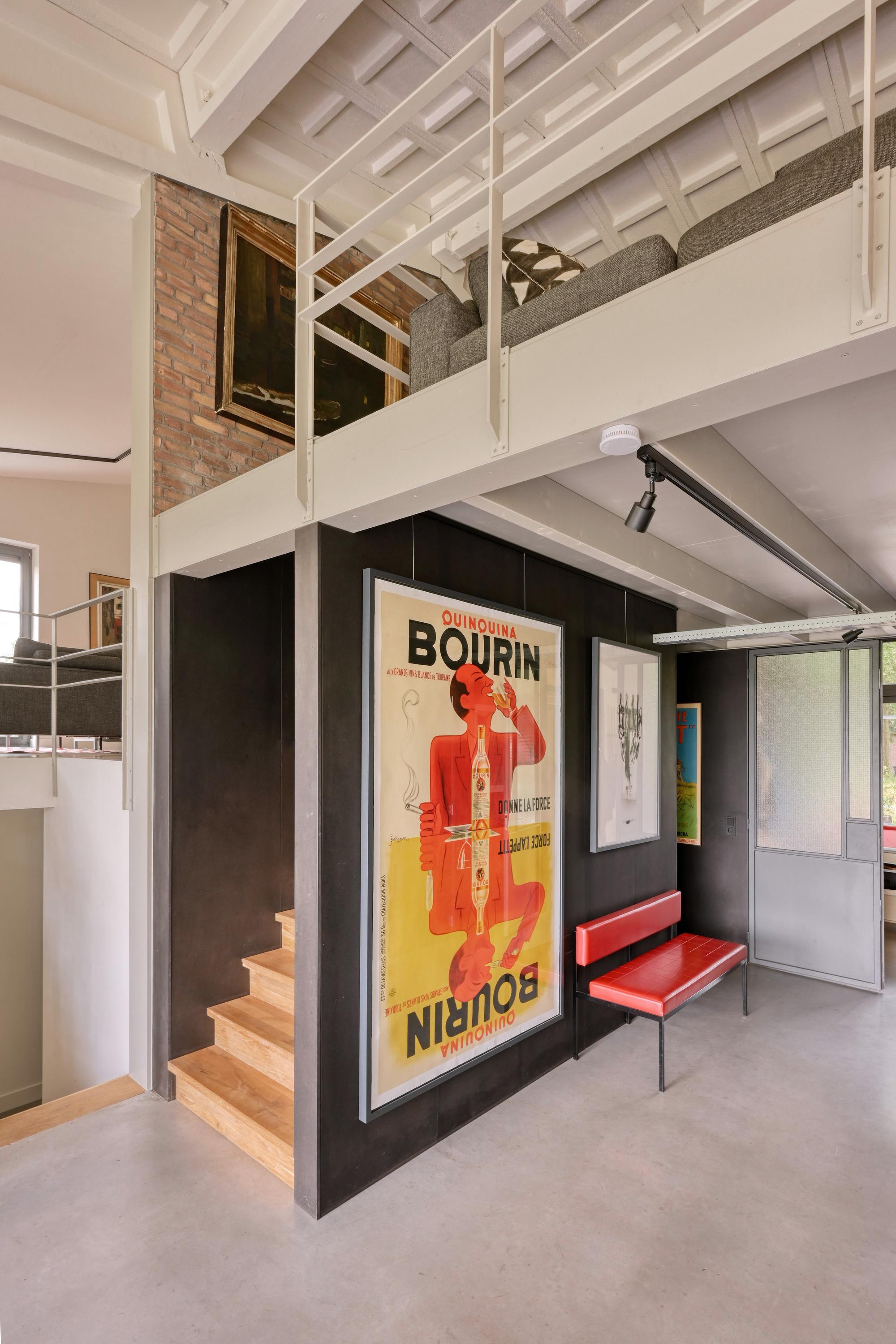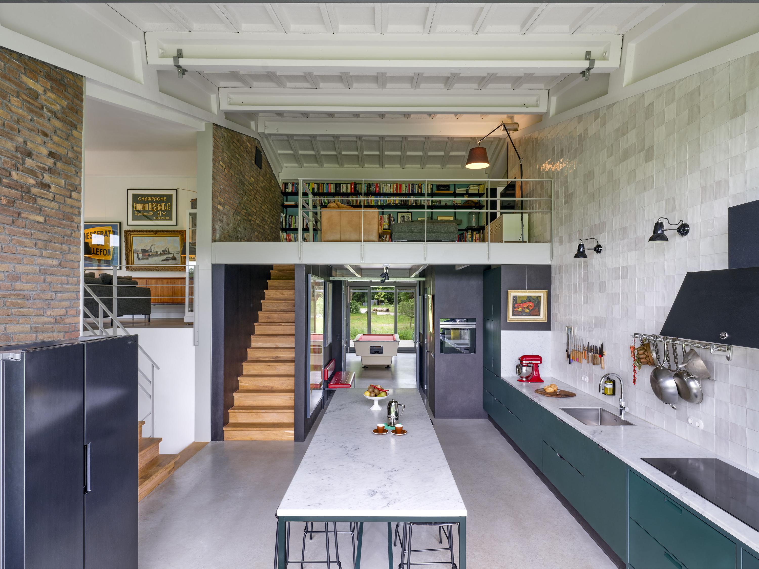 Industrial home with business space Arnhem offers an exceptional opportunity to live and work immersed in nature, only minutes from the vibrant city center. This remarkable property seamlessly fuses a modern living environment with an expansive business space, set against protected woodlands and fields. The original military hangar, now fully renovated in 2021, features a striking contemporary residence with 439 m² of living area on a plot of 774 m², meeting the highest standards of sustainability with energy class A+++.