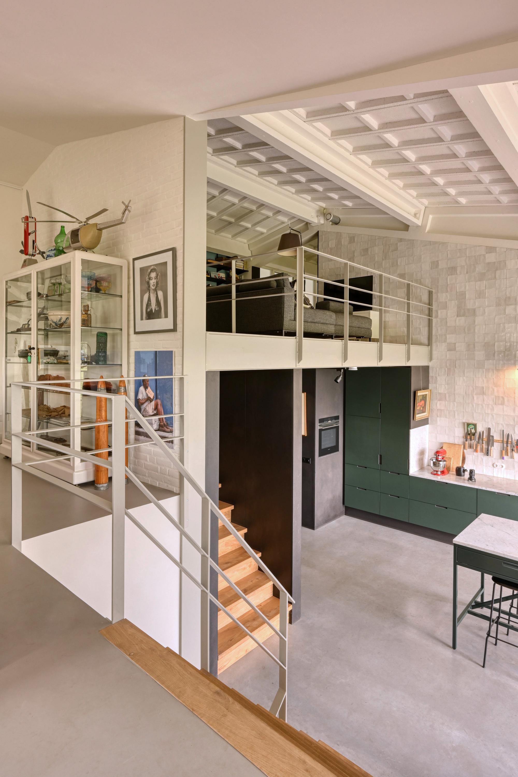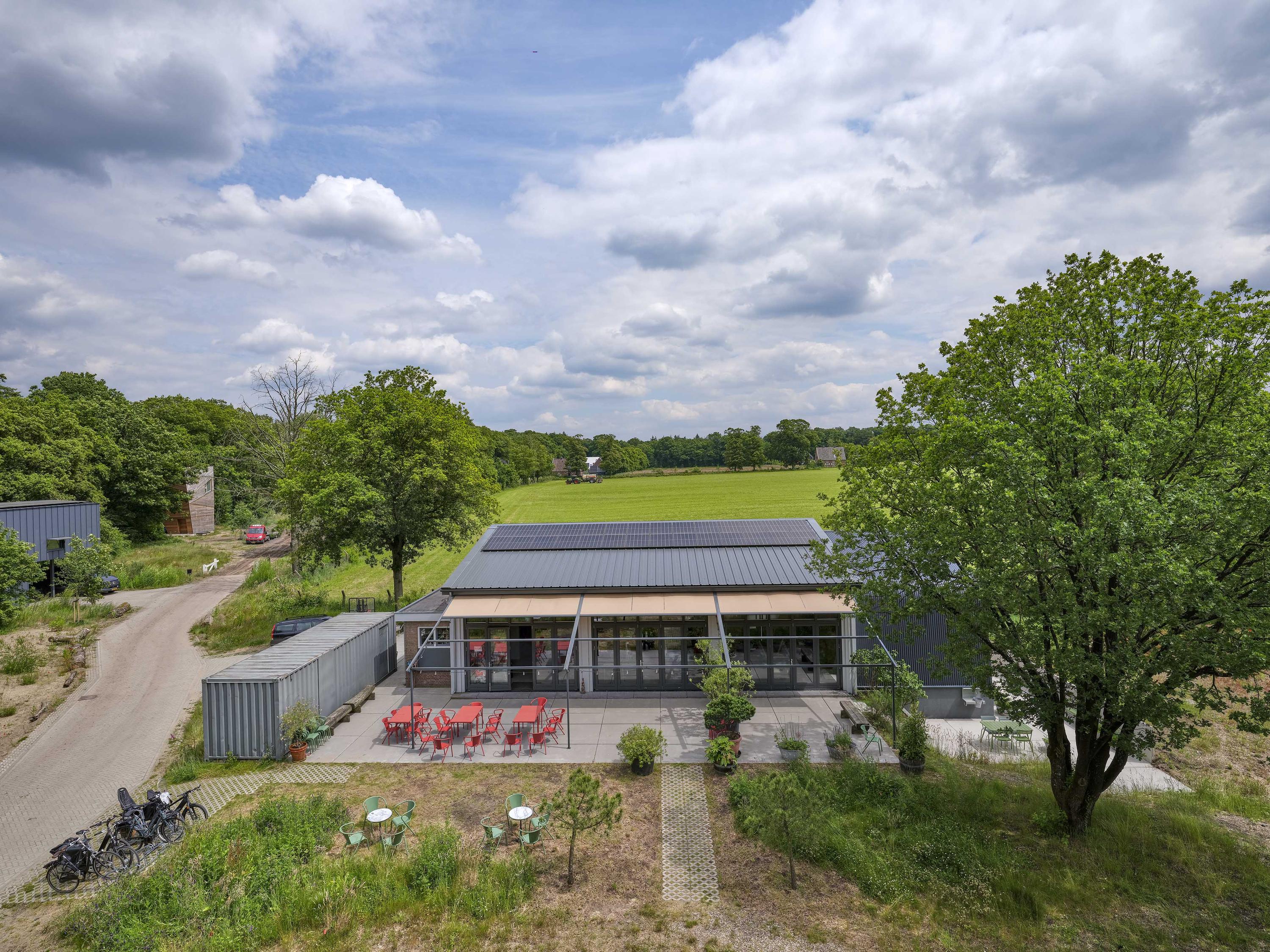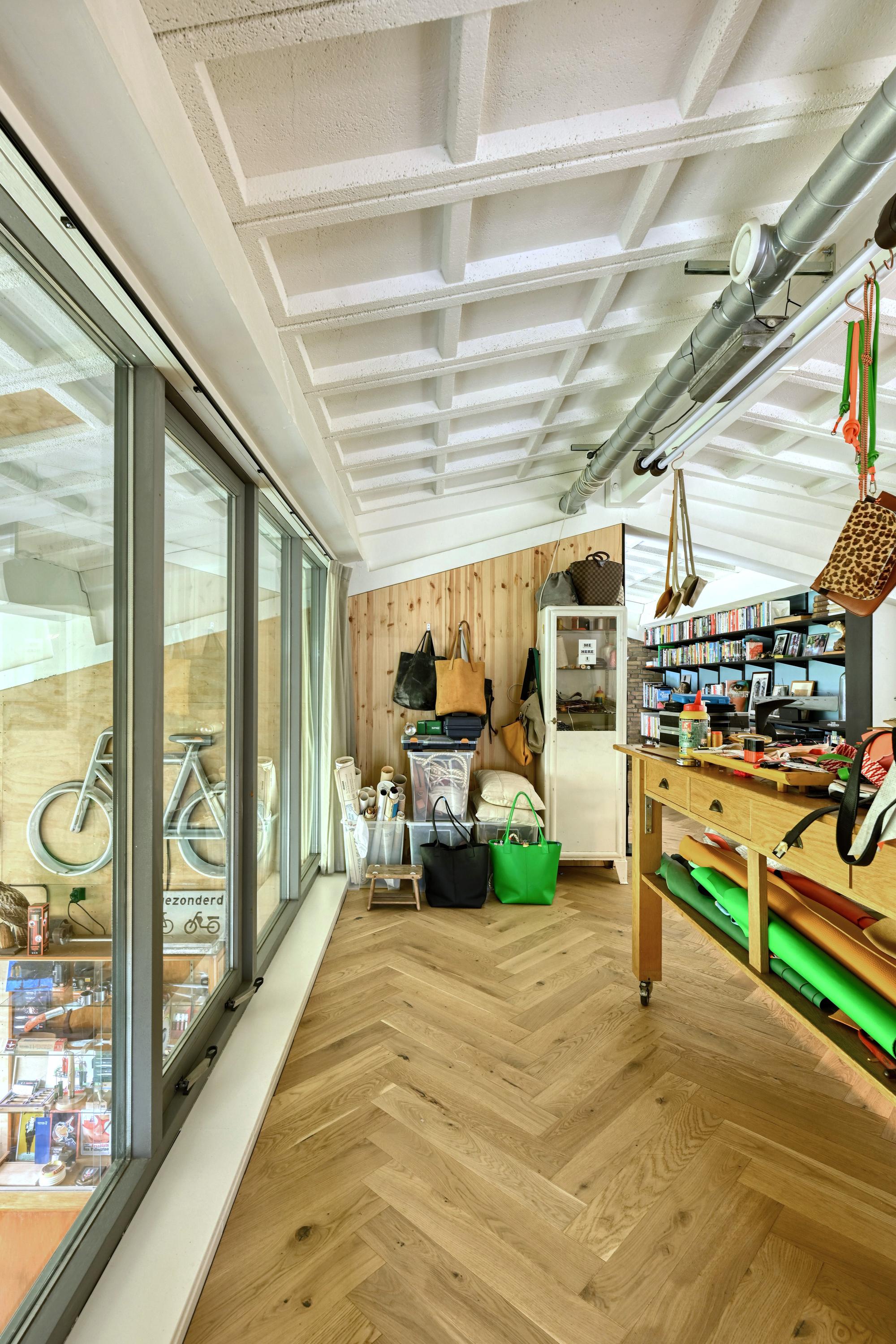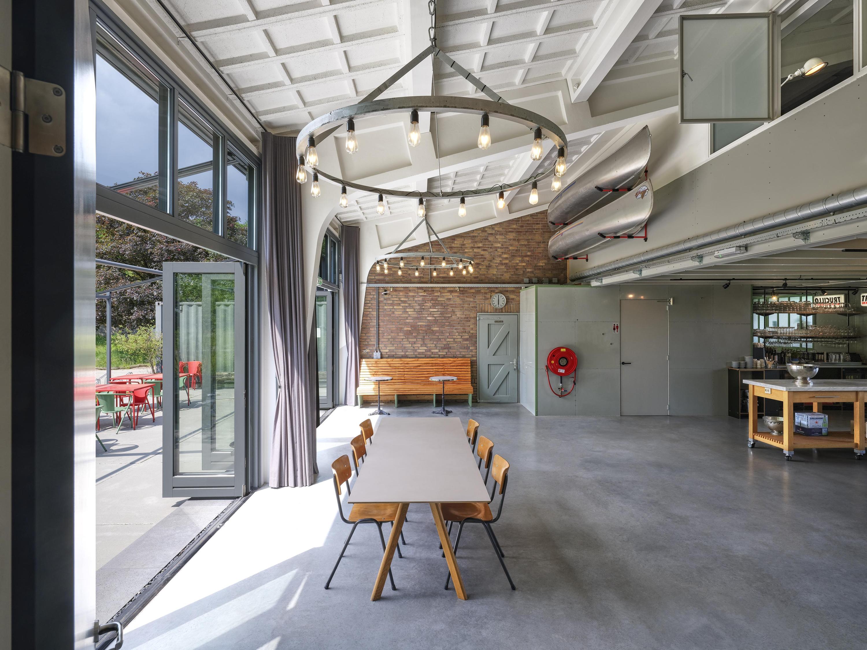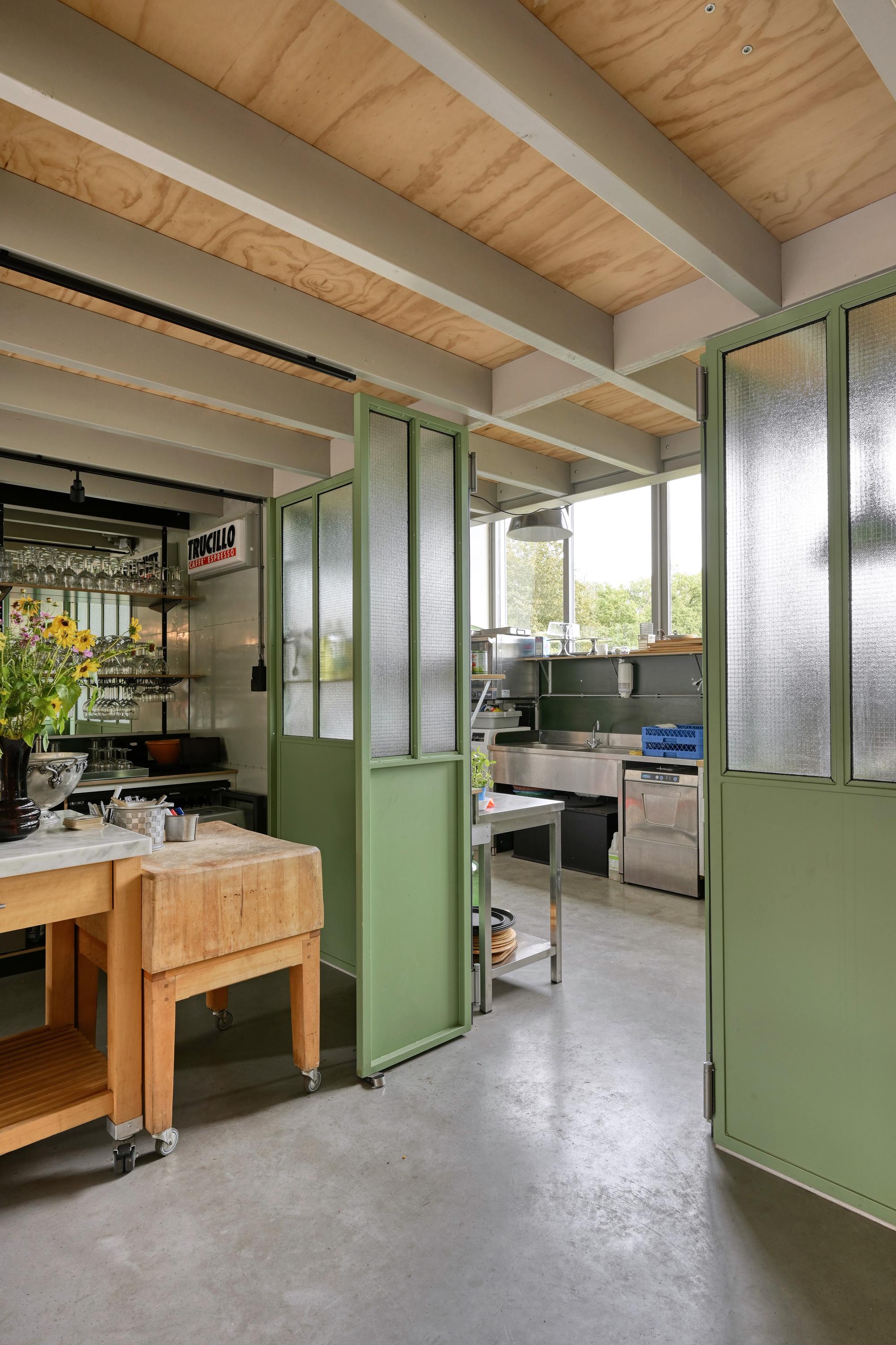 Industrial home with business space Arnhem offers an exceptional opportunity to live and work immersed in nature, only minutes from the vibrant city center. This remarkable property seamlessly fuses a modern living environment with an expansive business space, set against protected woodlands and fields. The original military hangar, now fully renovated in 2021, features a striking contemporary residence with 439 m² of living area on a plot of 774 m², meeting the highest standards of sustainability with energy class A+++.