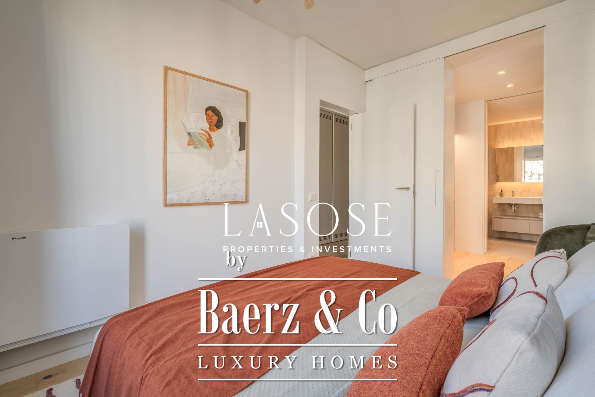 Finishes by Estudio Vilablanch set a restrained, elegant tone, merging modern appliances and technology with signature design. The interior living spaces flow with thoughtful functionality, including fitted wardrobes, appliances, and a dedicated washing room, alongside features such as heating, video intercom, and elevator access.