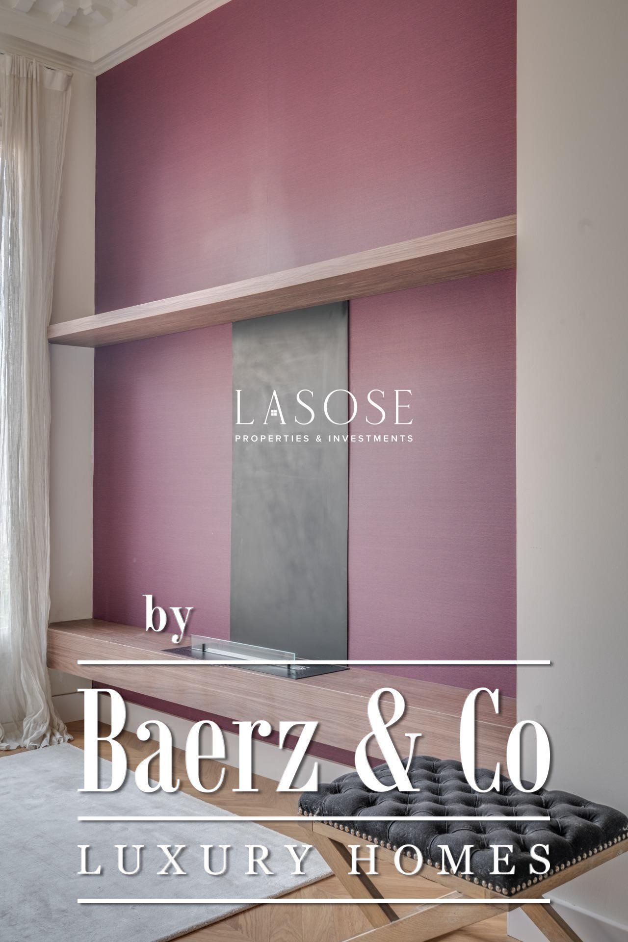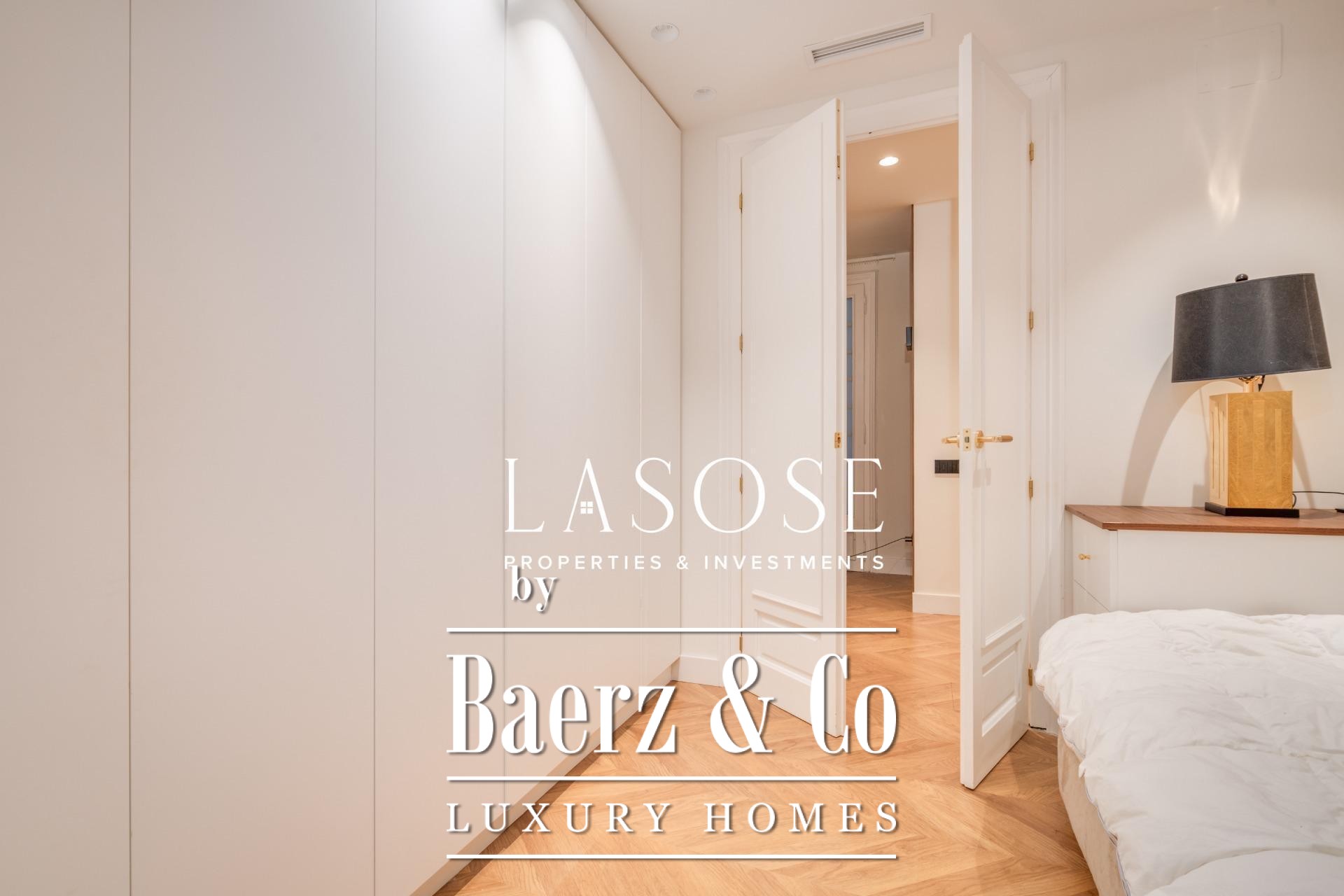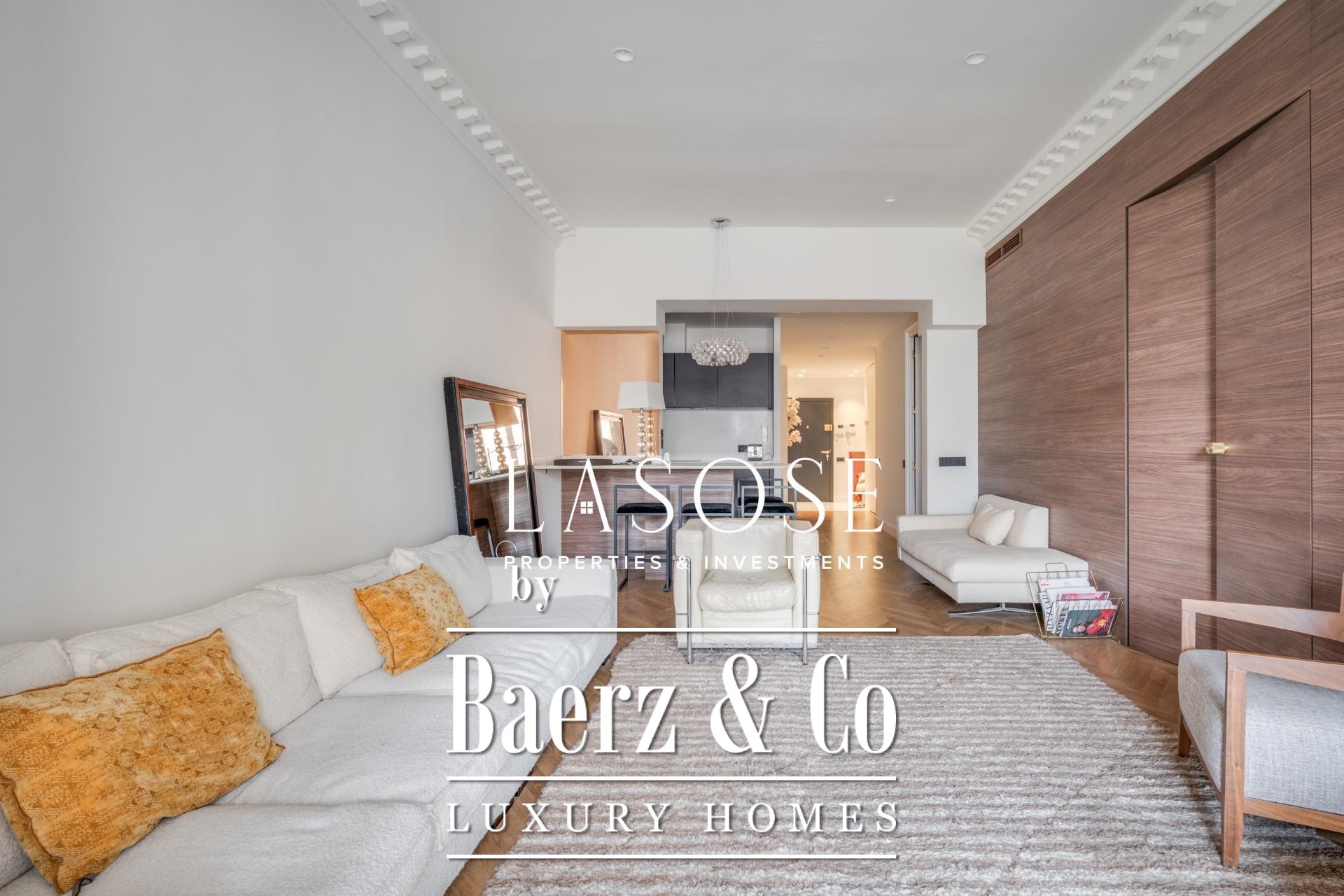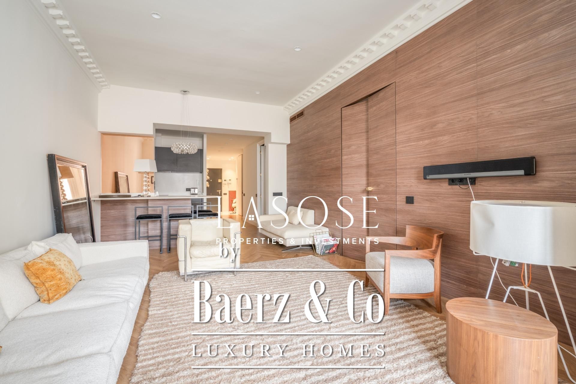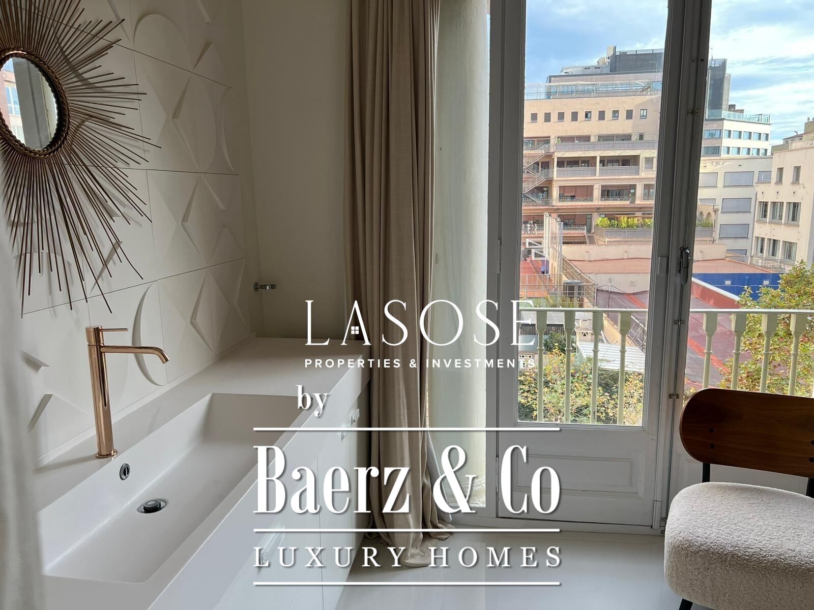 LASOSE presents this stunning apartment in one of the most emblematic street of Barcelona, Paseo de Gracia. This property has been recently renovated with luxury qualities that provide comfort and a modern lifestyle. Located on a real third floor of a royal estate designed by renowned architect Josep Puig & Cadafalch, this apartment is situated across the street from the iconic Casa Batllo and Casa Amatller buildings.. . Upon entering this wonderful property, we are greeted by a cozy entrance that leads to a first single bedroom with fitted closets and a full bathroom. Opposite, we find a spacious double bedroom. Next we pass through the kitchen open to the living room. It is fully equipped with high-end appliances, has an elegant bar, ideal for enjoying special moments.. . The spacious living room is divided by a fantastic gallery providing daylight thanks to the large original windows restored with double glazing. As a finale to this fabulous apartment, we find the master suite with dressing room, overlooking the Tuscan style courtyard and a full bathroom with shower.. . Equipped with underfloor heating by aerothermal, air conditioning by conducts, gas fireplace, this apartment is delivered fully furnished. In