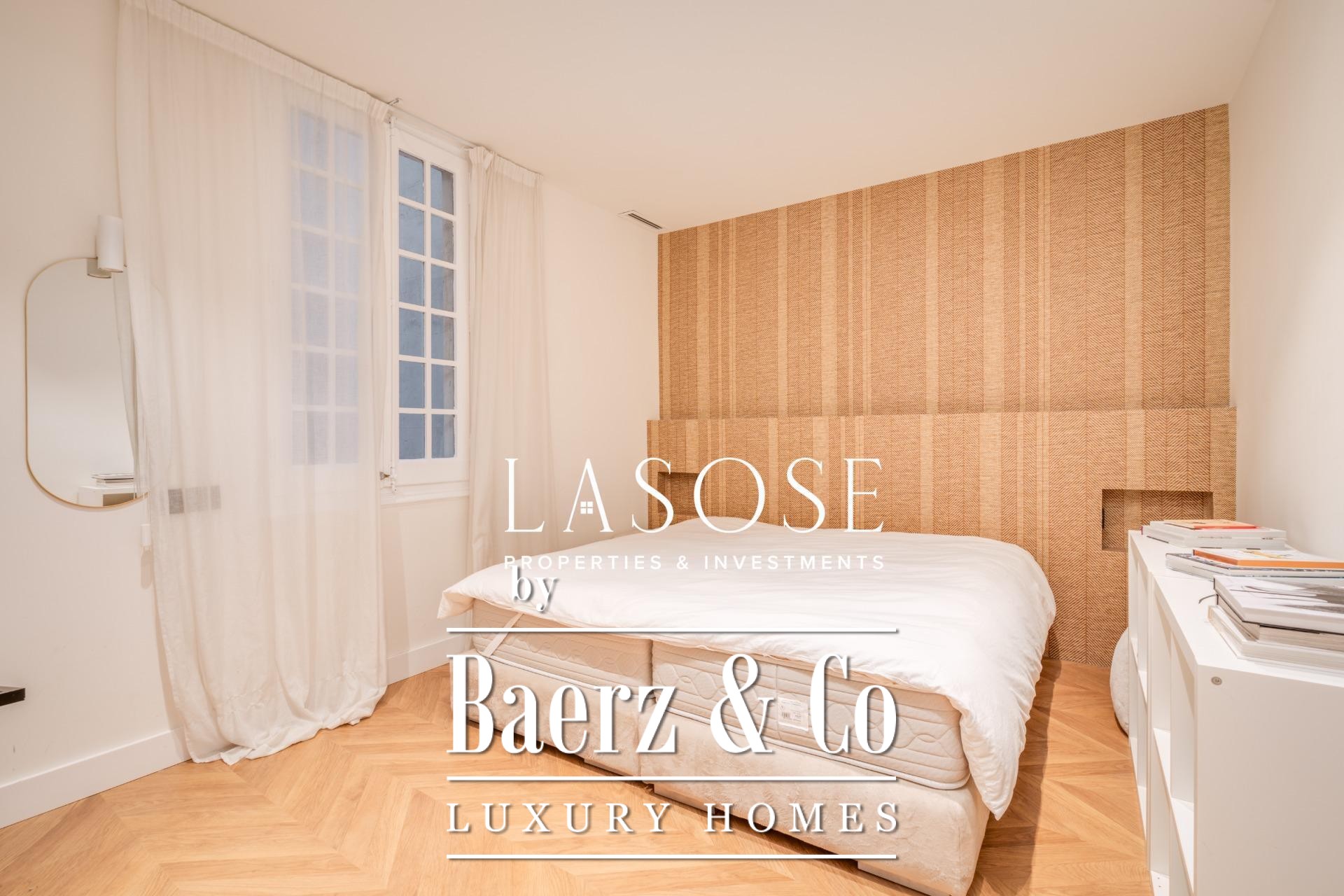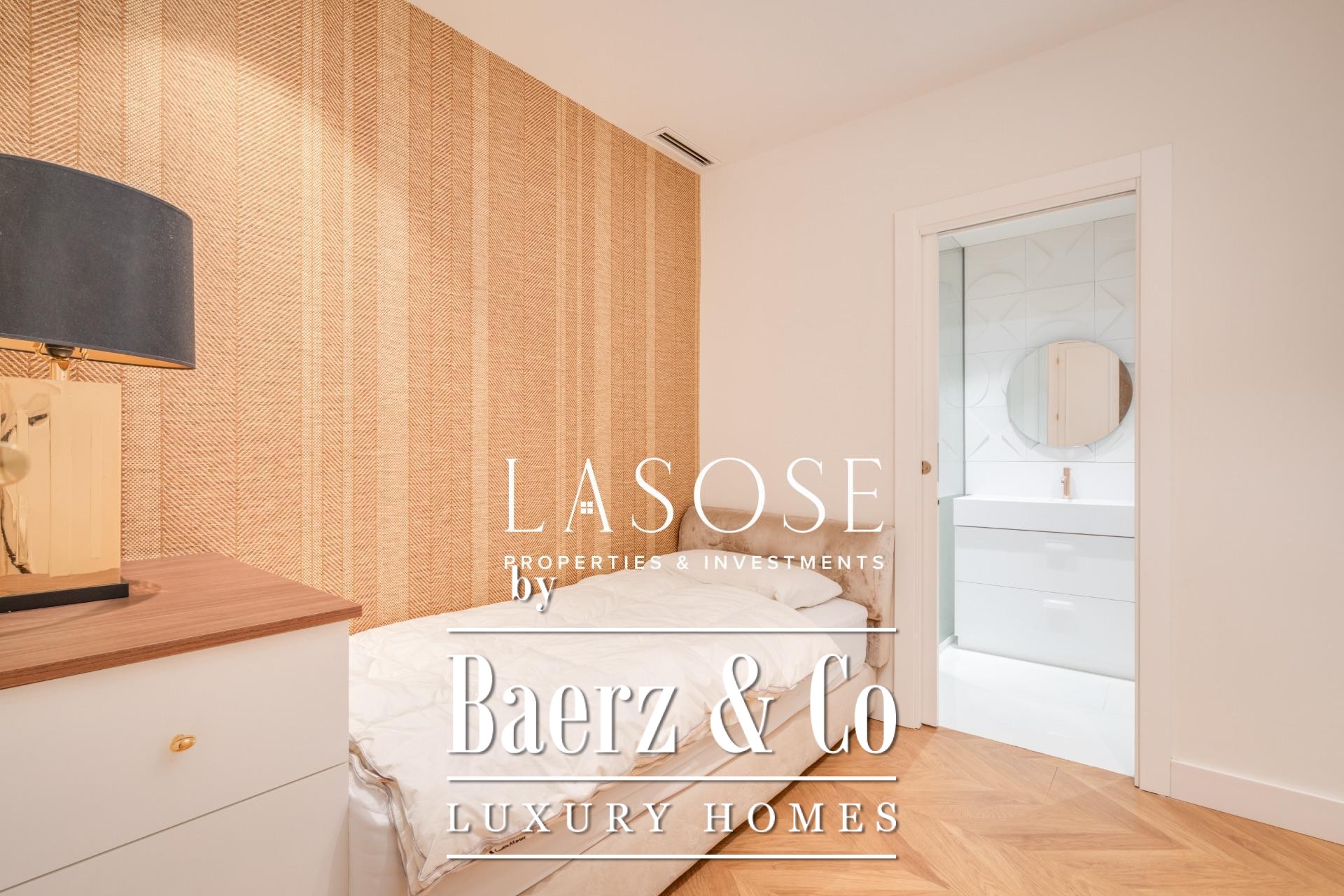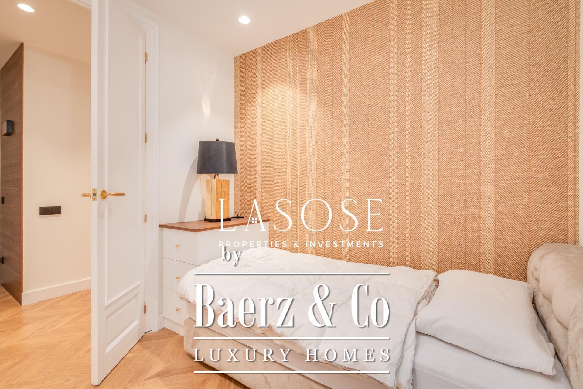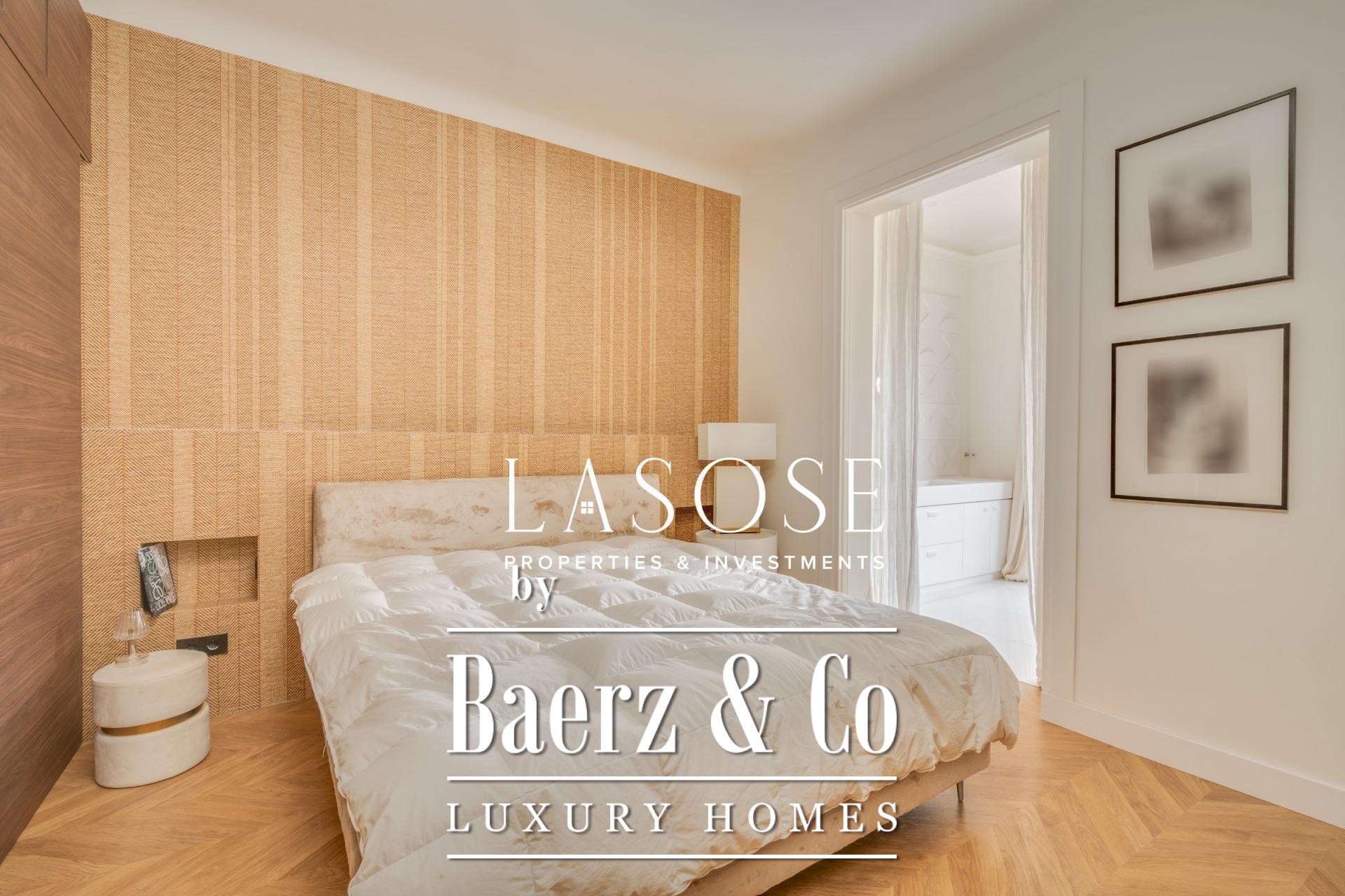 LASOSE presents this stunning apartment in one of the most emblematic street of Barcelona, Paseo de Gracia. This property has been recently renovated with luxury qualities that provide comfort and a modern lifestyle. Located on a real third floor of a royal estate designed by renowned architect Josep Puig & Cadafalch, this apartment is situated across the street from the iconic Casa Batllo and Casa Amatller buildings.. . Upon entering this wonderful property, we are greeted by a cozy entrance that leads to a first single bedroom with fitted closets and a full bathroom. Opposite, we find a spacious double bedroom. Next we pass through the kitchen open to the living room. It is fully equipped with high-end appliances, has an elegant bar, ideal for enjoying special moments.. . The spacious living room is divided by a fantastic gallery providing daylight thanks to the large original windows restored with double glazing. As a finale to this fabulous apartment, we find the master suite with dressing room, overlooking the Tuscan style courtyard and a full bathroom with shower.. . Equipped with underfloor heating by aerothermal, air conditioning by conducts, gas fireplace, this apartment is delivered fully furnished. In