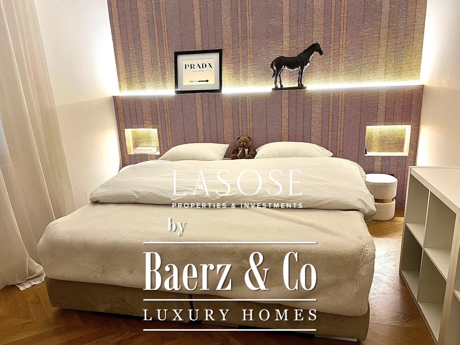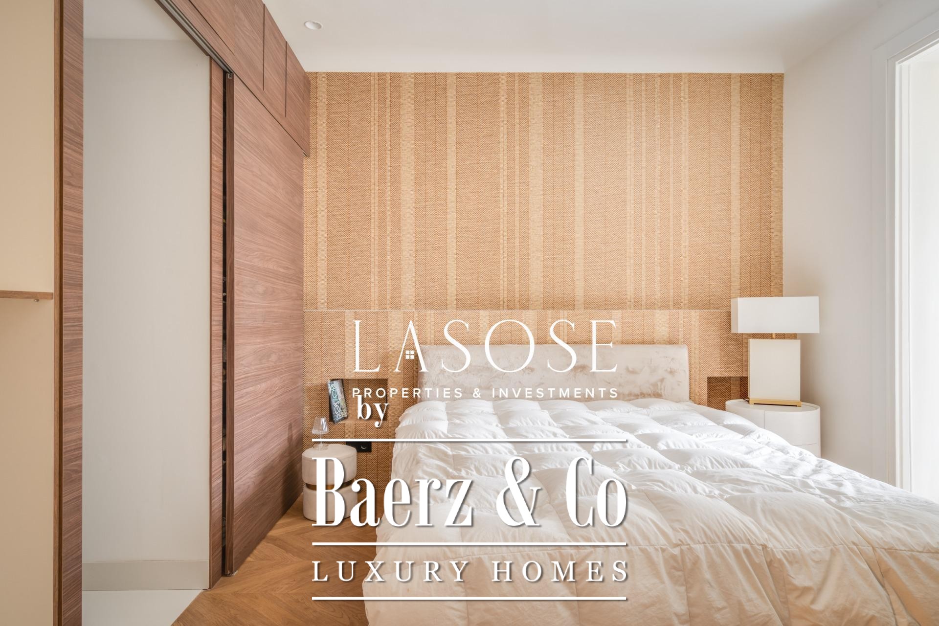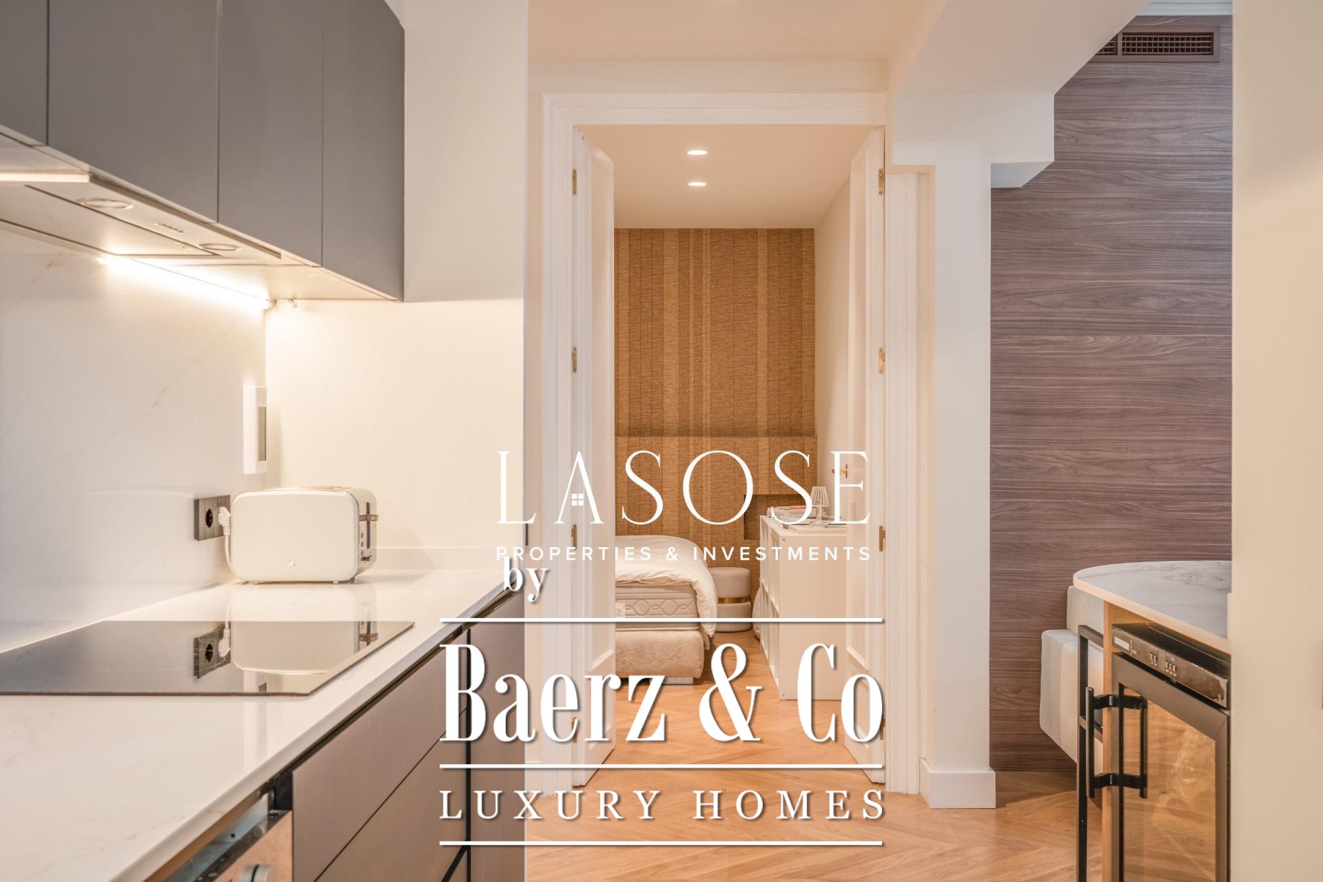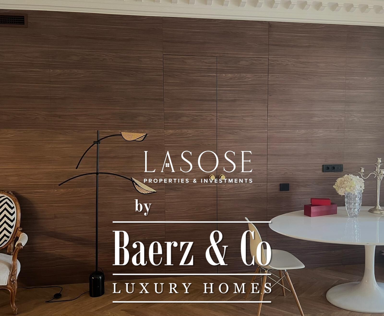 LASOSE presents this stunning apartment in one of the most emblematic street of Barcelona, Paseo de Gracia. This property has been recently renovated with luxury qualities that provide comfort and a modern lifestyle. Located on a real third floor of a royal estate designed by renowned architect Josep Puig & Cadafalch, this apartment is situated across the street from the iconic Casa Batllo and Casa Amatller buildings.. . Upon entering this wonderful property, we are greeted by a cozy entrance that leads to a first single bedroom with fitted closets and a full bathroom. Opposite, we find a spacious double bedroom. Next we pass through the kitchen open to the living room. It is fully equipped with high-end appliances, has an elegant bar, ideal for enjoying special moments.. . The spacious living room is divided by a fantastic gallery providing daylight thanks to the large original windows restored with double glazing. As a finale to this fabulous apartment, we find the master suite with dressing room, overlooking the Tuscan style courtyard and a full bathroom with shower.. . Equipped with underfloor heating by aerothermal, air conditioning by conducts, gas fireplace, this apartment is delivered fully furnished. In