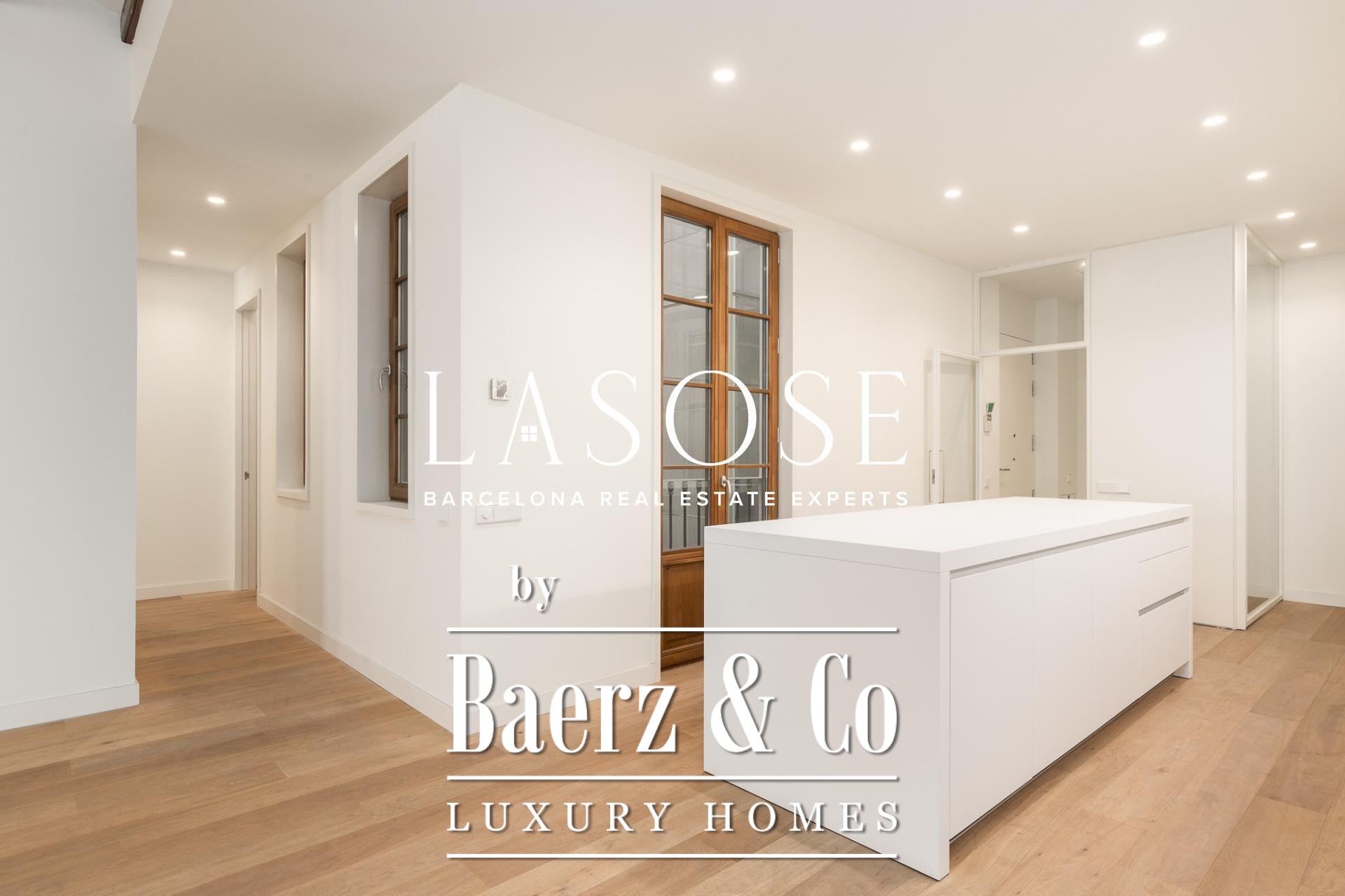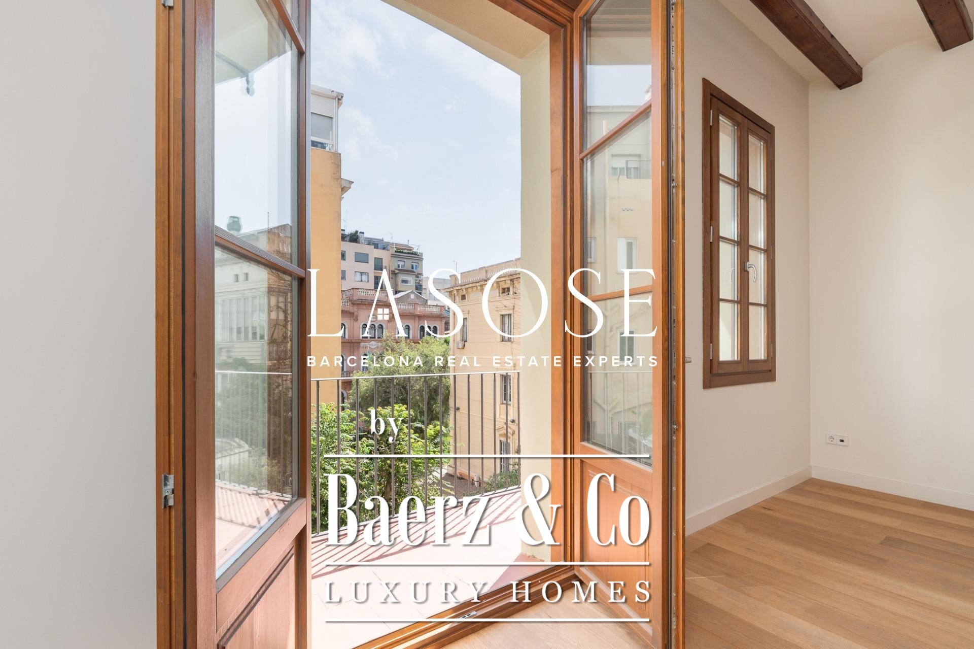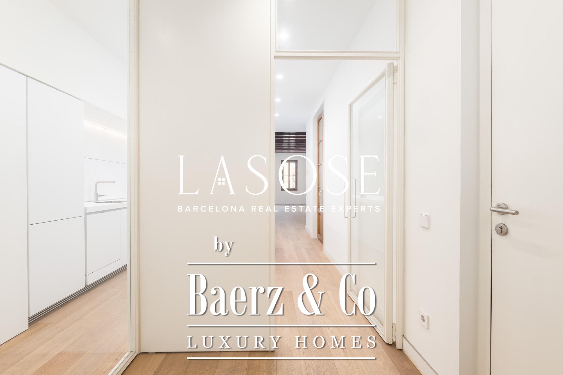 Imagine yourself waking up every day in an architectural jewel in the heart of Quadrat d'Or del Eixample, one of the most prestigious and desired areas of Barcelona. A few steps from the emblematic Paseo de Gracia, you will find this spectacular new build apartment, where the charm of the nineteenth century merges with the comfort and modernity of today.. . An elegant glass foyer welcomes you to this exclusive home before accessing a spacious contemporary kitchen that opens to the dining and living rooms.. . An expansive balcony extends the length of the living room, a guest bedroom and master suite. Situated at the rear of the building, this residence receives morning sun and offers tranquil views of a neighboring garden and architecturally significant buildings.. . Separate day and night areas provide spaciousness and privacy. Oak wood plank floors visually expand the space, while closets are cleverly