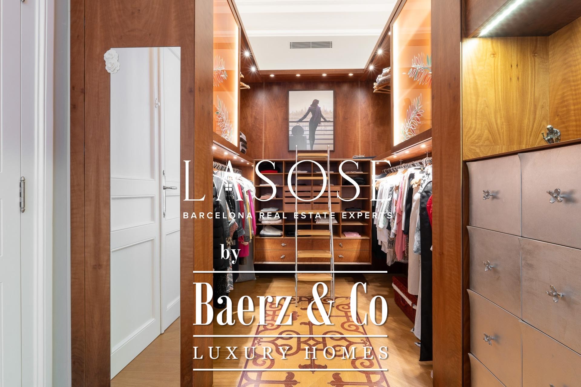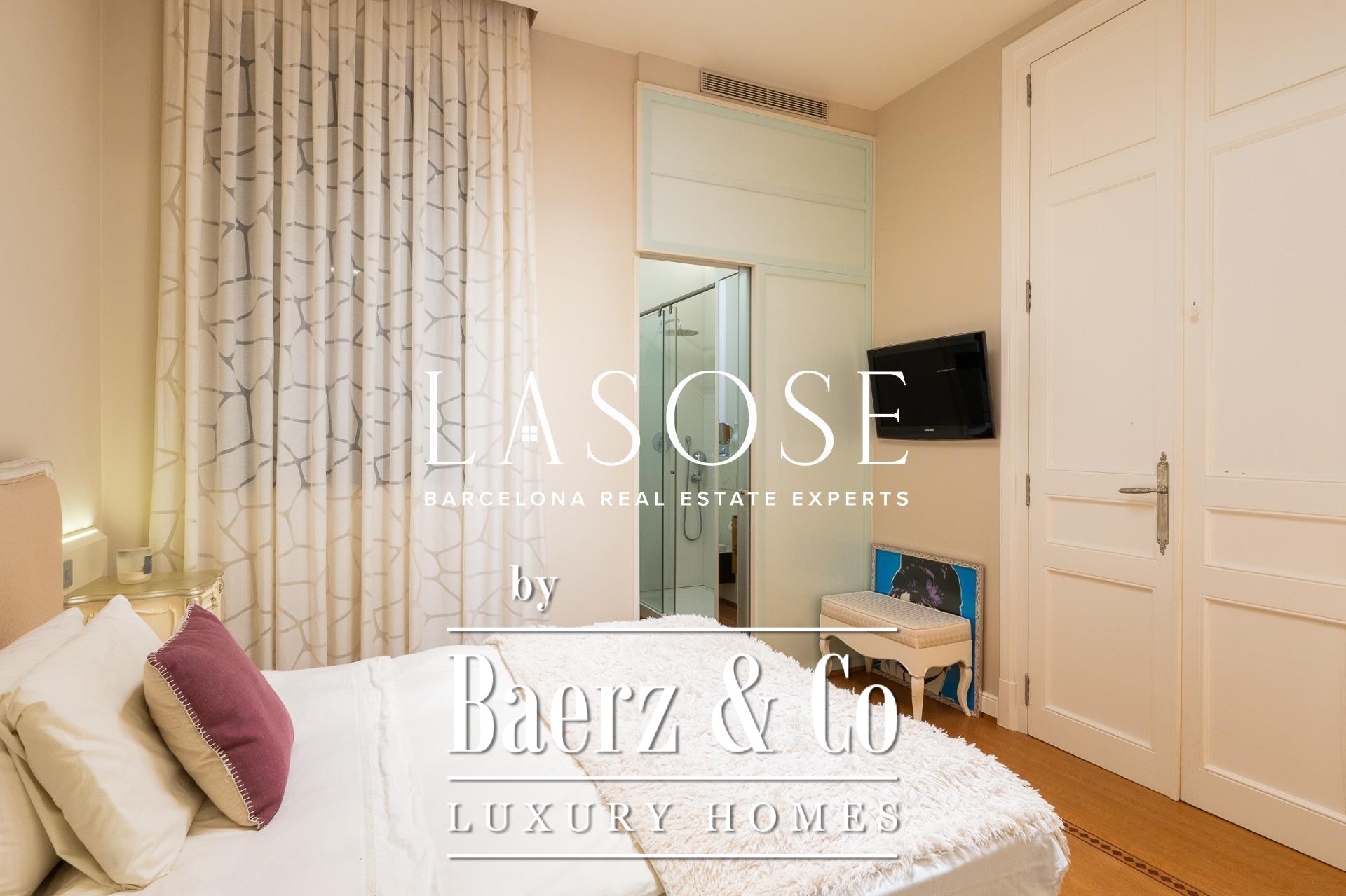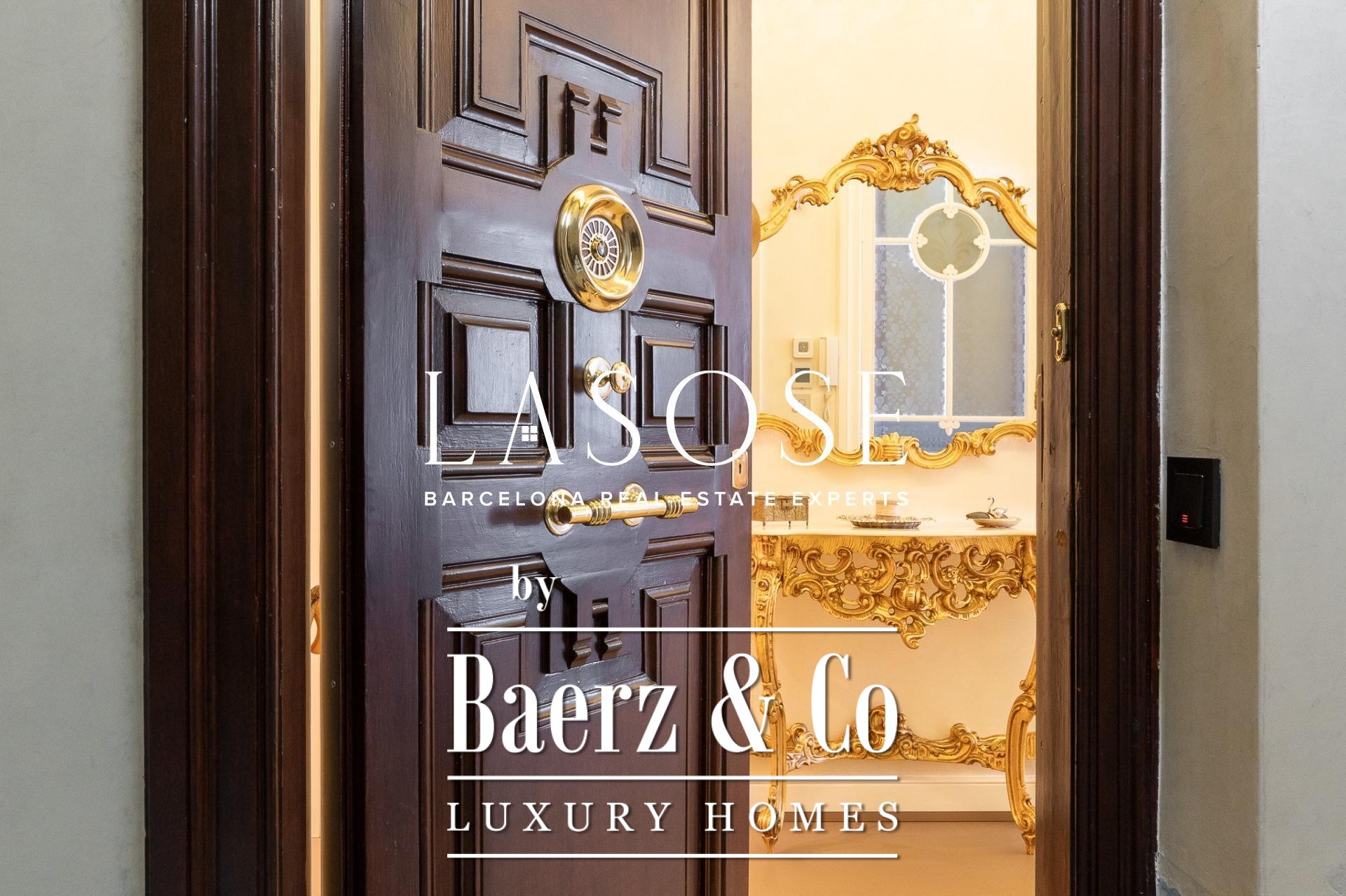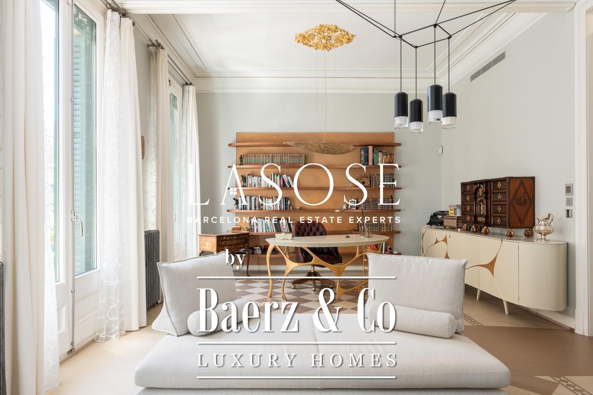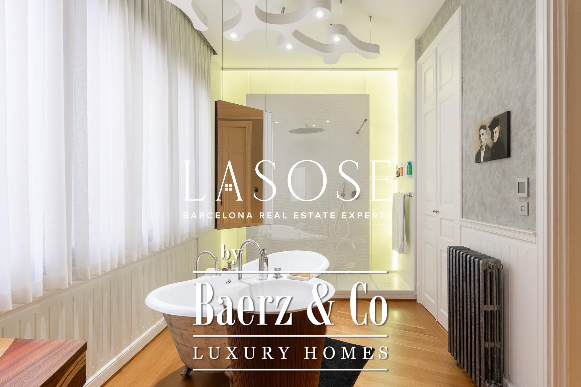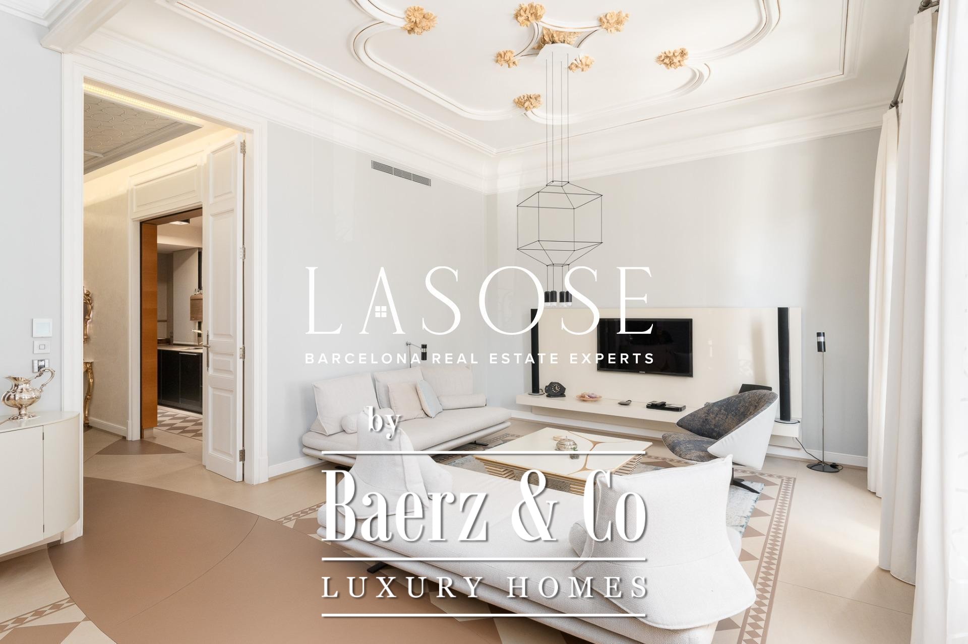 style.. . In the night area, there are two impressive en-suite bedrooms. The master bedroom, facing the peaceful courtyard, has a dreamy dressing room and an elegant bathroom located in a glazed gallery that allows natural light to flood in. The second bedroom, equally spacious, also has its own dressing room and private bathroom.. . The property is equipped with the latest technology: home automation system, ducted air conditioning and heating with wrought iron radiators, guaranteeing maximum comfort all year round. The double-glazed windows and the restoration of the original carpentry provide a perfect balance between classic and modern.. . This property enjoys a double orientation that makes it a bright home all day long. In addition, the building has a lift and only one flat per floor, ensuring privacy and tranquillity.. . Located in one of the most exclusive areas of Barcelona, surrounded by luxury boutiques, renowned restaurants and excellent public transport links, this property is perfect for those looking for a sophisticated lifestyle in the city centre.