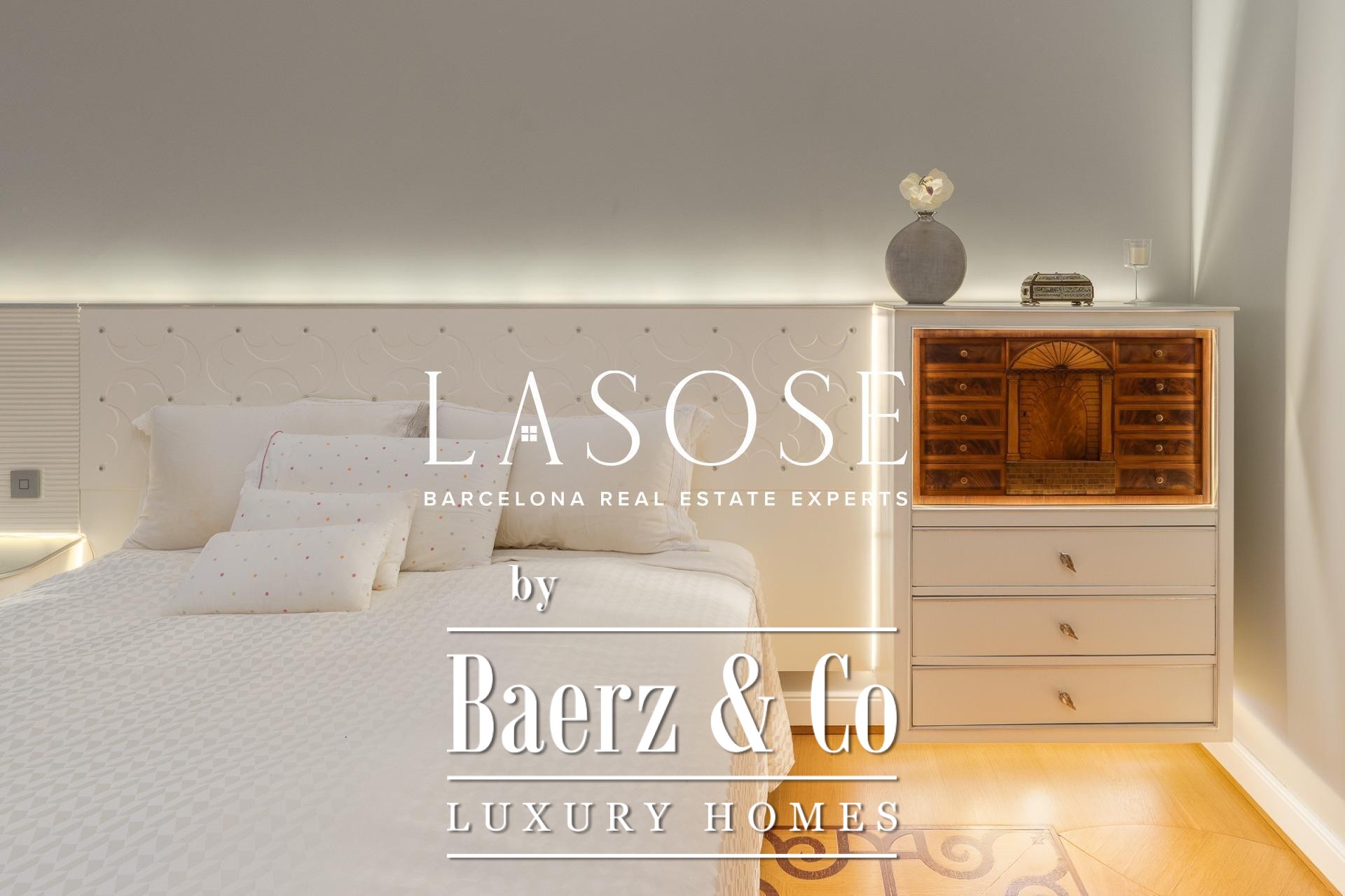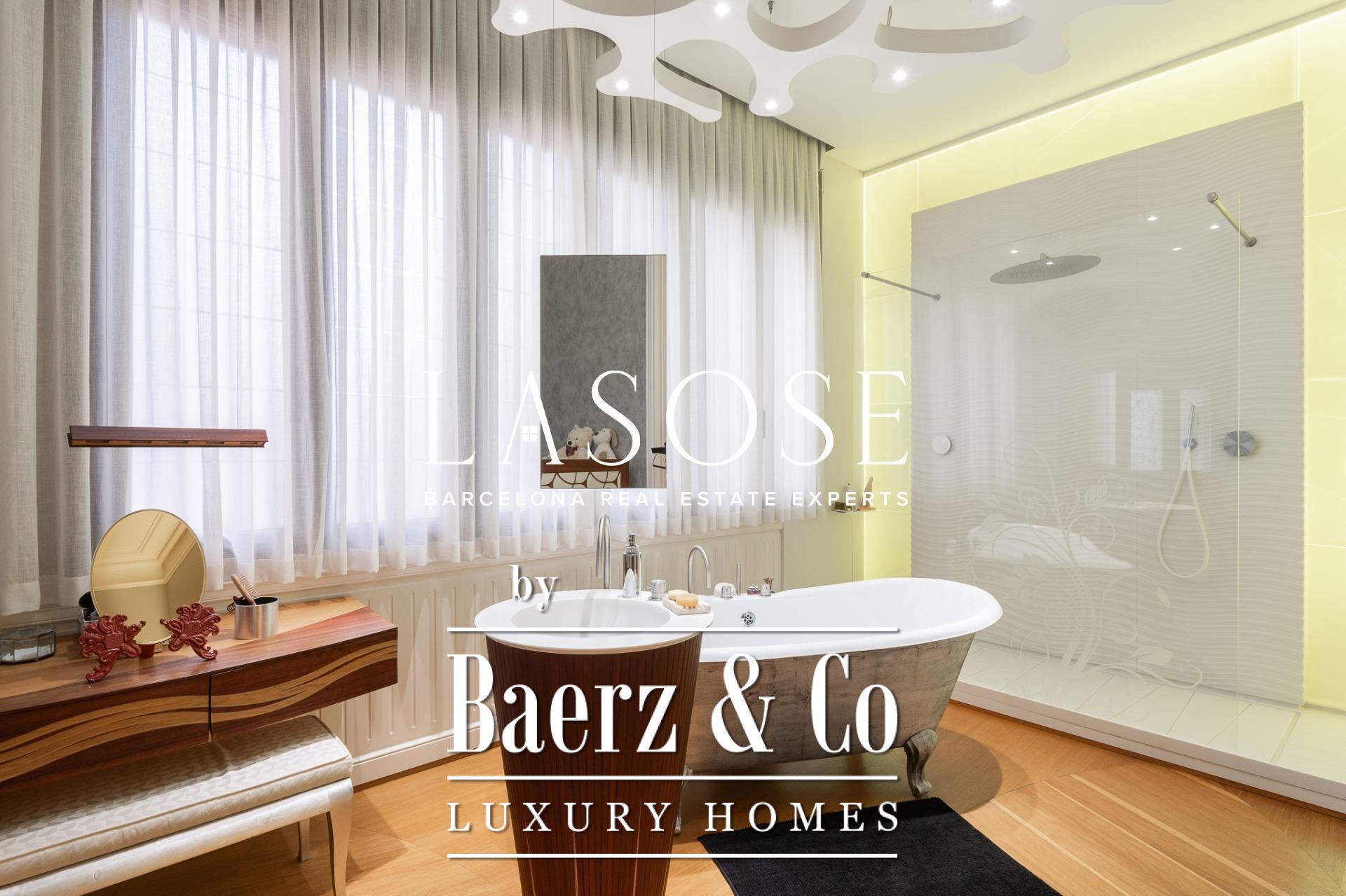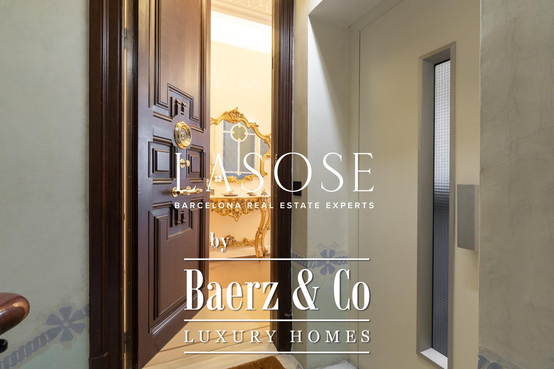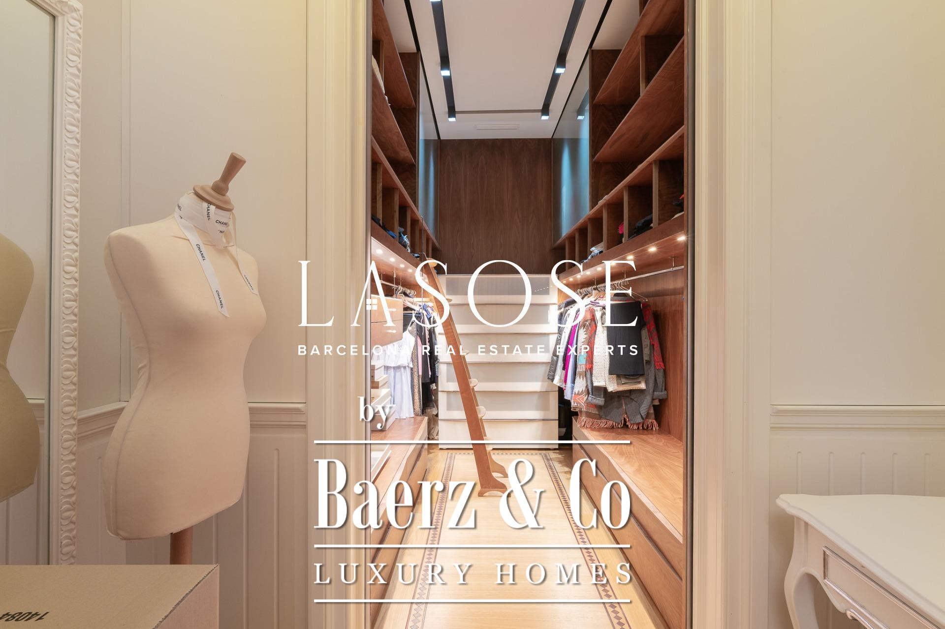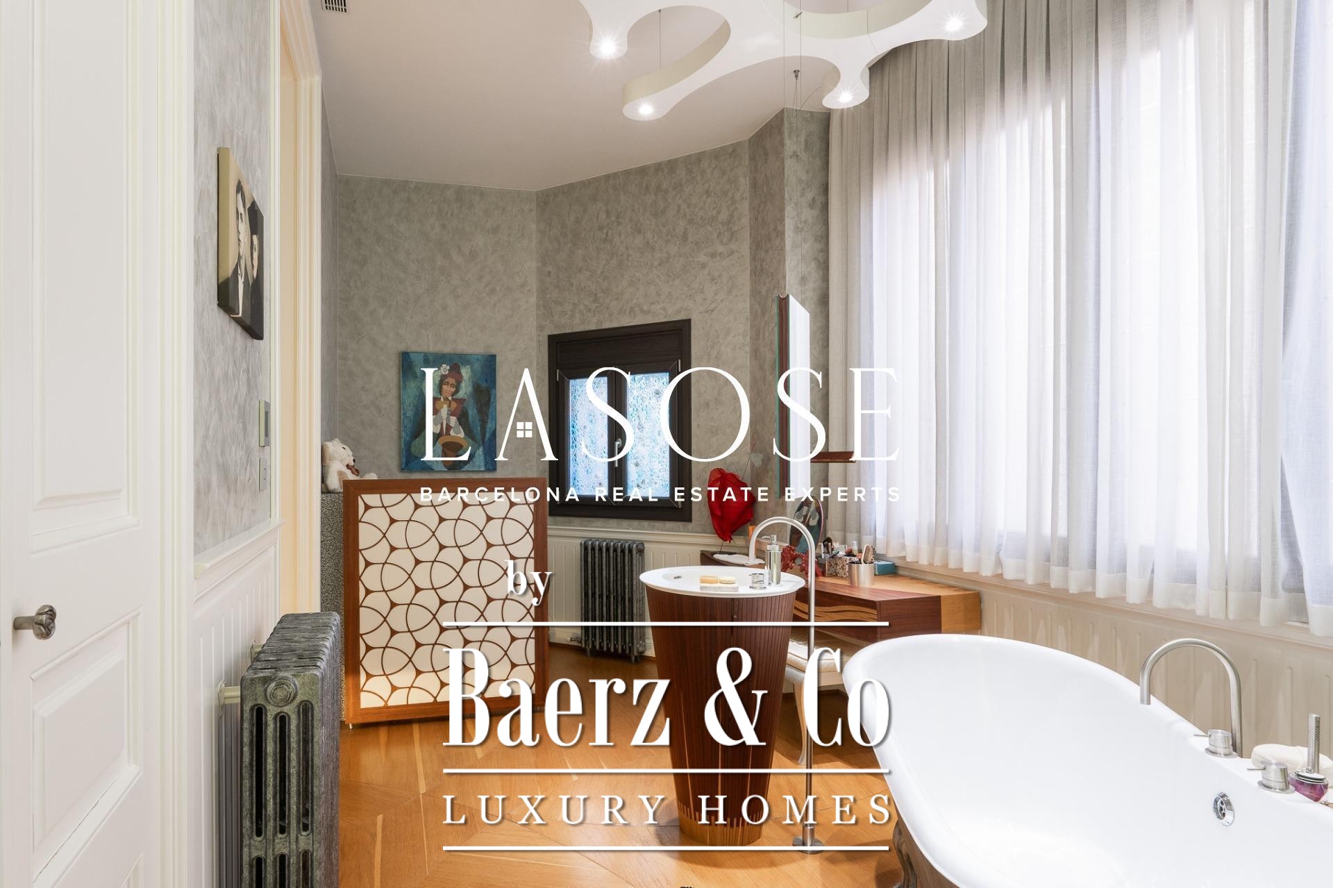 style.. . In the night area, there are two impressive en-suite bedrooms. The master bedroom, facing the peaceful courtyard, has a dreamy dressing room and an elegant bathroom located in a glazed gallery that allows natural light to flood in. The second bedroom, equally spacious, also has its own dressing room and private bathroom.. . The property is equipped with the latest technology: home automation system, ducted air conditioning and heating with wrought iron radiators, guaranteeing maximum comfort all year round. The double-glazed windows and the restoration of the original carpentry provide a perfect balance between classic and modern.. . This property enjoys a double orientation that makes it a bright home all day long. In addition, the building has a lift and only one flat per floor, ensuring privacy and tranquillity.. . Located in one of the most exclusive areas of Barcelona, surrounded by luxury boutiques, renowned restaurants and excellent public transport links, this property is perfect for those looking for a sophisticated lifestyle in the city centre.