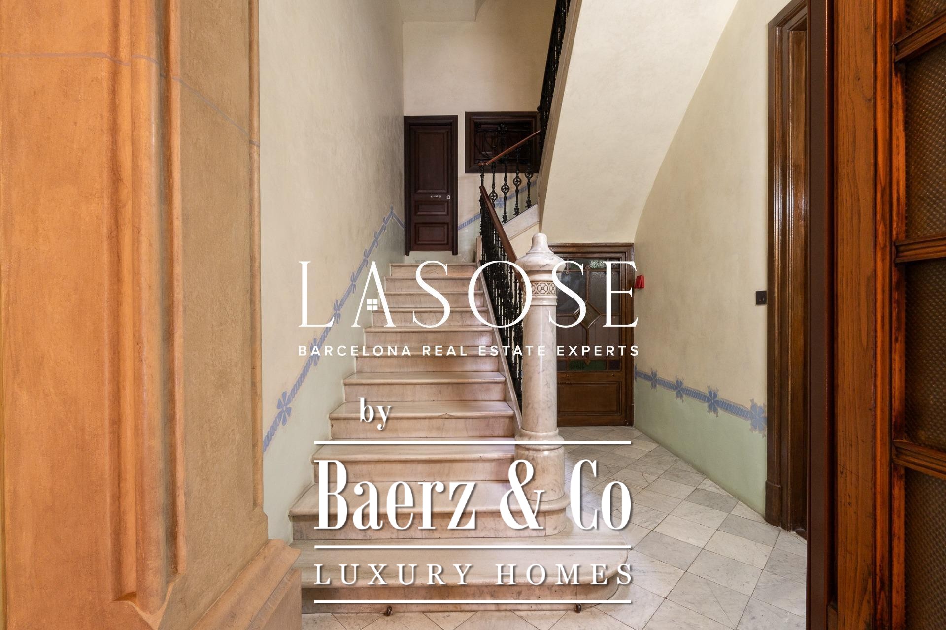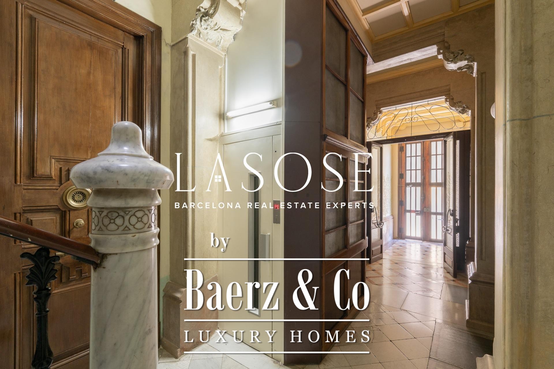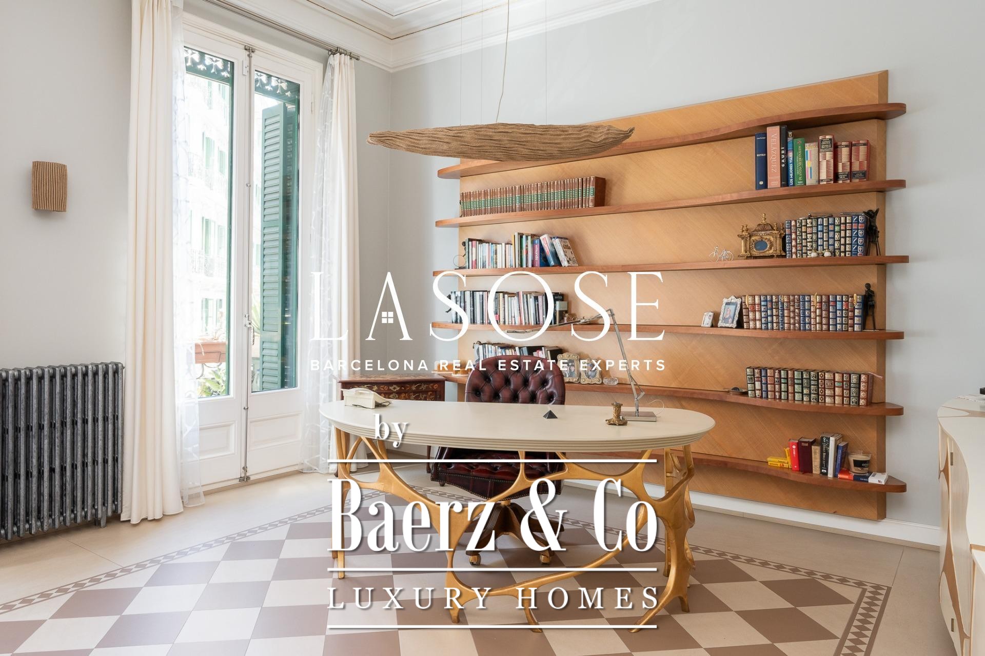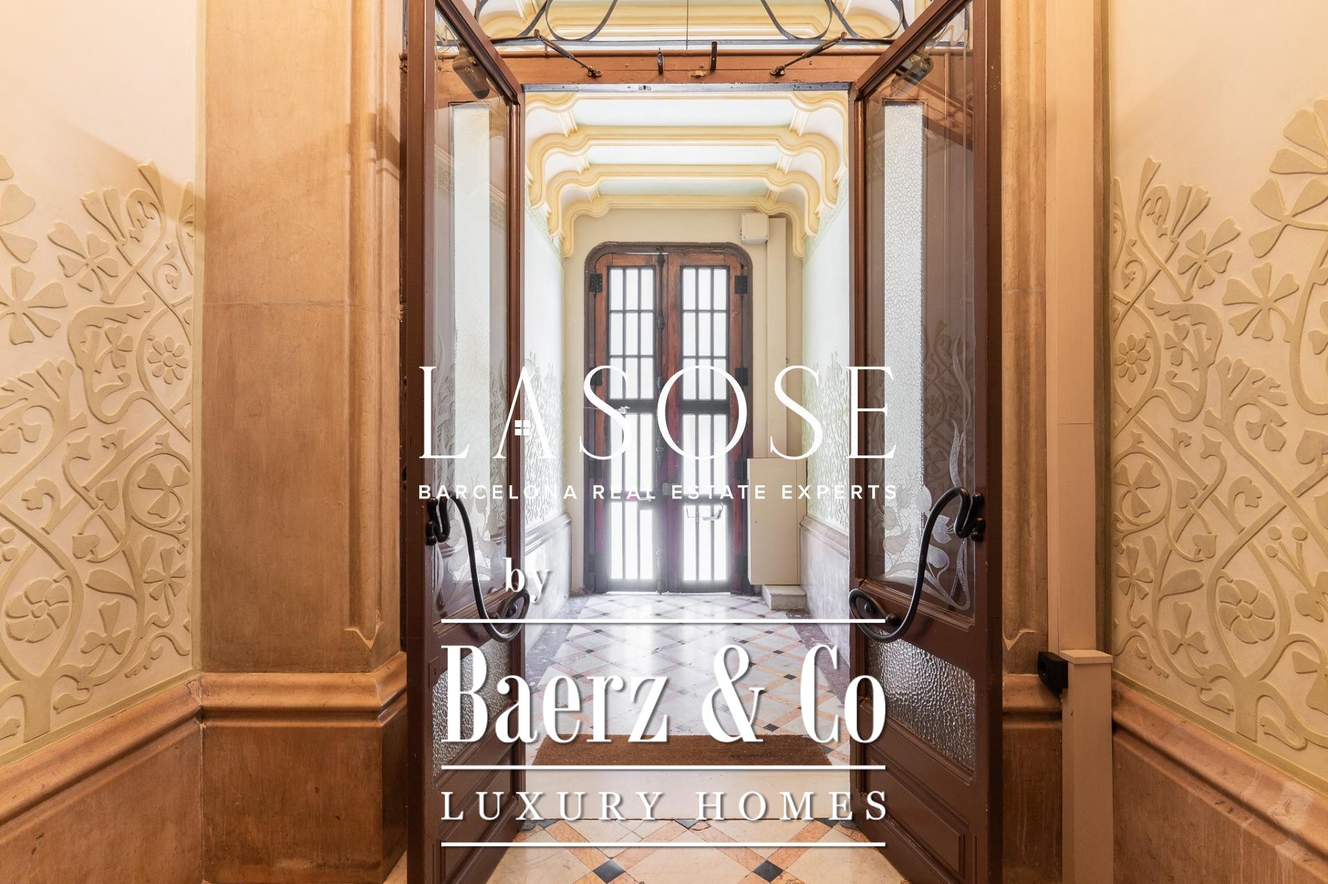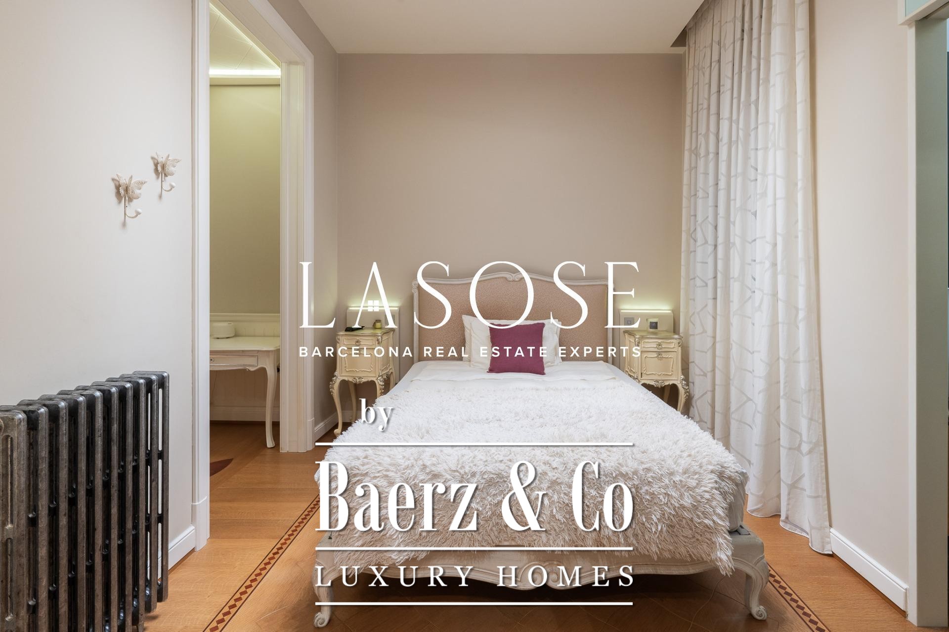 style.. . In the night area, there are two impressive en-suite bedrooms. The master bedroom, facing the peaceful courtyard, has a dreamy dressing room and an elegant bathroom located in a glazed gallery that allows natural light to flood in. The second bedroom, equally spacious, also has its own dressing room and private bathroom.. . The property is equipped with the latest technology: home automation system, ducted air conditioning and heating with wrought iron radiators, guaranteeing maximum comfort all year round. The double-glazed windows and the restoration of the original carpentry provide a perfect balance between classic and modern.. . This property enjoys a double orientation that makes it a bright home all day long. In addition, the building has a lift and only one flat per floor, ensuring privacy and tranquillity.. . Located in one of the most exclusive areas of Barcelona, surrounded by luxury boutiques, renowned restaurants and excellent public transport links, this property is perfect for those looking for a sophisticated lifestyle in the city centre.