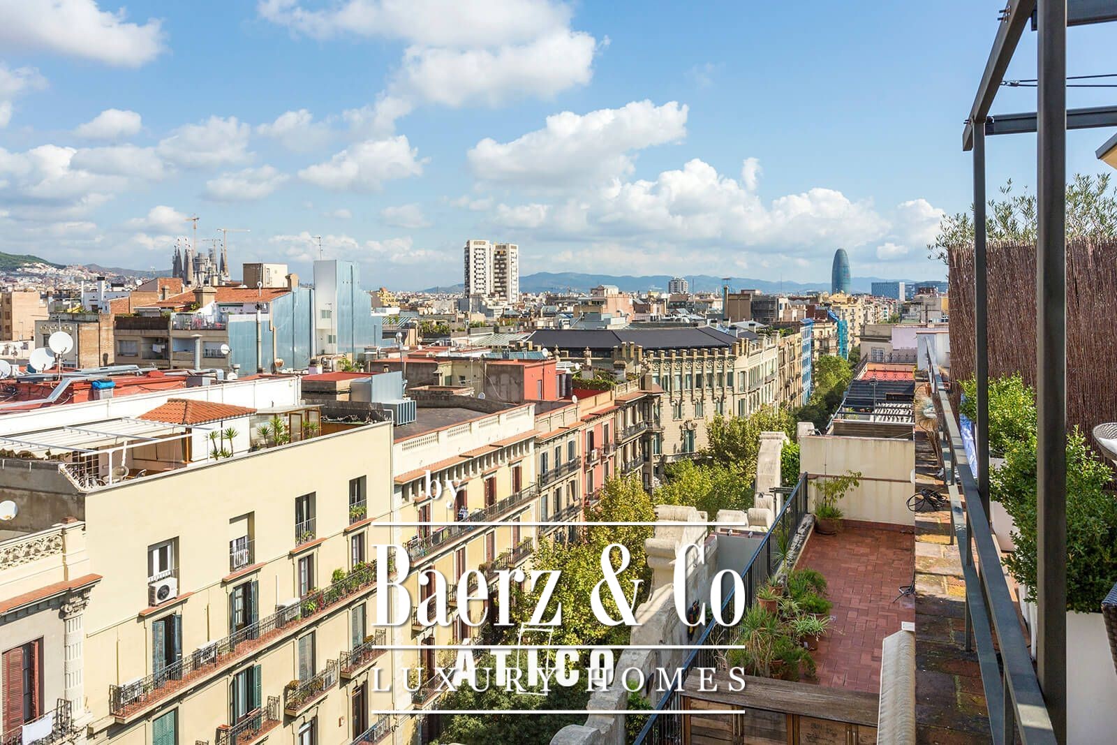 Penthouse Barcelona offers a compelling vantage point in the heart of the Eixample district. This furnished penthouse, available on an 11-month contract, sets a quiet tone above the city with 73 m² of built area and 65 m² of usable space. It is distinguished by two terraces, each framing panoramic views of the Mediterranean and the historic profile of Ciutat Vella.