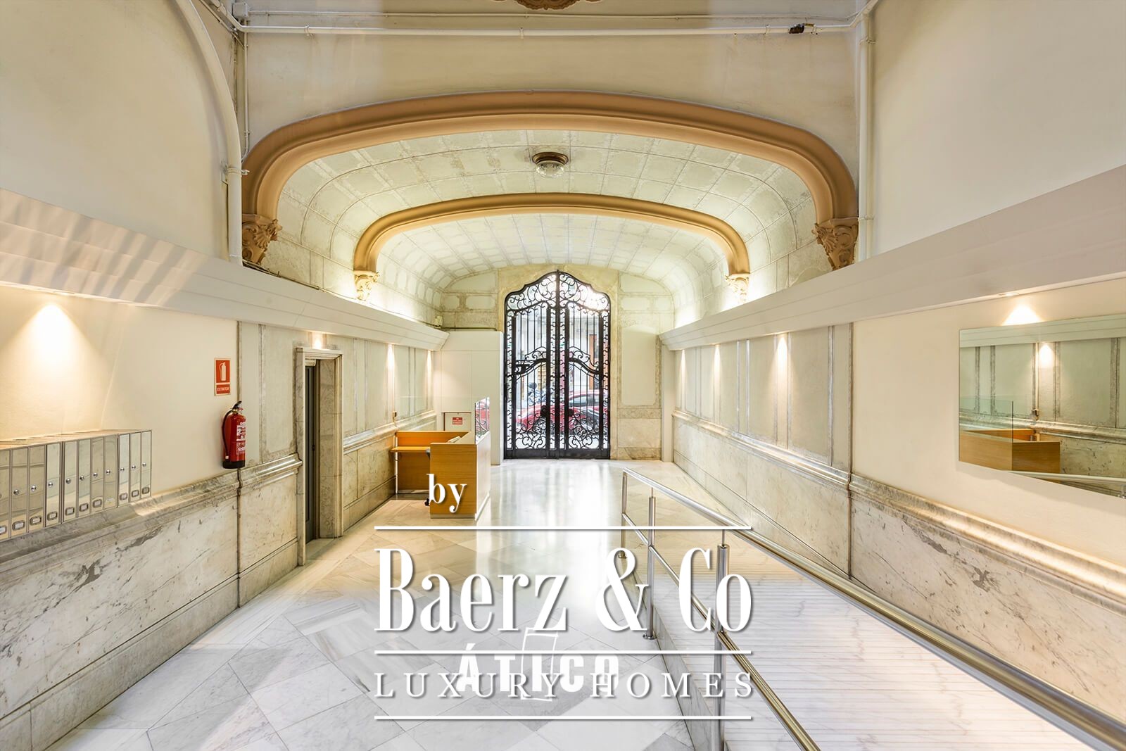 Natural gas heating and air conditioning ensure year-round ease. The setting situates you two minutes from Plaça Catalunya, surrounded by independent shops and the convenience of El Corte Inglés. Families will appreciate proximity to schools. This penthouse for rent in Barcelona is accessible, connected and quietly poised above the rhythms of the city.