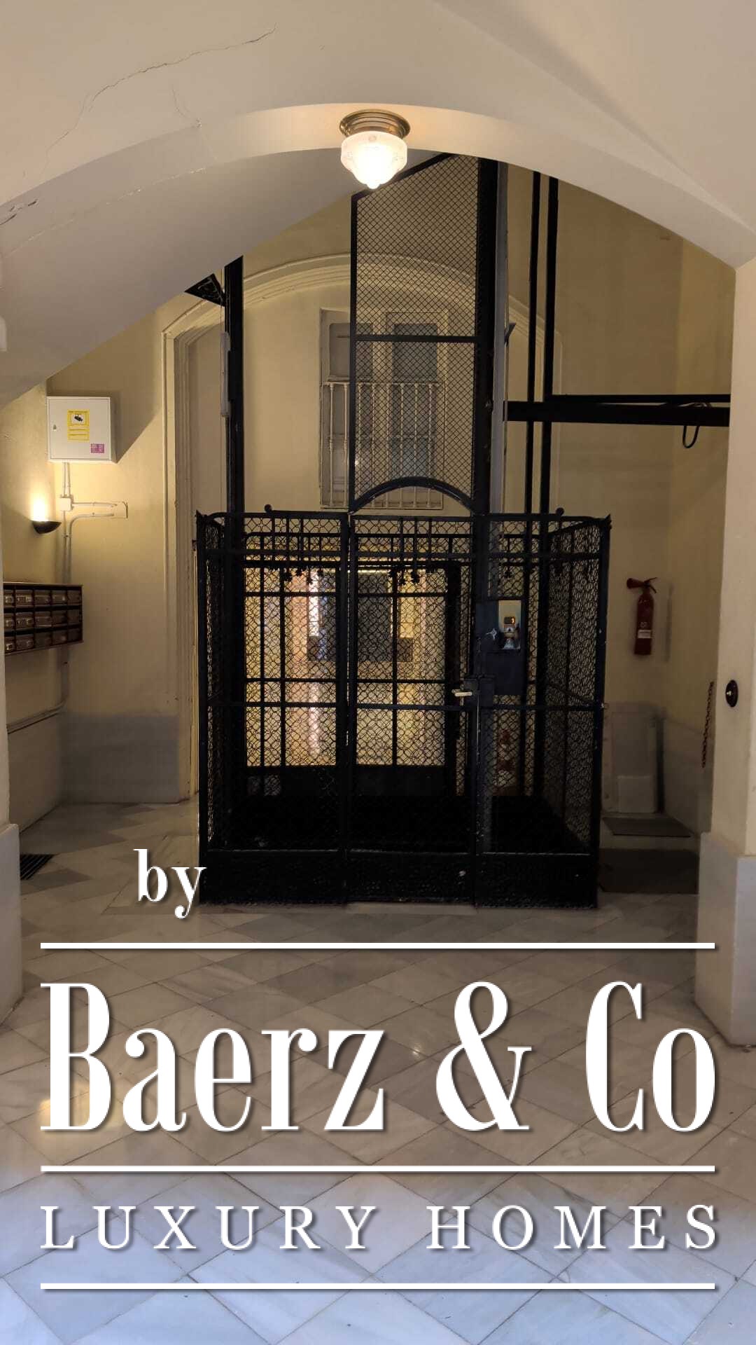 The living and dining spaces are shaped for both comfort and quiet hospitality, unfolding alongside a fully appointed kitchen and a separate laundry room. This carefully renovated apartment retains authentic elements while introducing contemporary finishes and access via elevator, creating an atmosphere of understated, historic Barcelona living.
