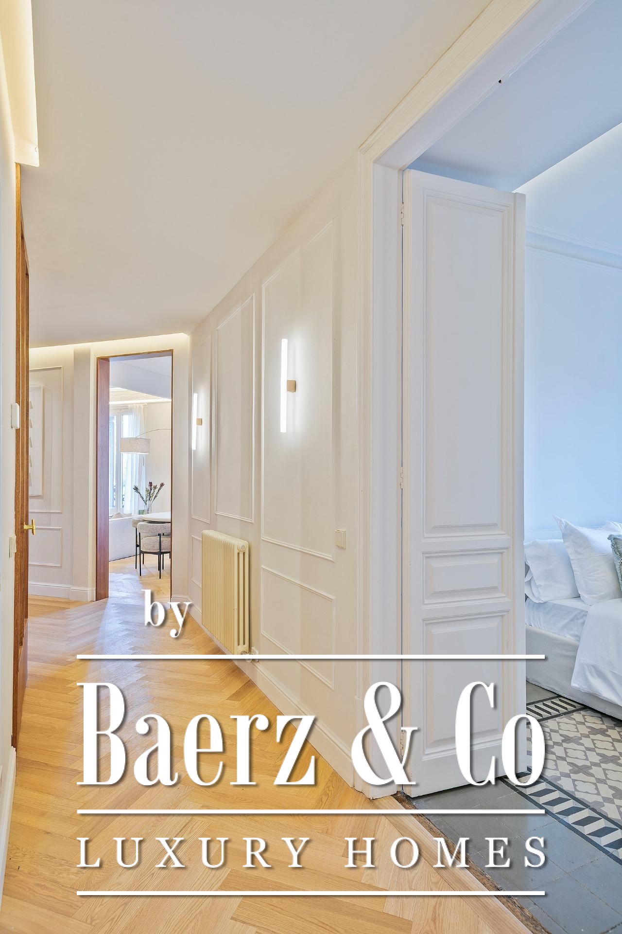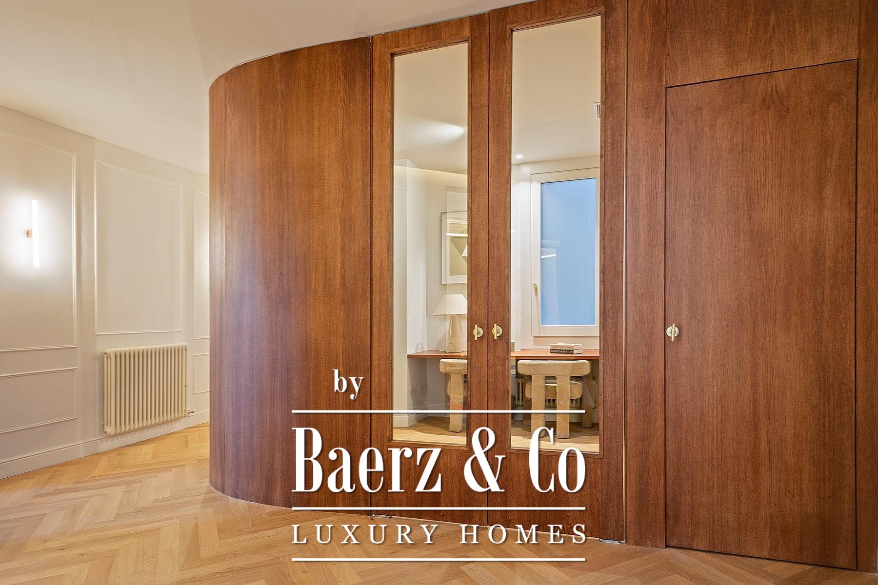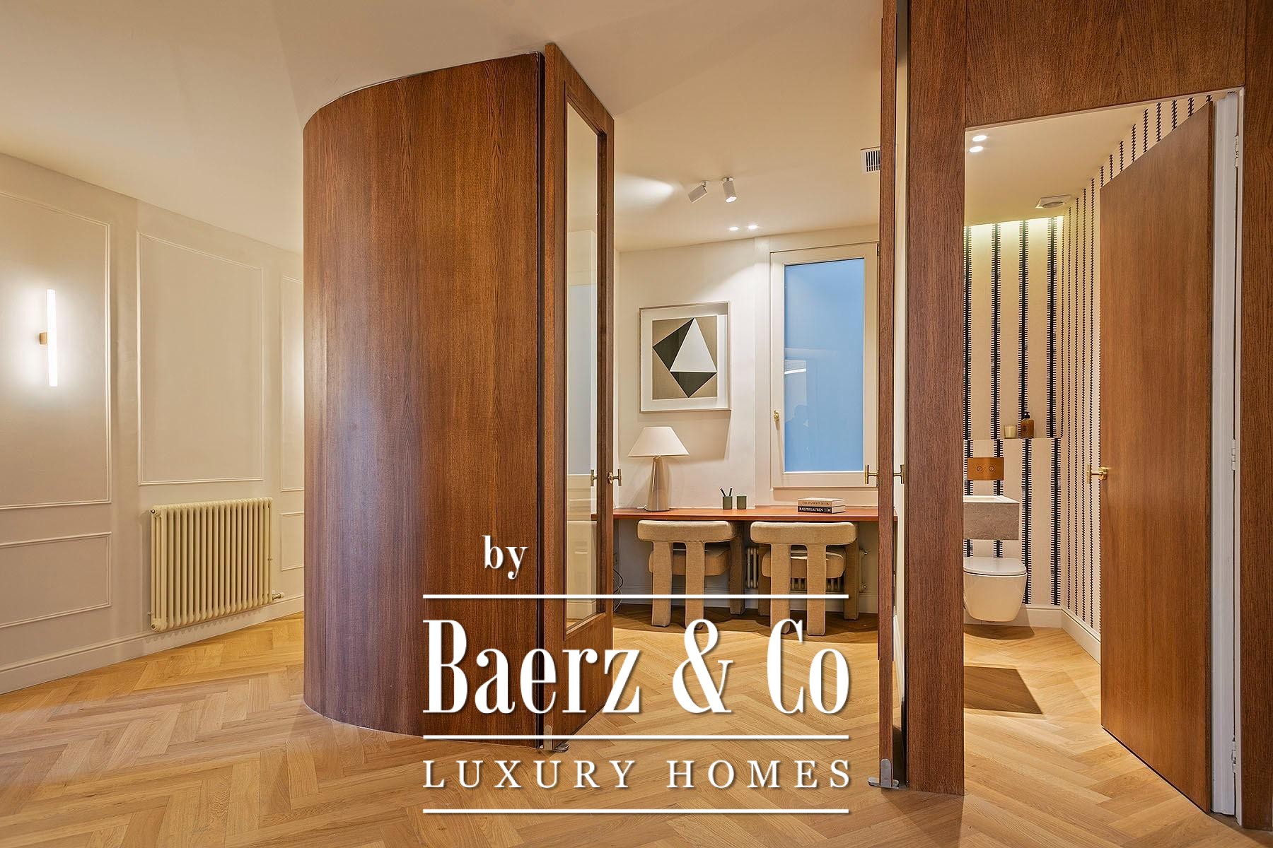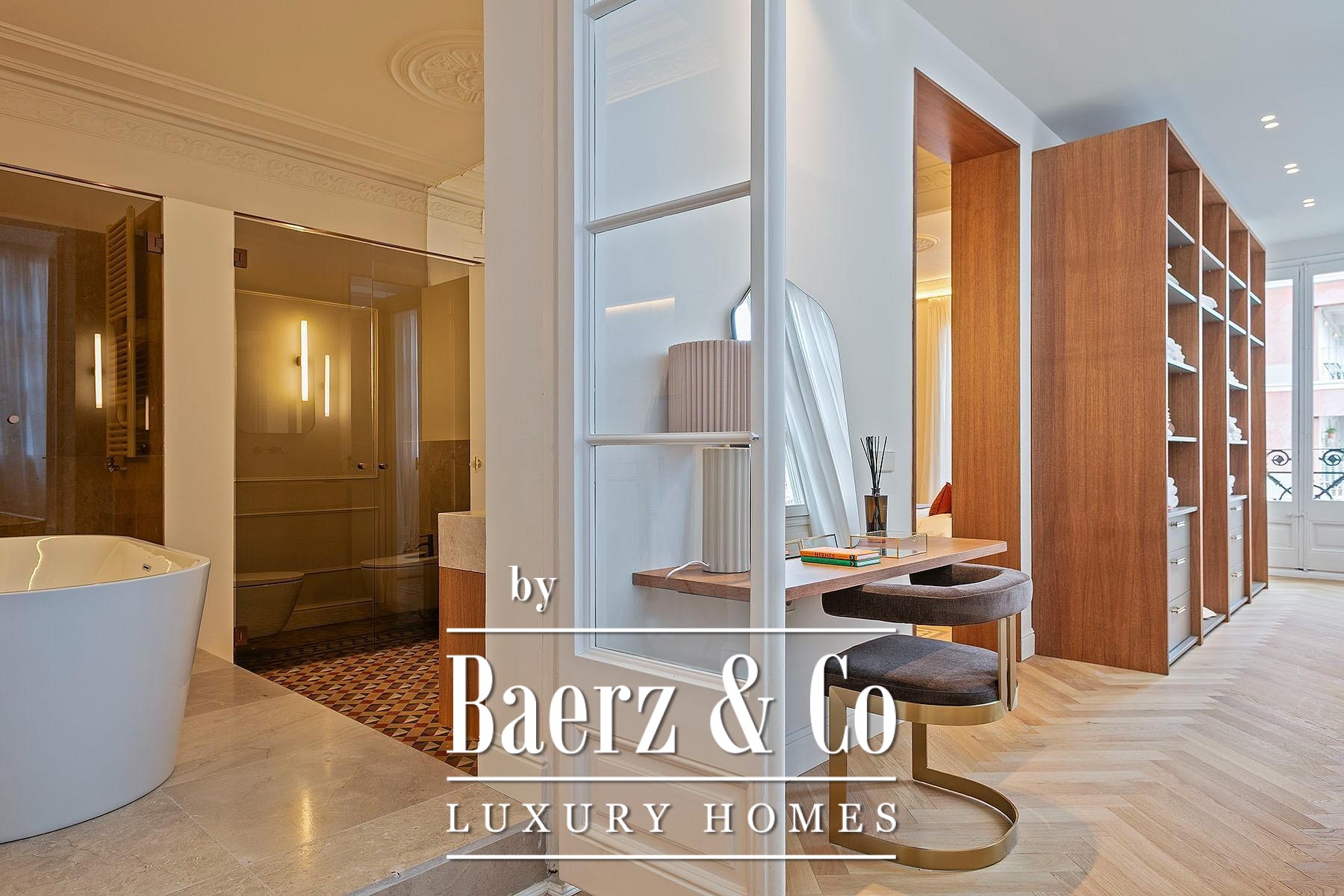 Luxury apartment Barcelona offers an exclusive living experience, defined by its location on a corner with a chamfered façade. This architectural hallmark brings in maximum natural light, a rare attribute ensuring brightness, spatial clarity, and lasting comfort. Every room of the 183 m² apartment is exterior-facing, cultivating a sense of well-being and a unique connection with the city.