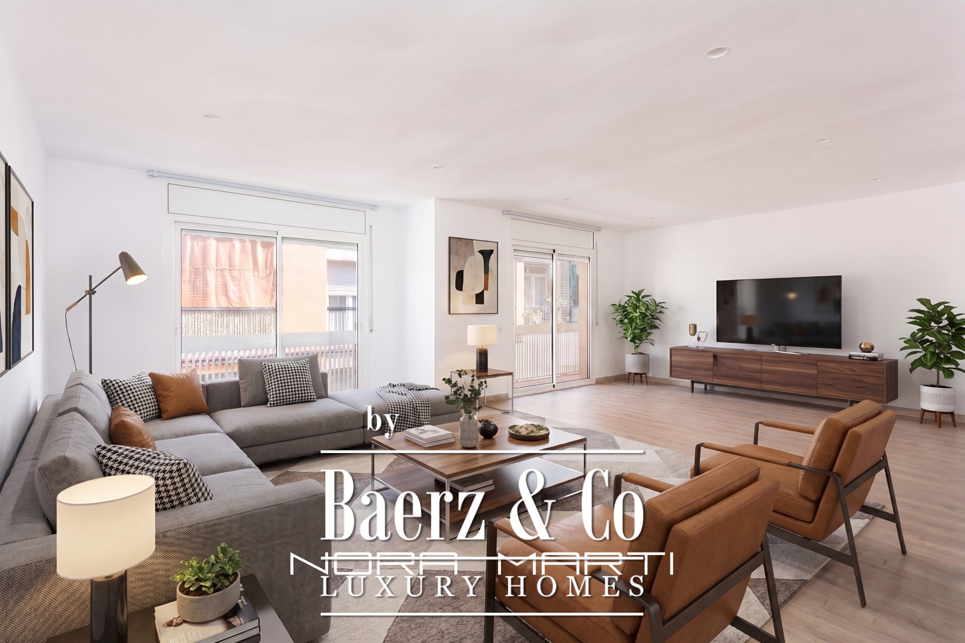 Apartment Barcelona is revealed along a tranquil street near Plaça Artós, offering a considered living experience within Sarrià. Spanning 146 m², this residence balances generous scale with a thoughtfully executed layout. Upon entering, one is met by a spacious foyer unfolding into a luminous, elegant living room, unified by natural light and an understated flow towards a bright dining space that opens directly to a private balcony.