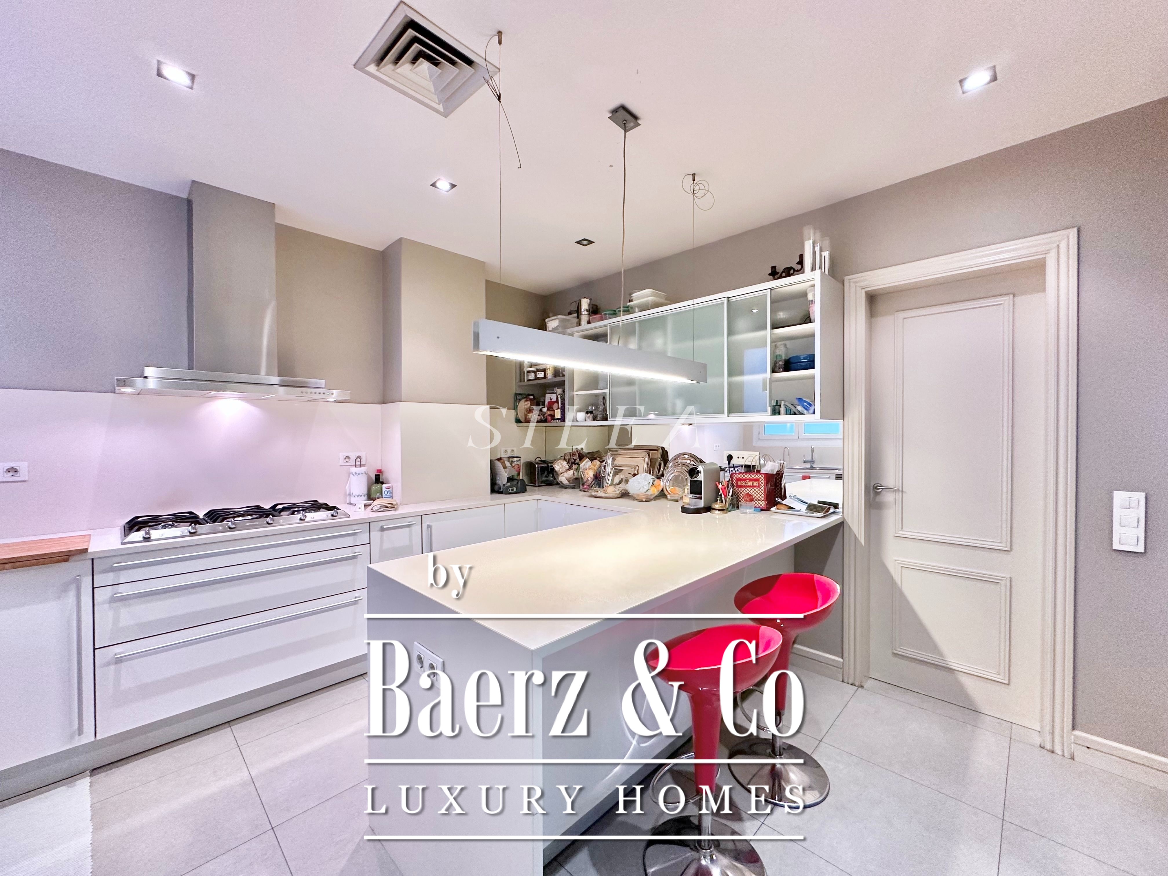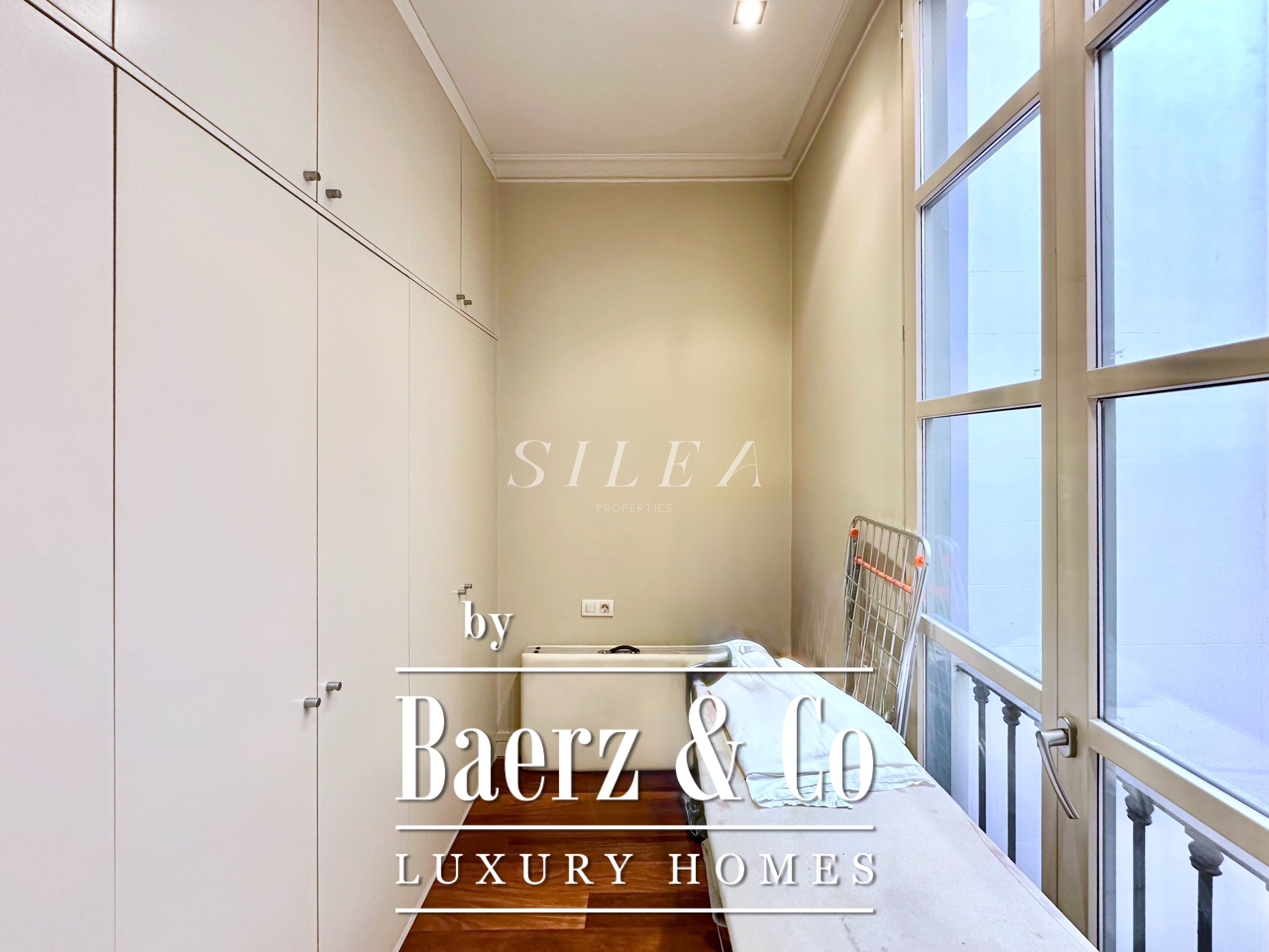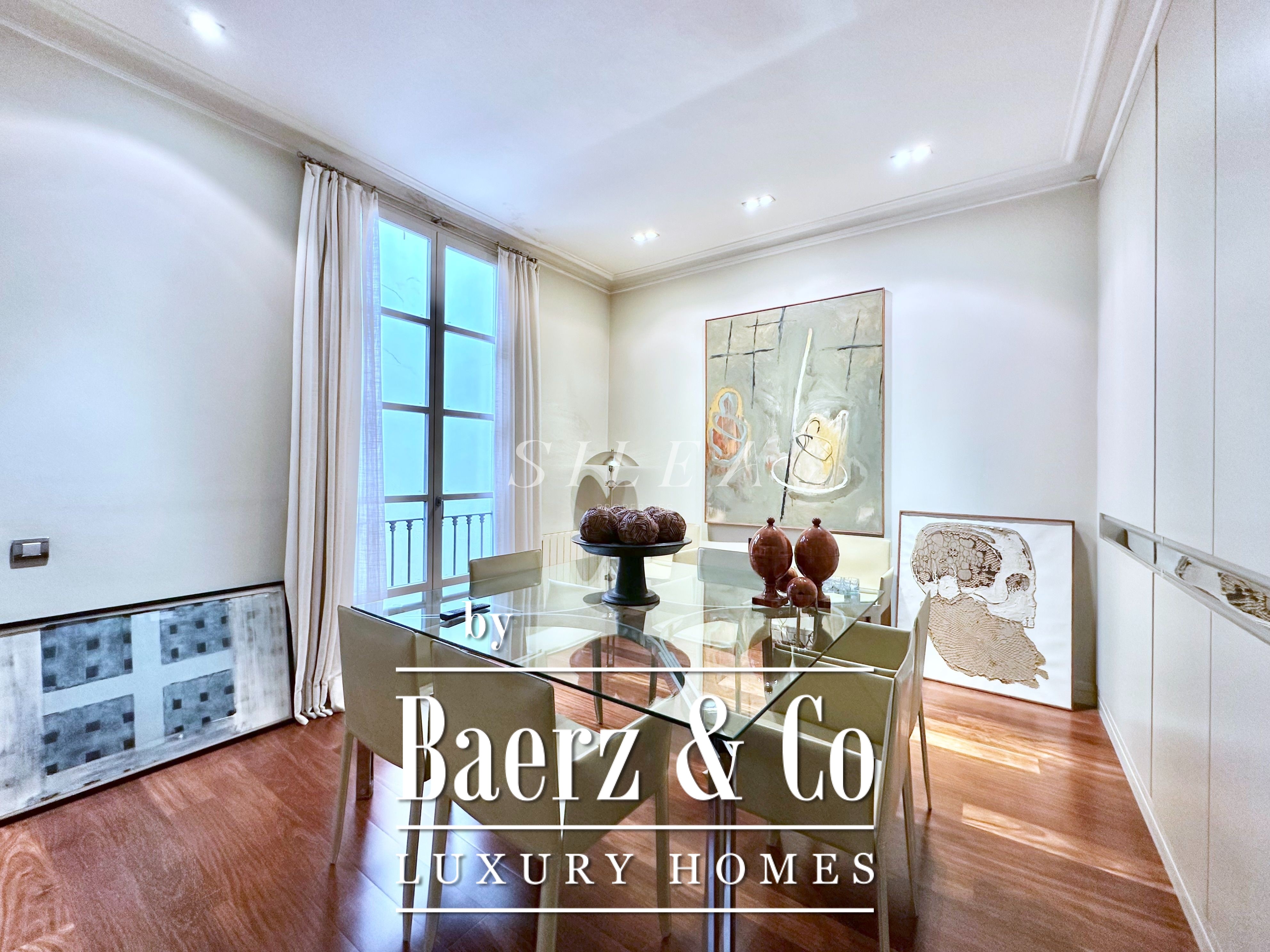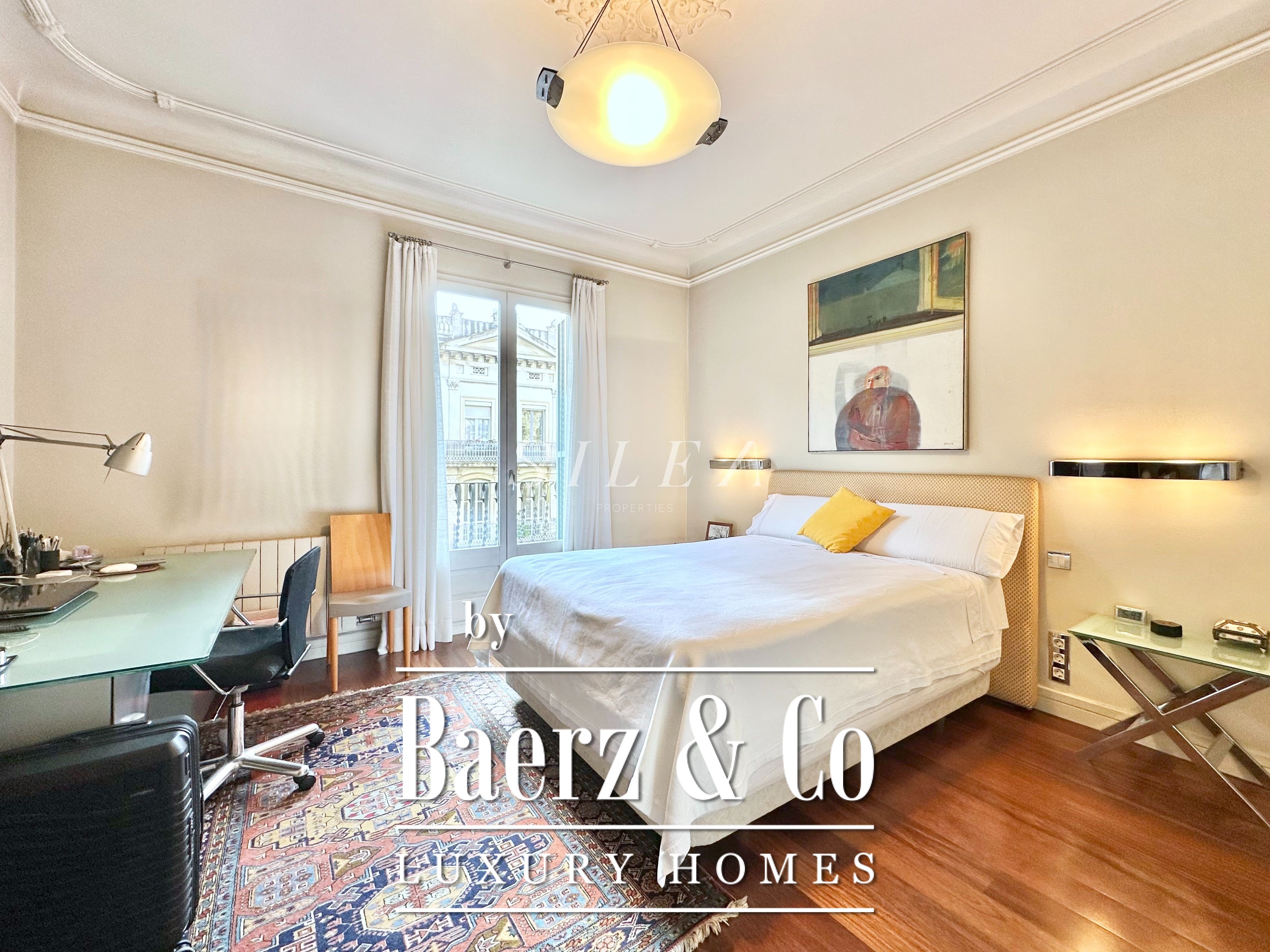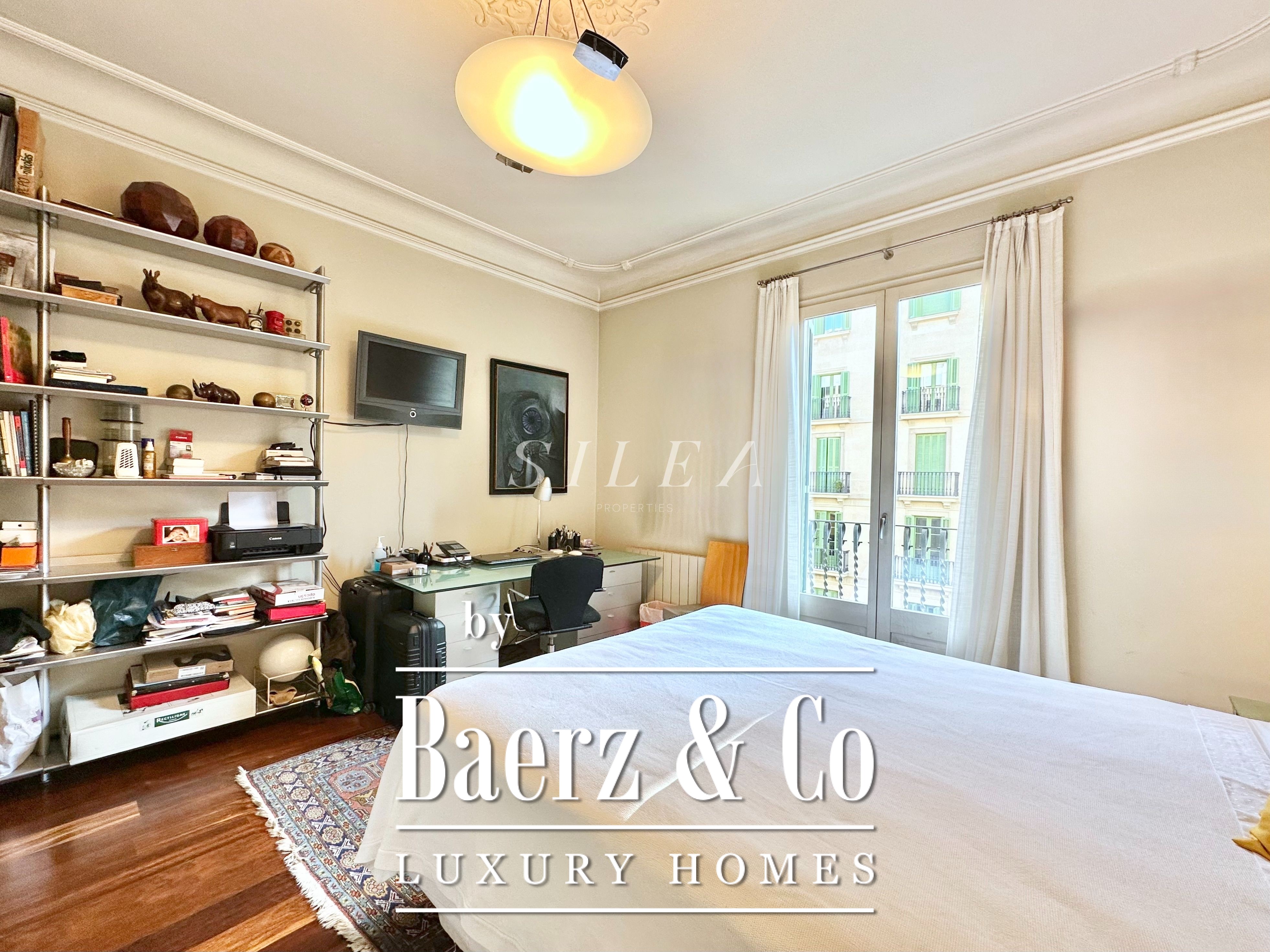 Spanning 258 m² with 228 m² of usable living space, the apartment impresses with its volume and flow. High ceilings and tall windows admit abundant natural light, while original parquet floors and elegant proportions establish a sense of calm grandeur. Two large living rooms allow for graceful entertaining or quiet retreat, one with a Juliet balcony opening to the stately façades of the Eixample.