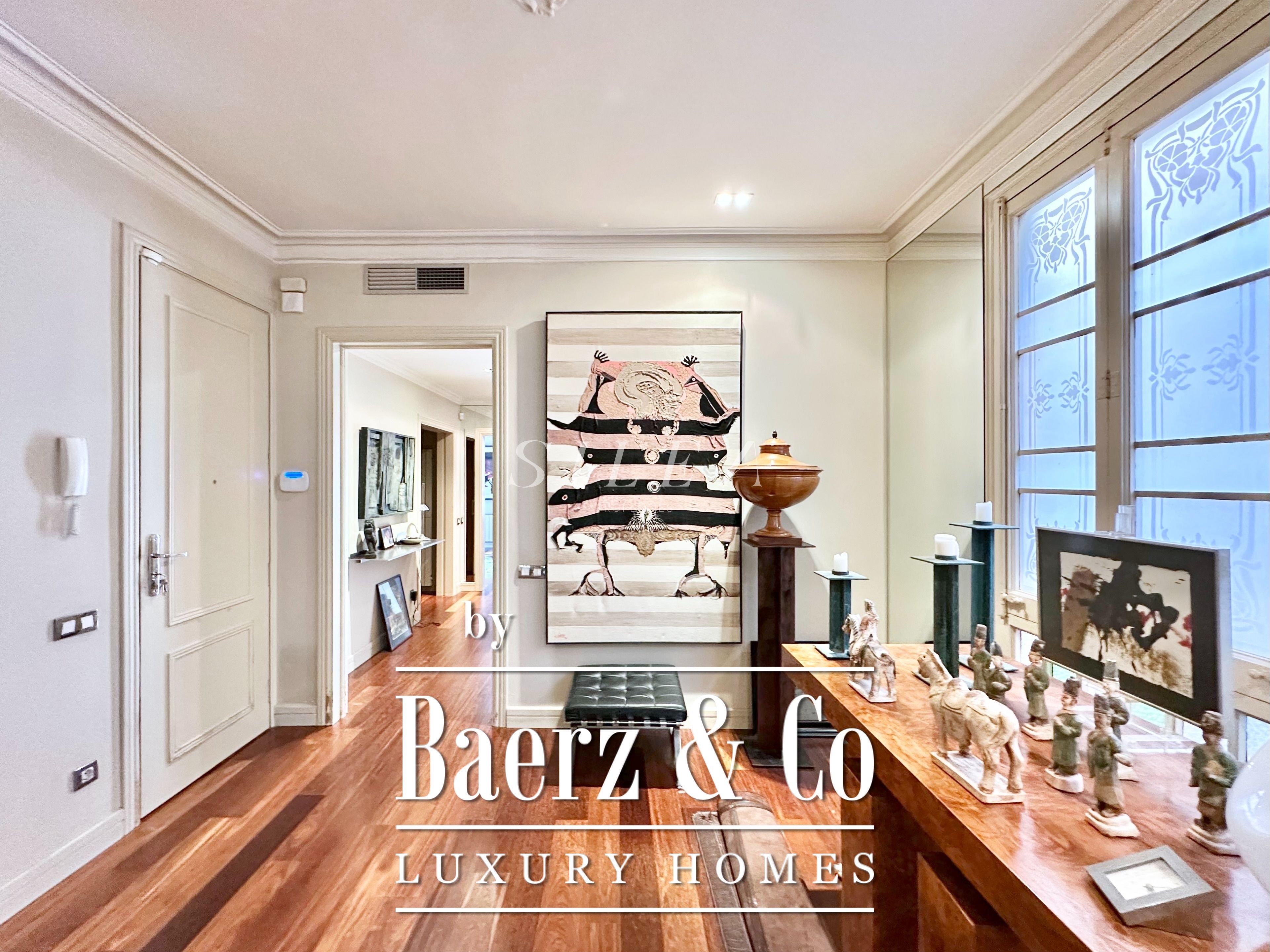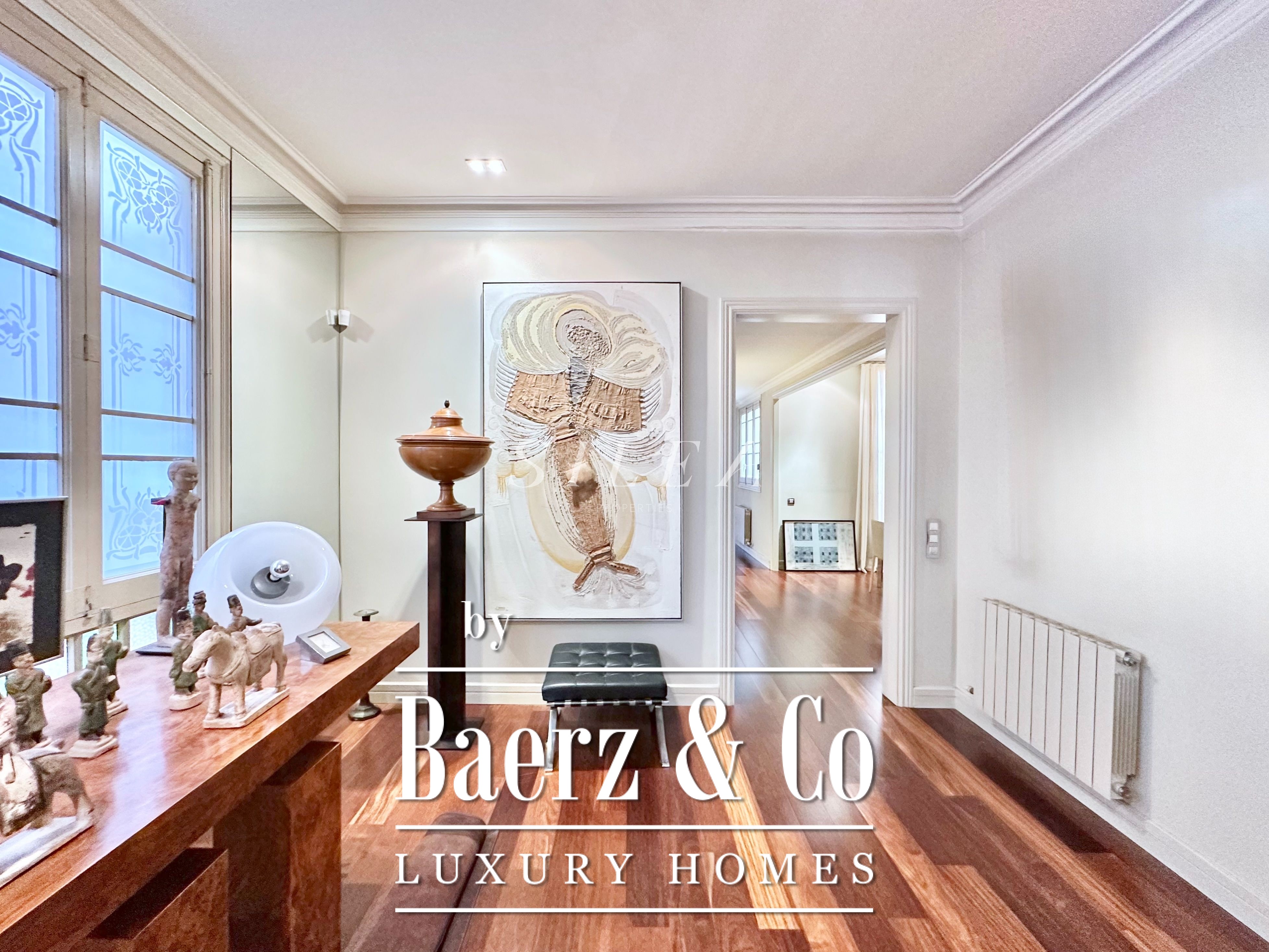 Apartment Barcelona defines a rare interplay of Modernist heritage and generous scale in the prestigious Quadrat d’Or of Eixample. This third-floor residence in a listed 1906 building stands just moments from Passeig de Gràcia and Plaça Catalunya, surrounded by the architectural landmarks that define central Barcelona.