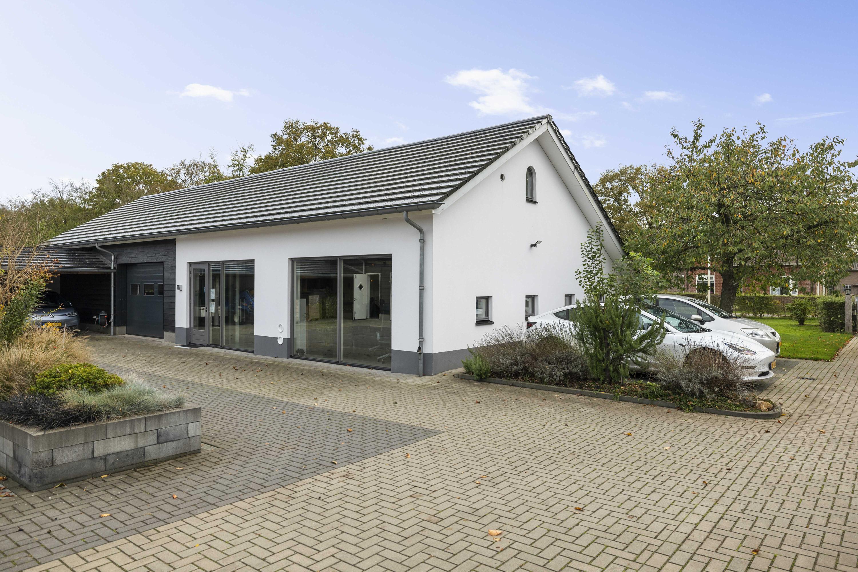 Perhaps you have your own business, maybe with staff, and you want to work from home. That's possible! There is a more than spacious U-shaped annexe consisting of an office with presentation room (approx. 84 m²), toilet, pantry with close-in boiler, and a workshop (90 m²) where you can get straight to work. Like the main house, the entire building is equipped with fibre optic Cat6 Ethernet cables.