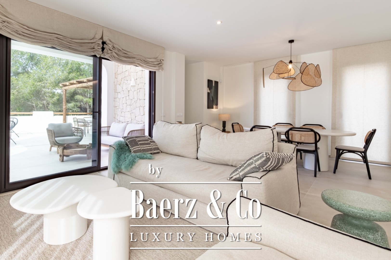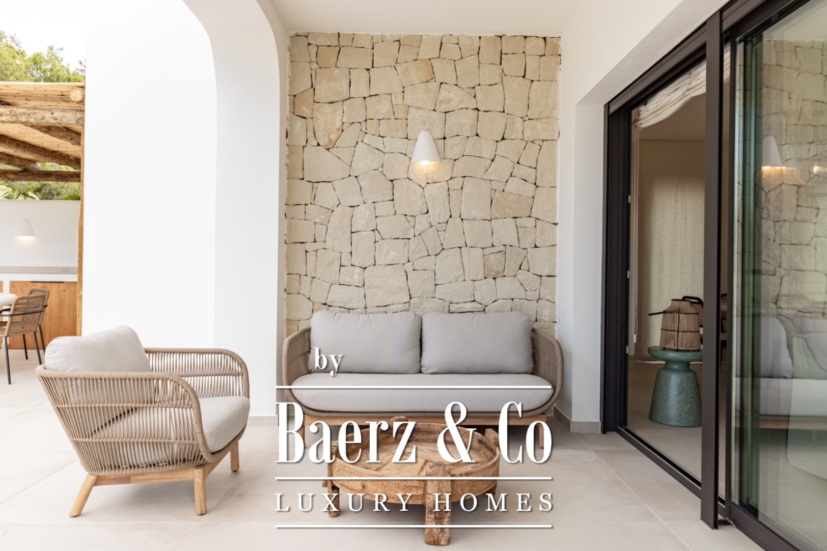 This detached villa Benissa San Jaime presents refined Mediterranean living in a privileged enclave overlooking Ifach Golf Club. The newly built residence, completed in 2025, showcases an Ibiza-inspired aesthetic, with natural stone and warm wooden elements lending a sense of timelessness to its presence on the Costa Blanca. Designed for both privacy and proximity, the villa offers tranquility within walking distance to essential amenities, such as the Pepe La Sal supermarket less than 1 kilometre away, and the sandy cove at Cala Baladrar just 2 kilometres from the doorstep.