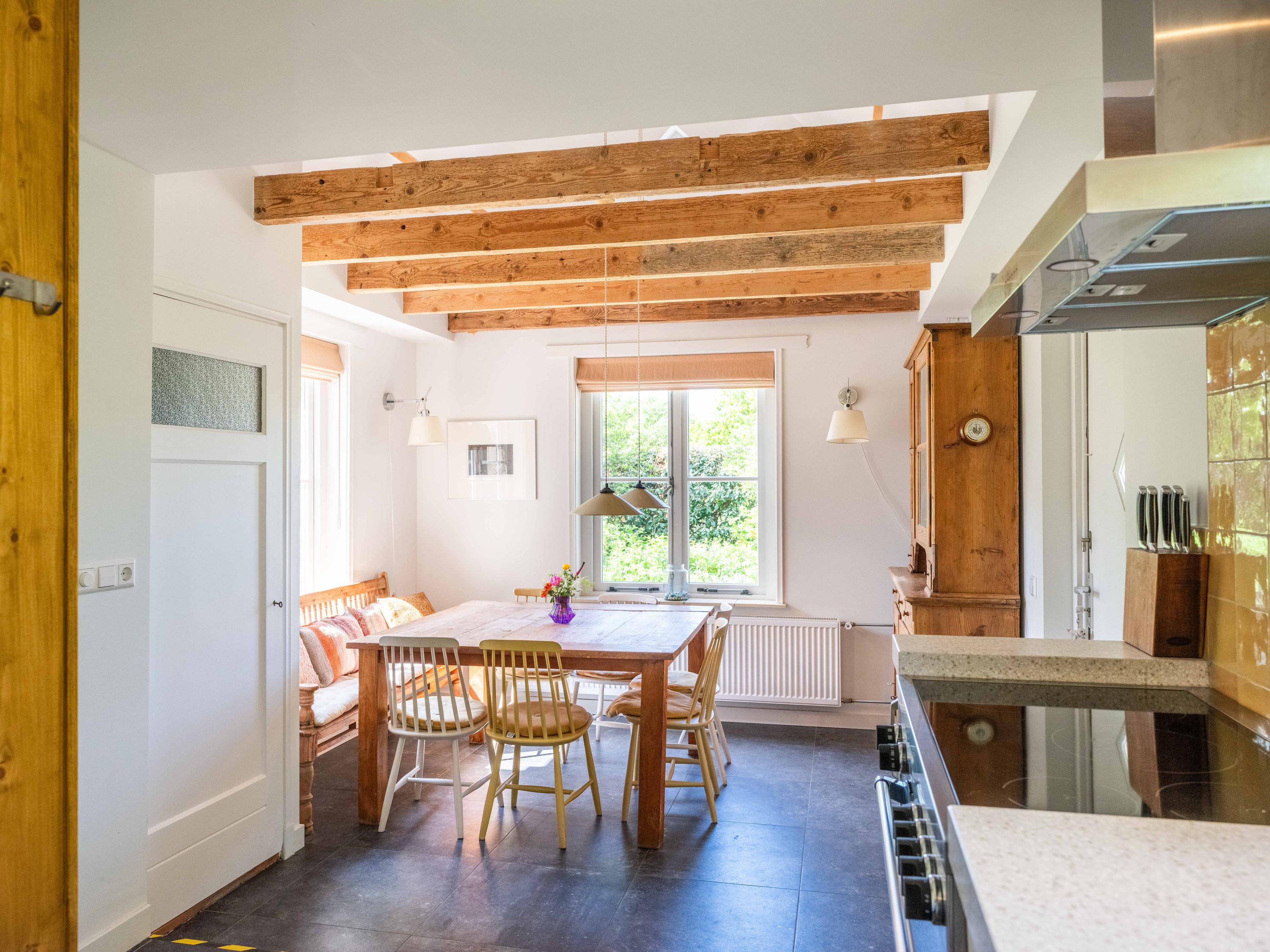The kitchen is a pleasant place for the whole family, equipped with all conveniences: a Quooker, dishwasher, extractor hood, large oven with induction hob and a separate fridge-freezer. The kitchen also provides access to the meter cupboard.