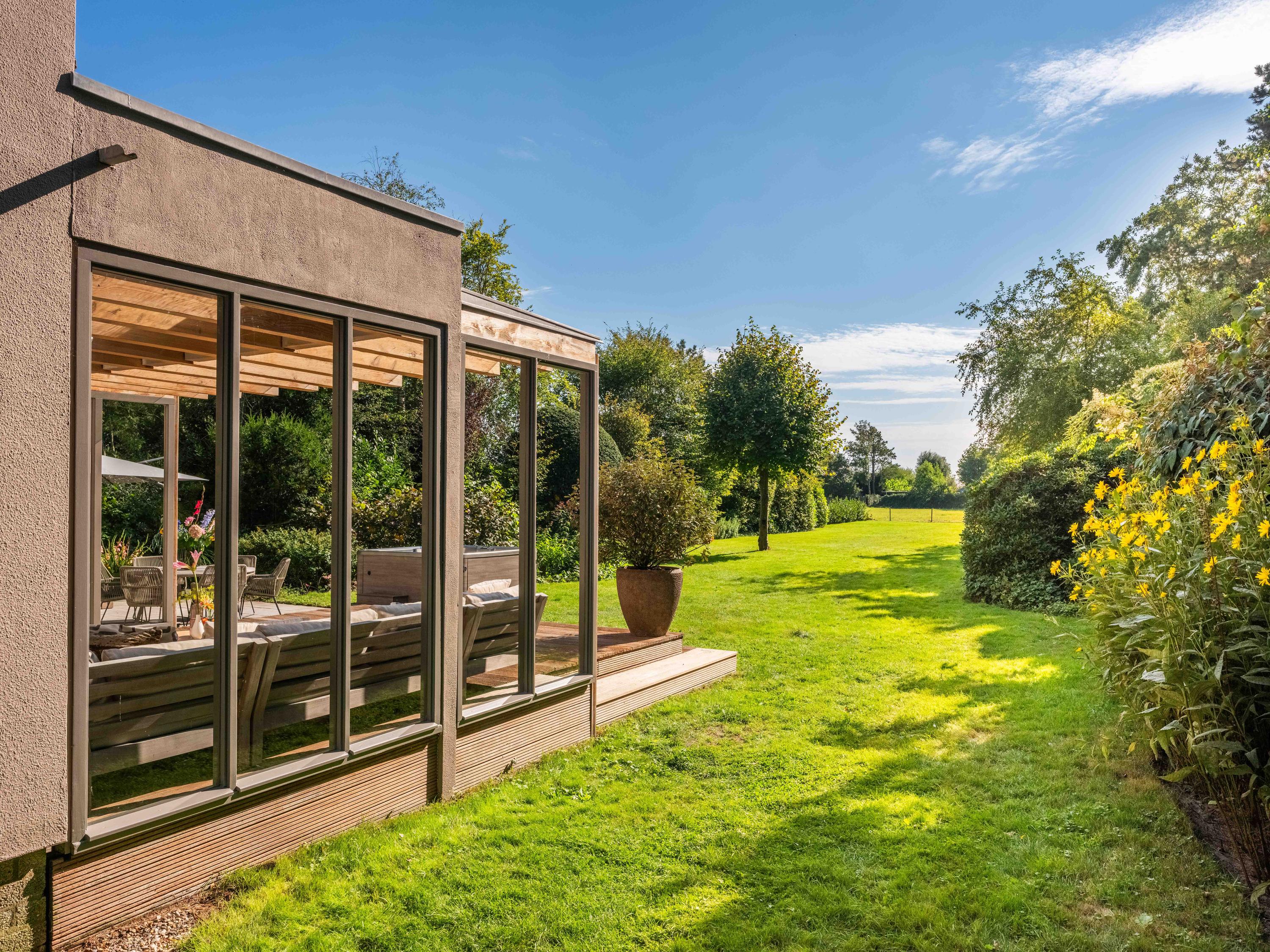 At the front is ample space for parking several cars on site. At the rear of the villa you will find a beautiful spacious garden with several terraces where you can enjoy the sun, nature and the beautiful view of the meadow behind.