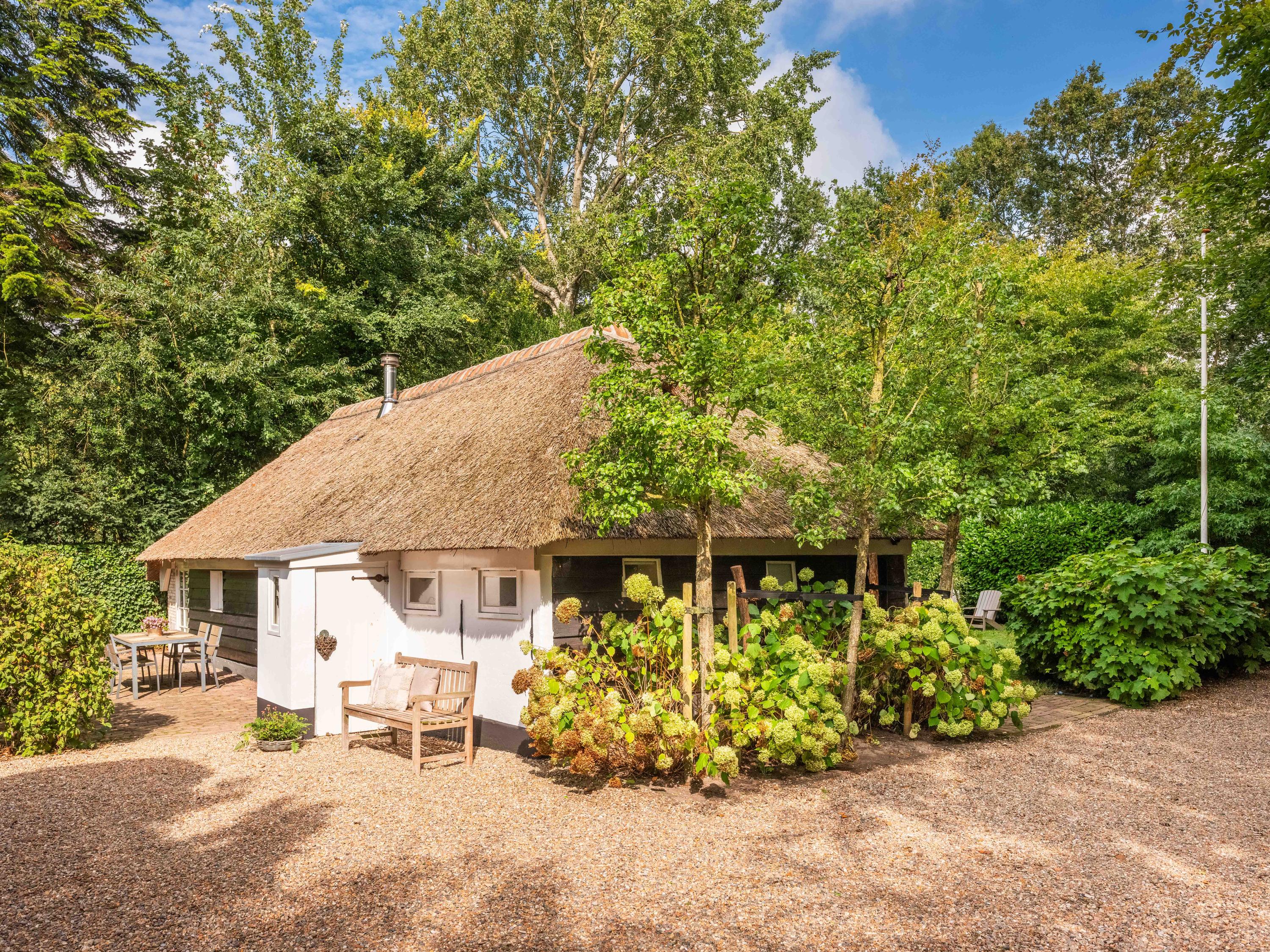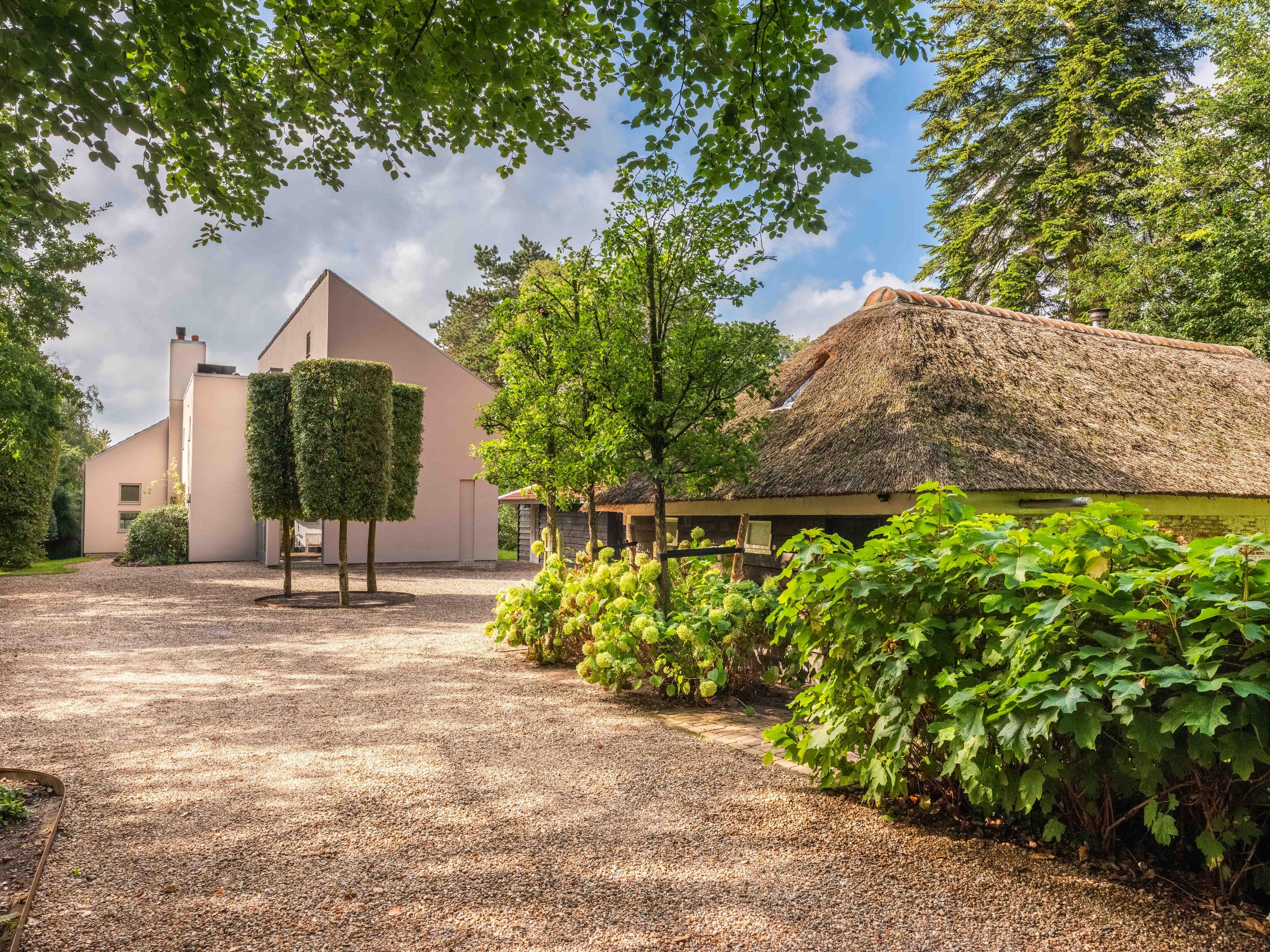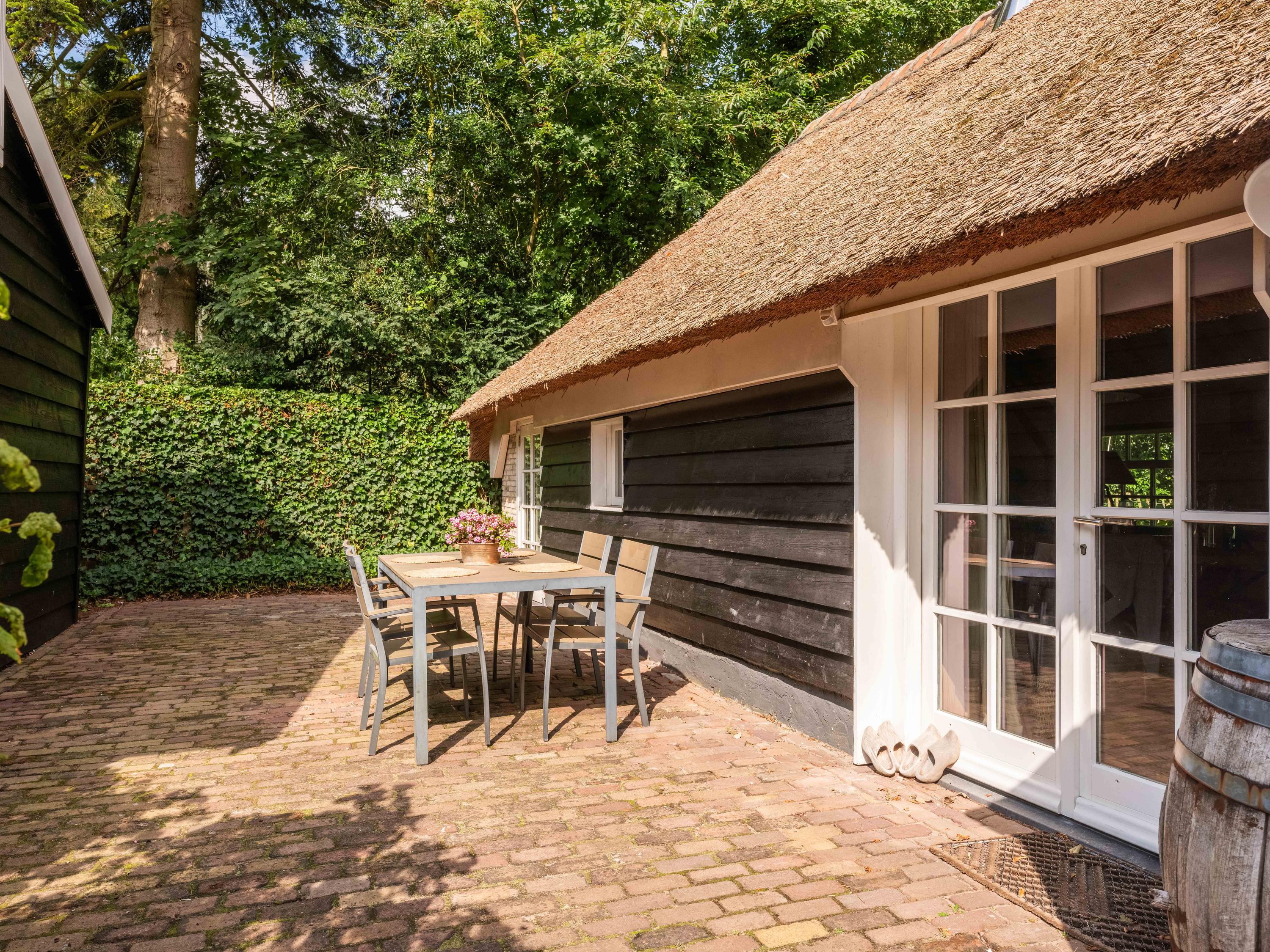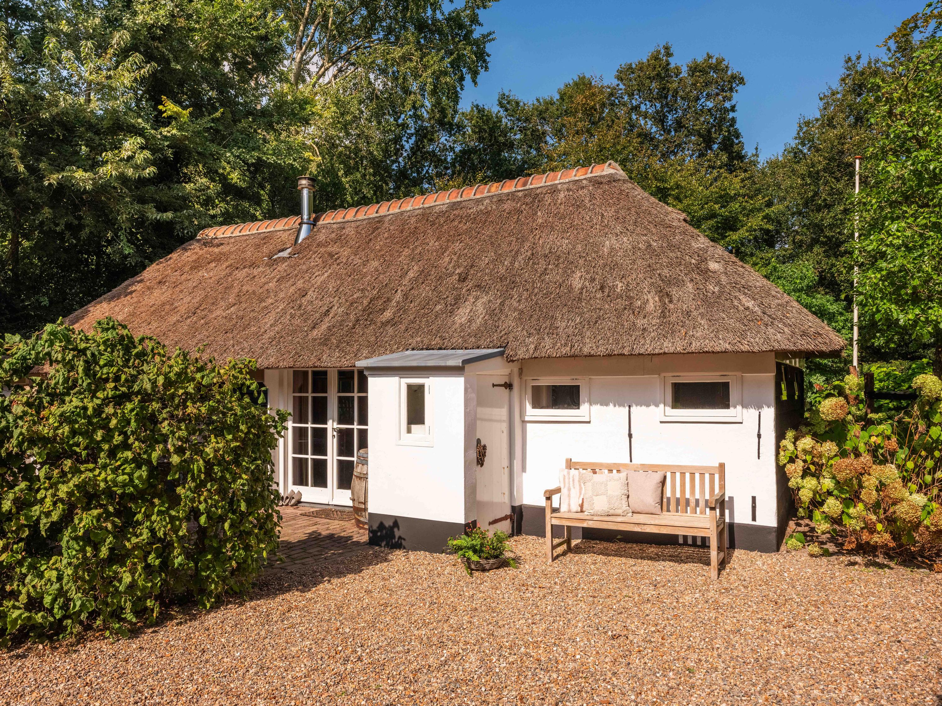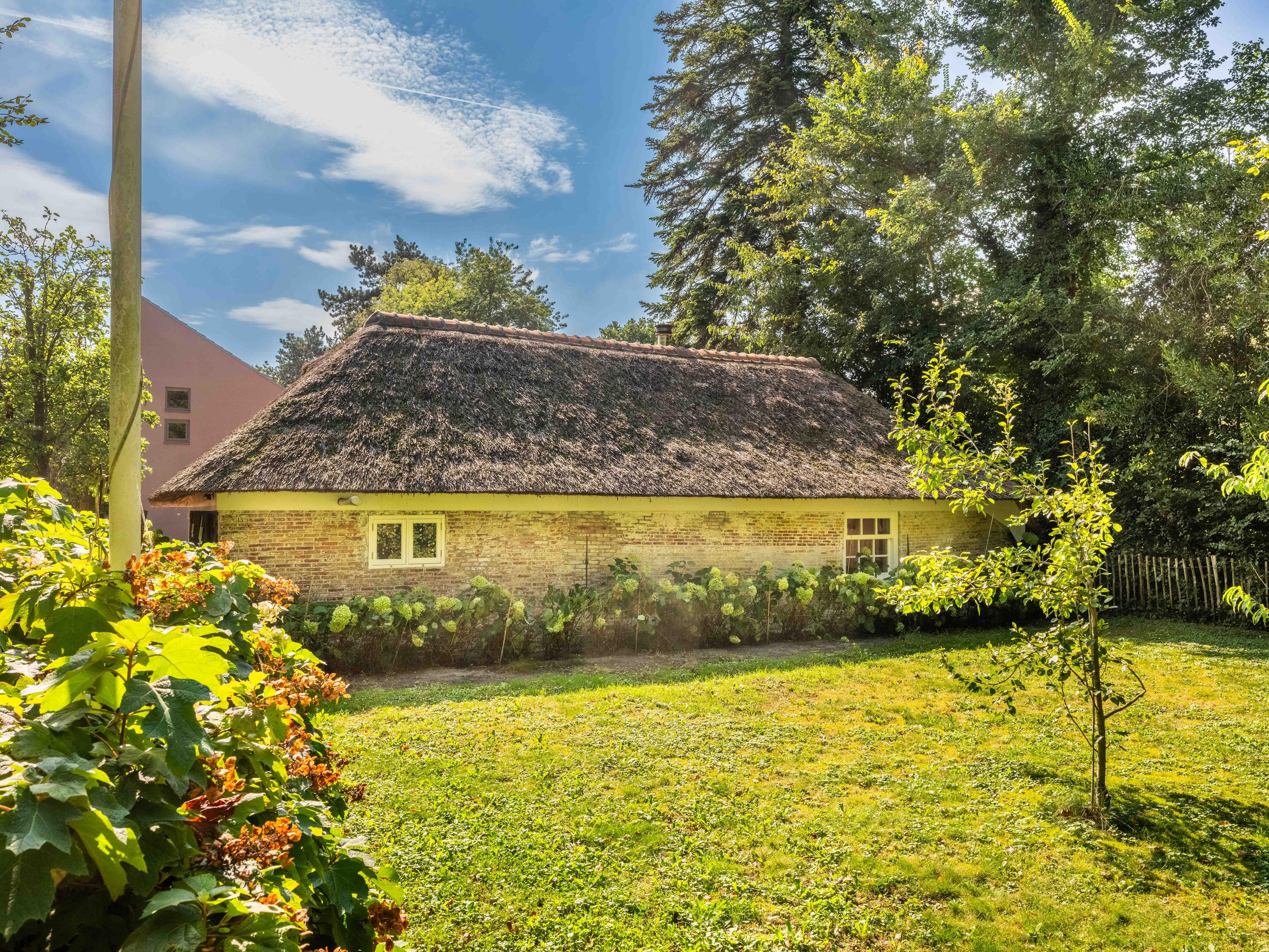 You are welcomed at the front of the plot by a monumental and thatched, mid-18th-century small farmhouse. In 2014, this farmhouse was completely renovated. An ideal place for working at home, a workshop or informal care, for example.