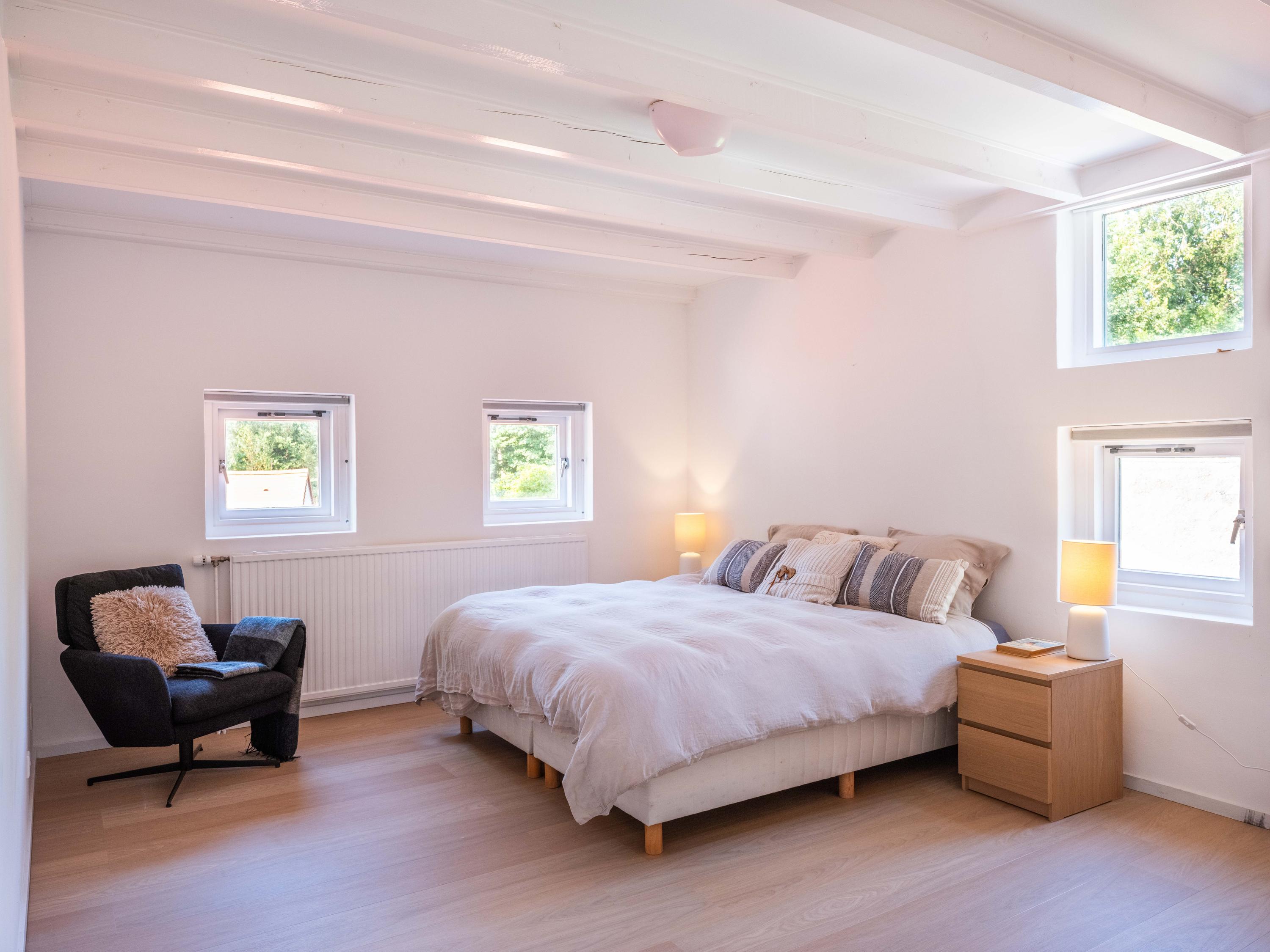 Upstairs on the landing are five rooms. Four rooms can certainly be called generous, the fifth is a smaller room, this is used as a laundry/ironing room but would also be an ideal baby room.