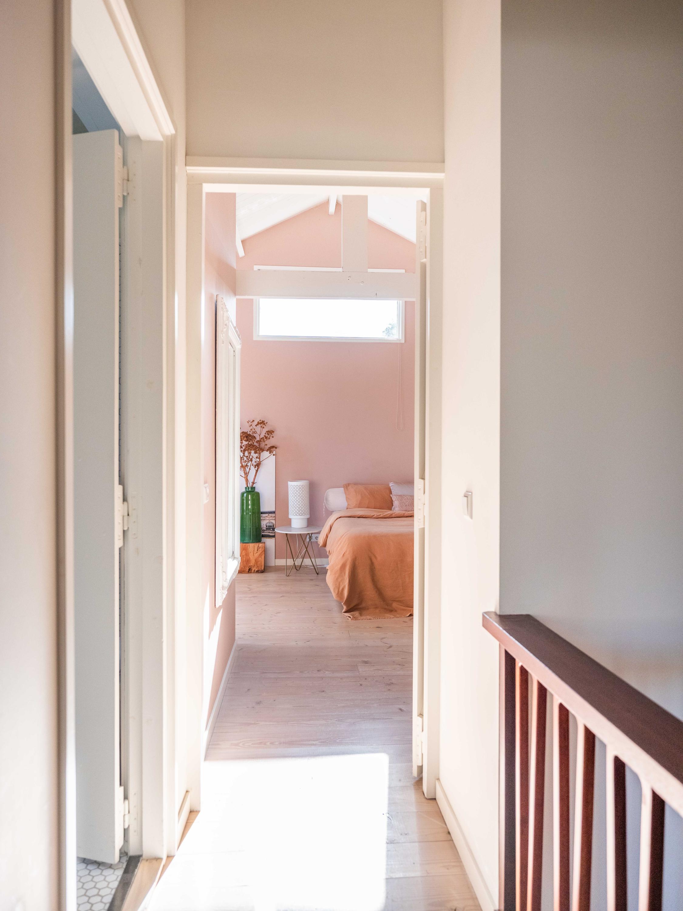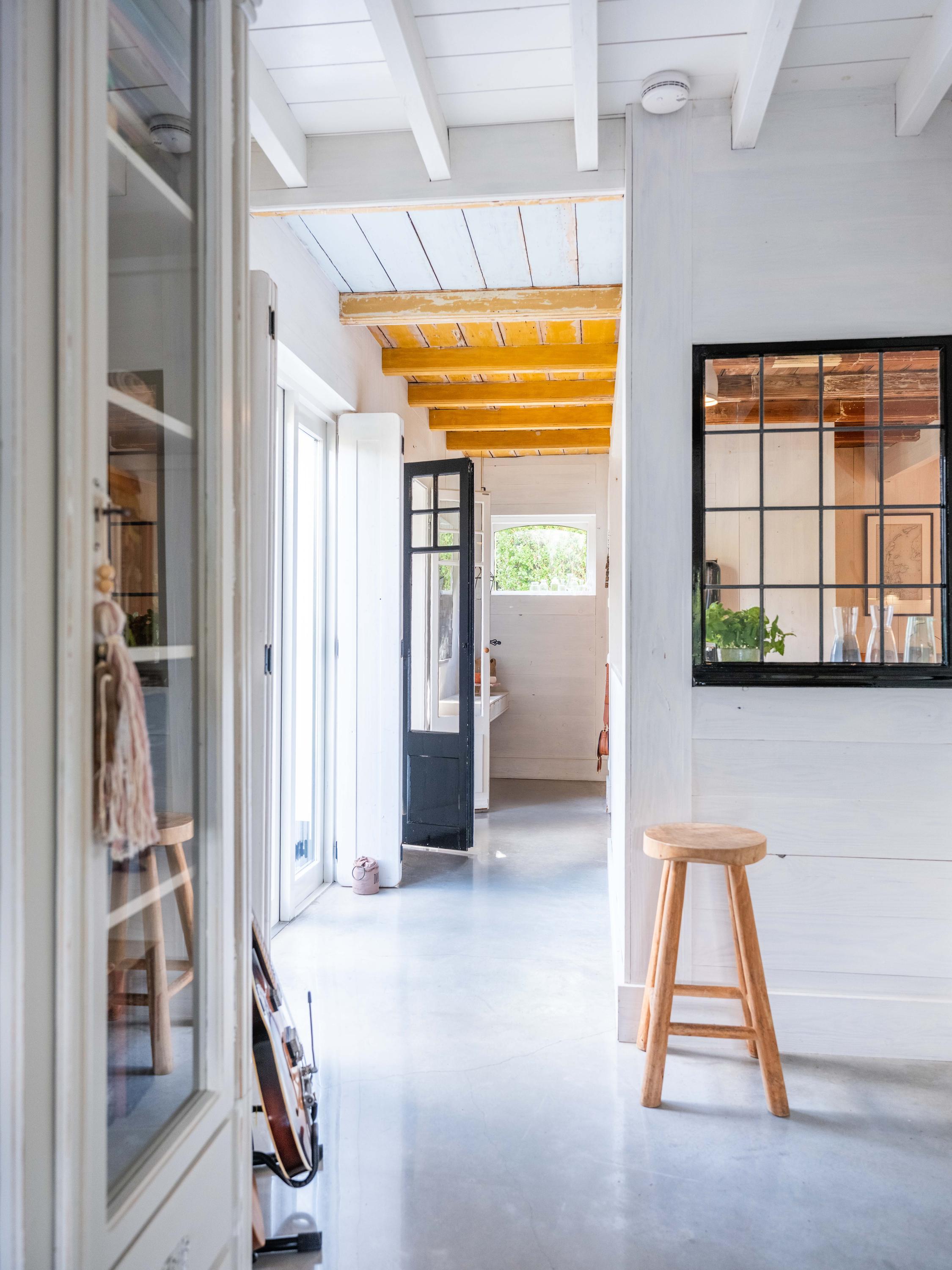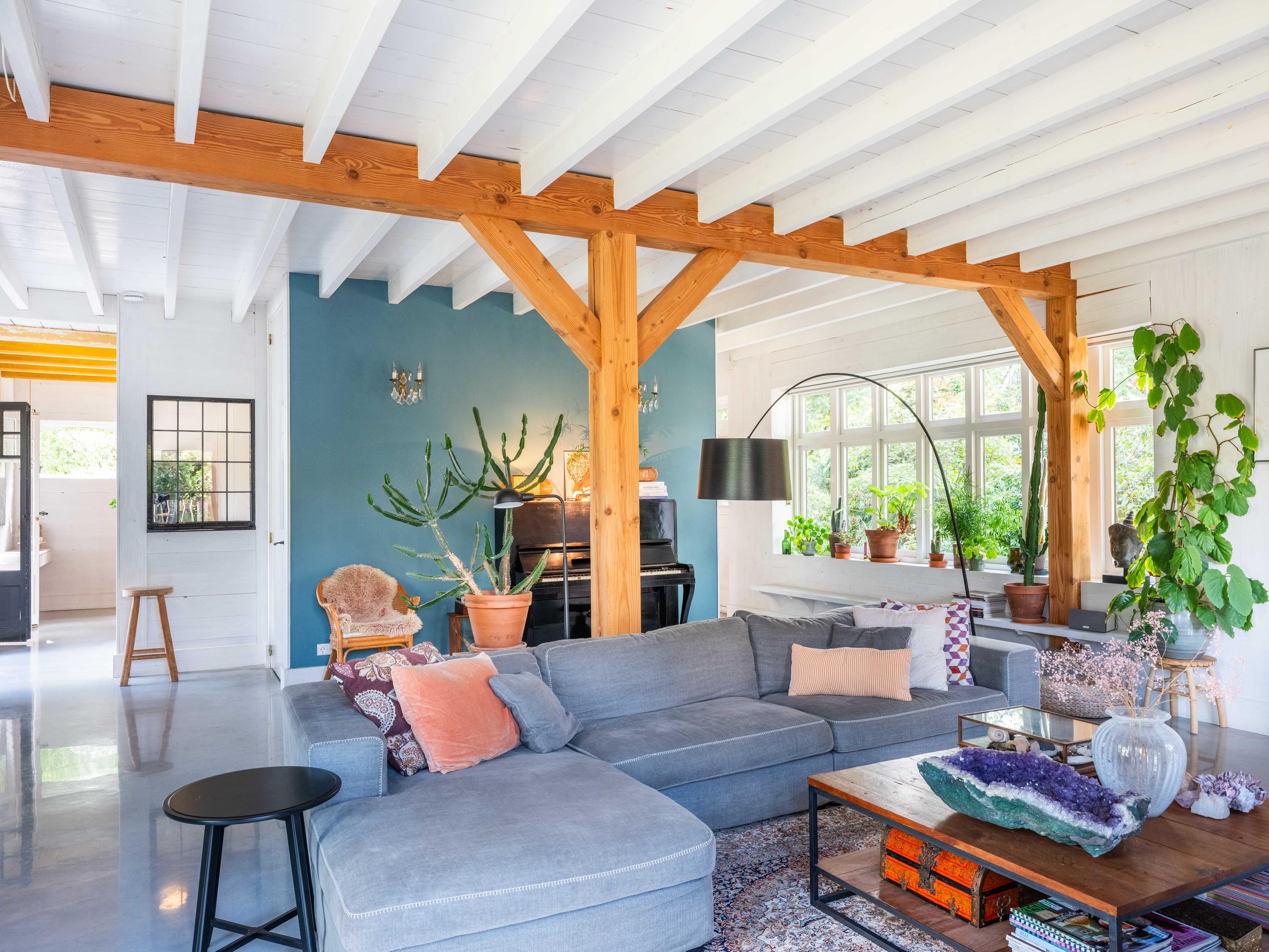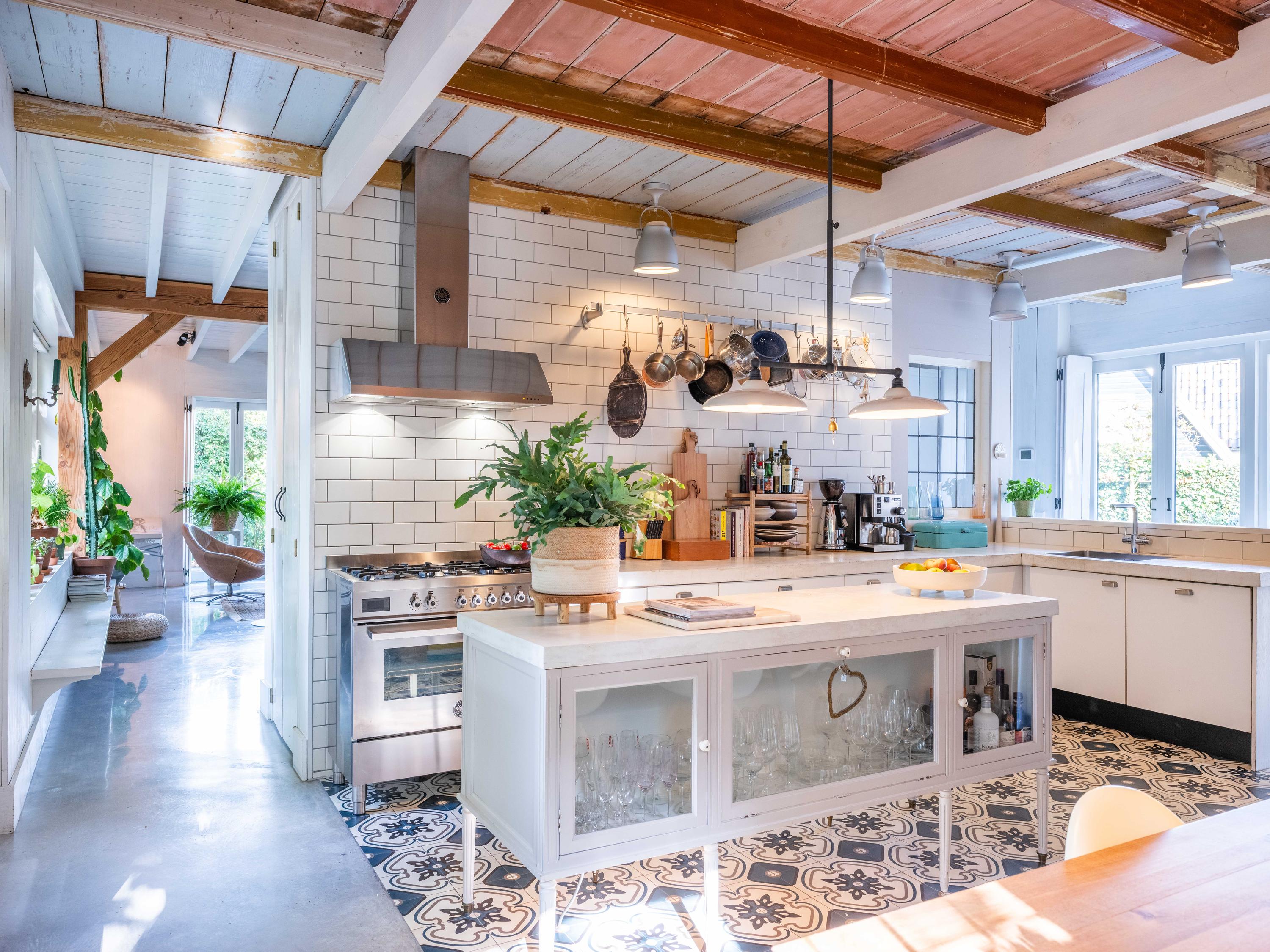 On the other side of the house, you will find the former atelier, now used as a guesthouse with a kitchenette and sleeping area. The roof has been insulated, and the upper floor is beautifully light and spacious.