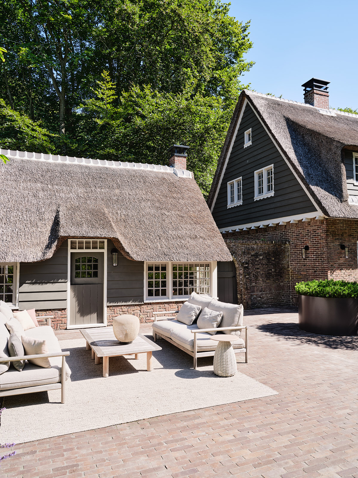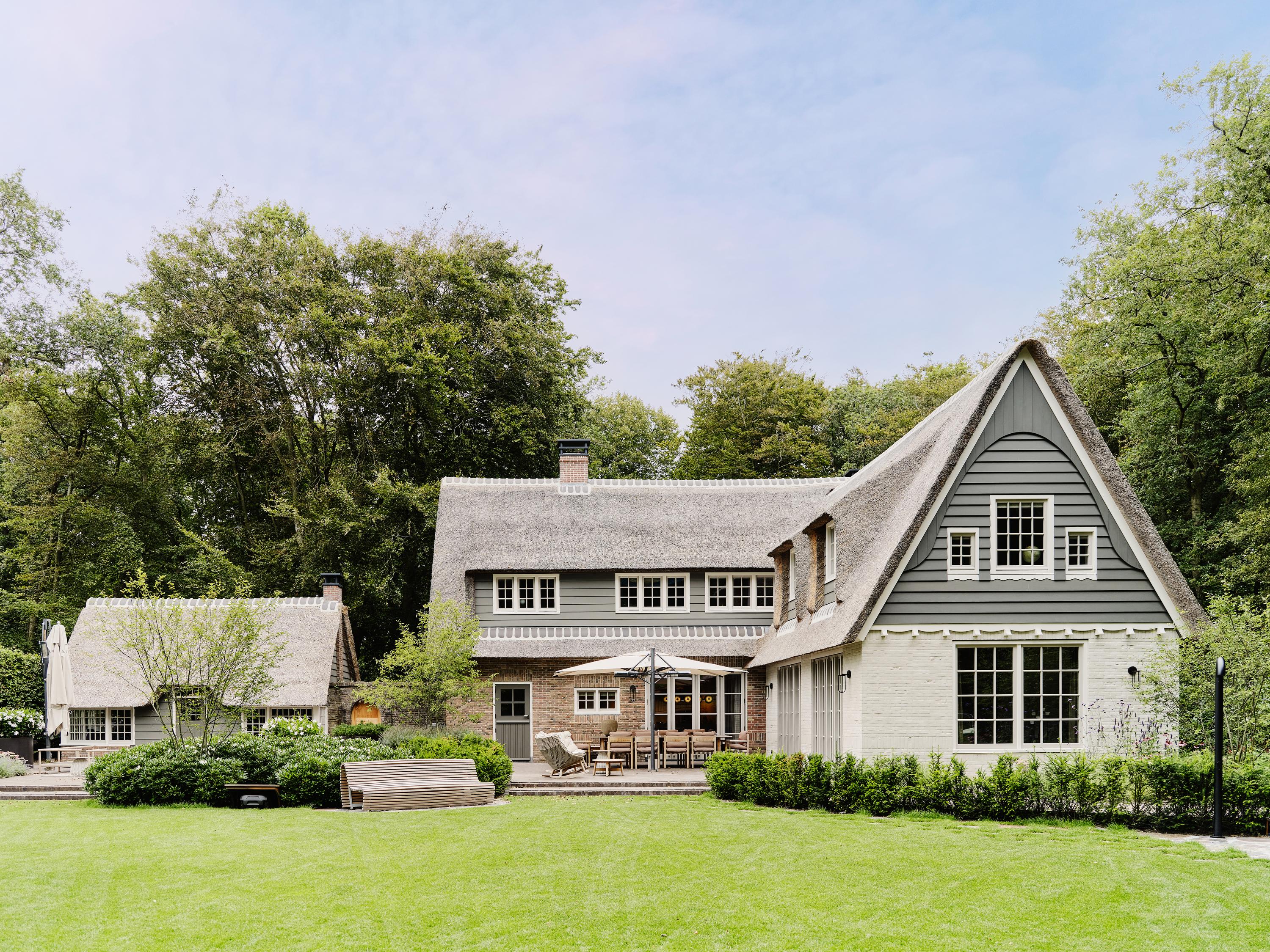 In one of Bergen’s most sought-after residential areas, directly opposite the famous Oude Hof and the local cinema, De Zwarte Schuur. The Berger Bos on the other side of Eeuwigelaan and a short distance from the town centre, lies this impressive thatched villa with a separate holiday home.